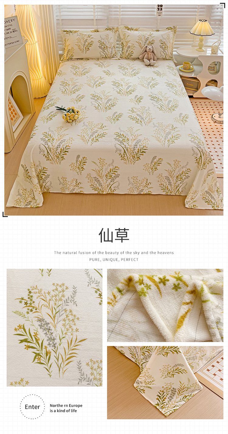 名兮家居 2023新款高克重牛奶绒床单 仙草