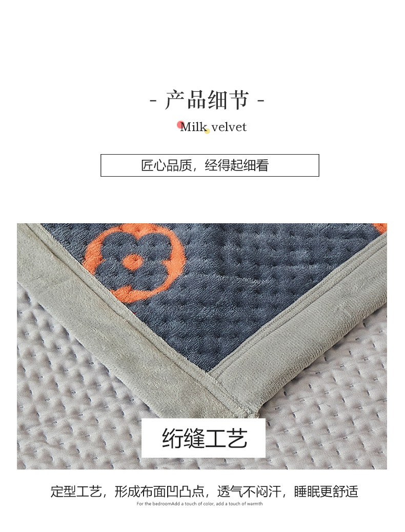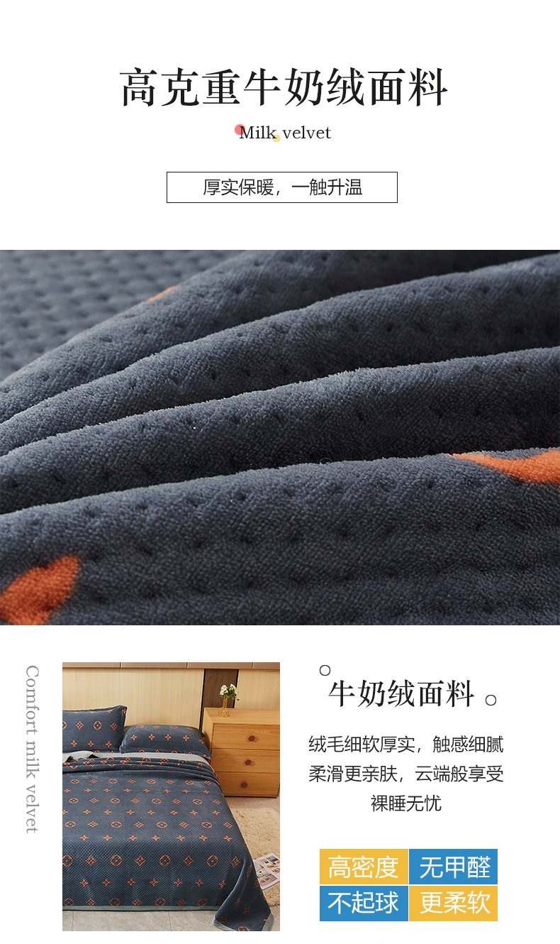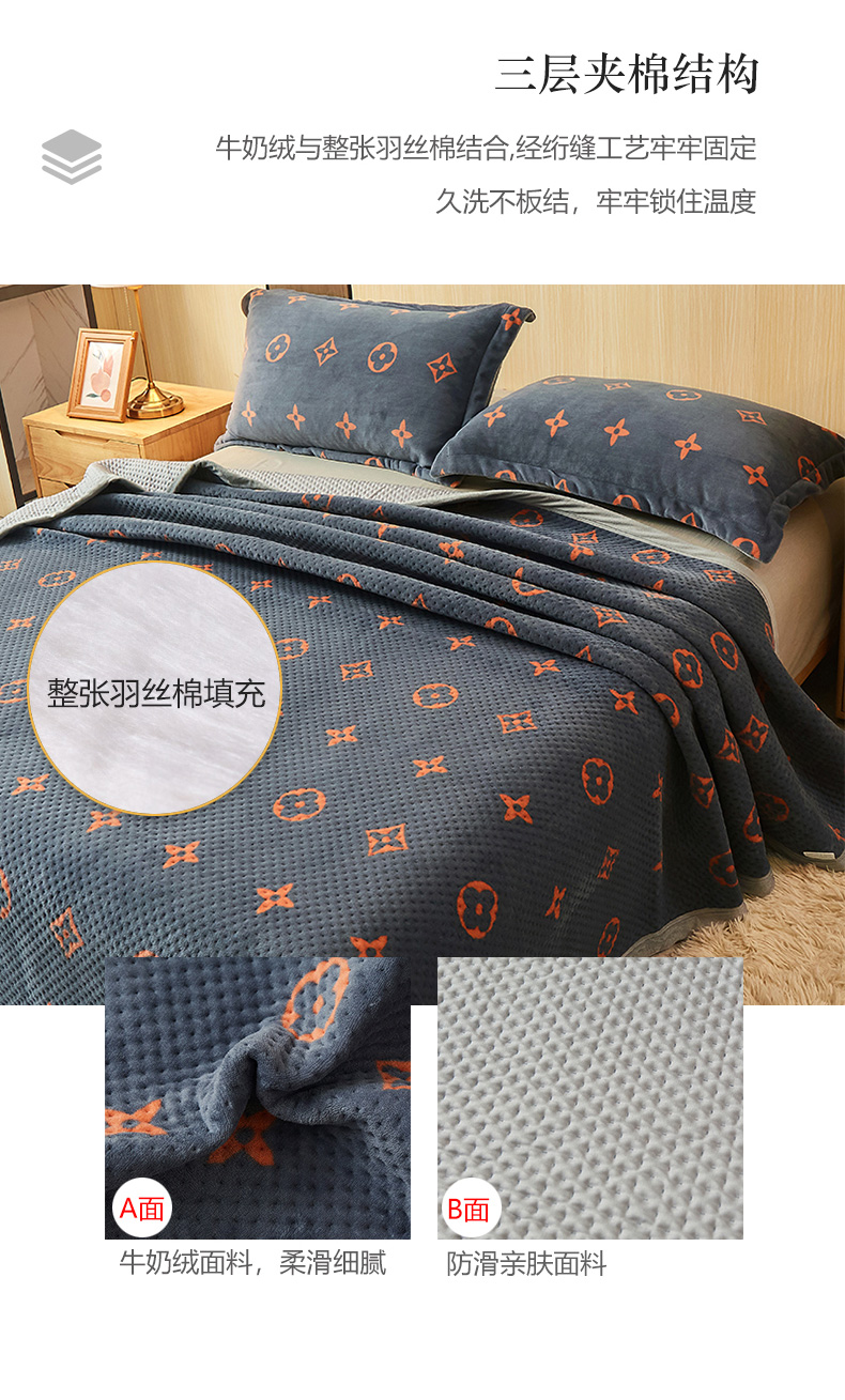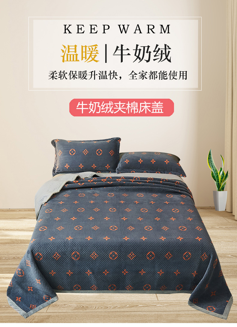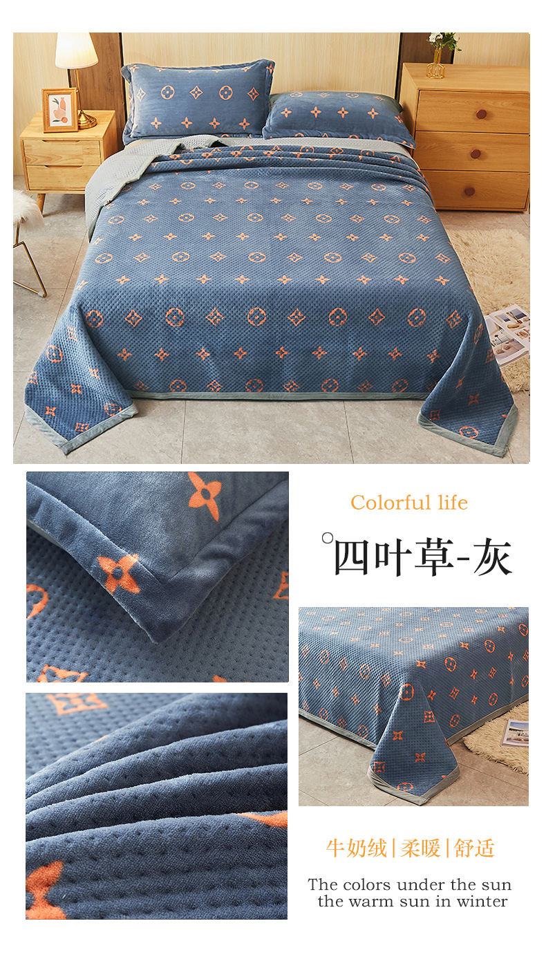 • 91家纺网 家纺一手货源 找家纺 胜权 2024款高克重牛奶绒夹棉单床盖单件保暖床盖三件套 四叶草-灰