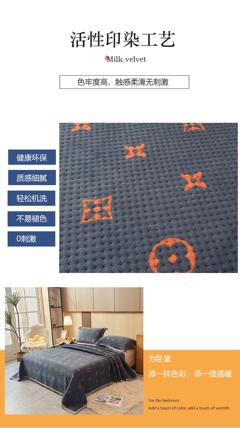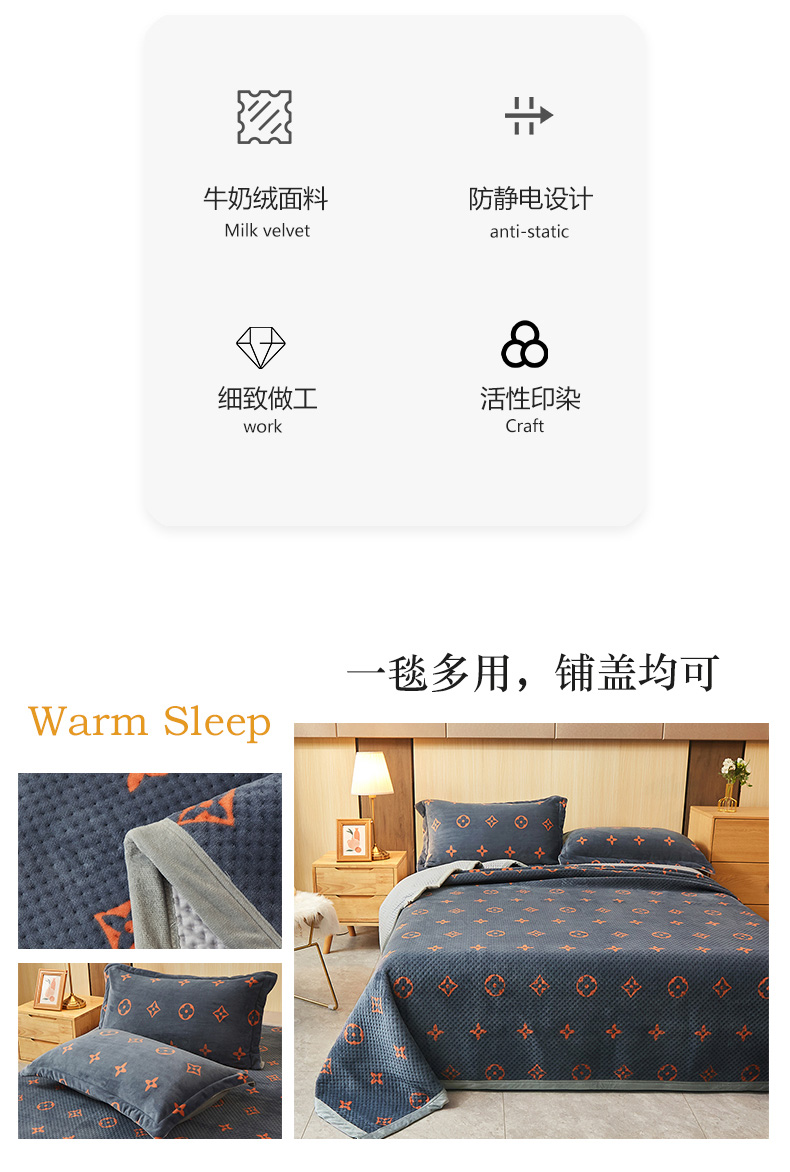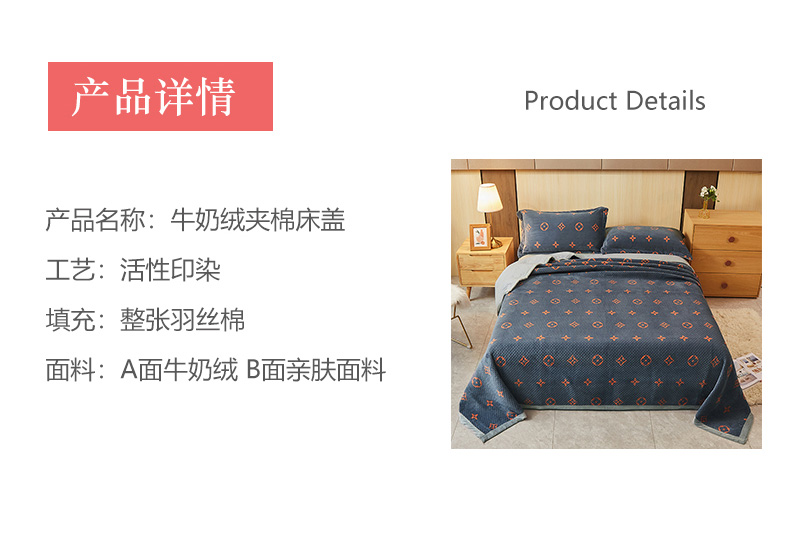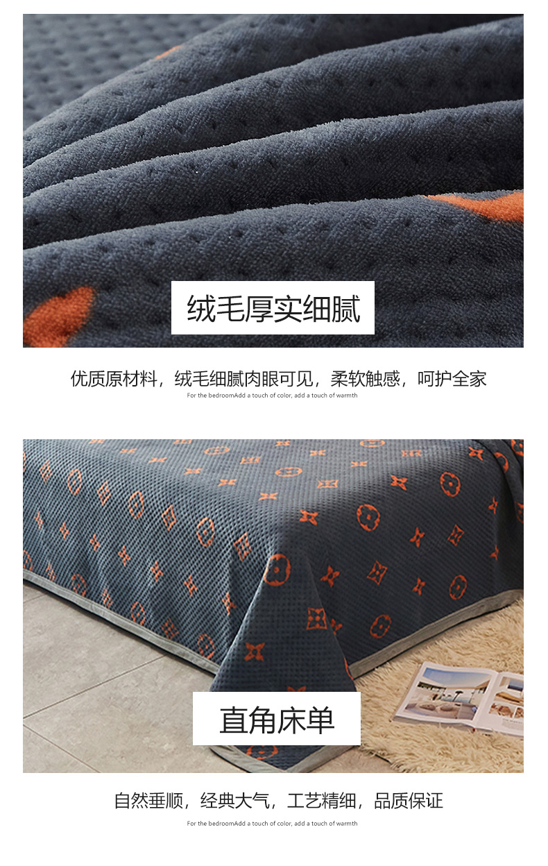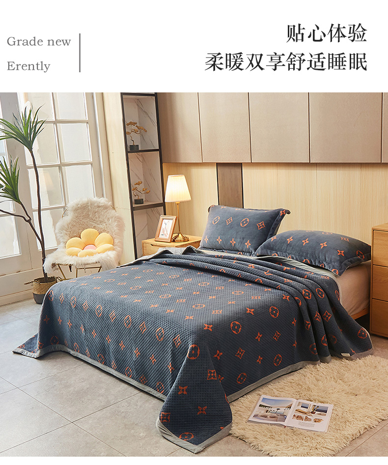 • 91家纺网 家纺一手货源 找家纺 胜权 2024款高克重牛奶绒夹棉单床盖单件保暖床盖三件套 四叶草-灰