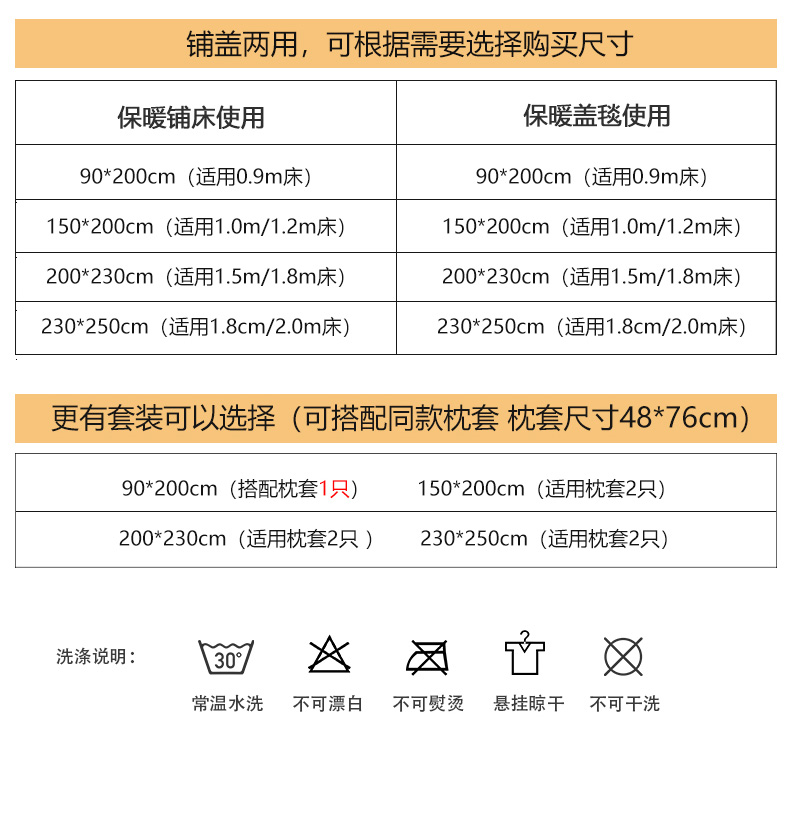 床单/床笠尺寸 7