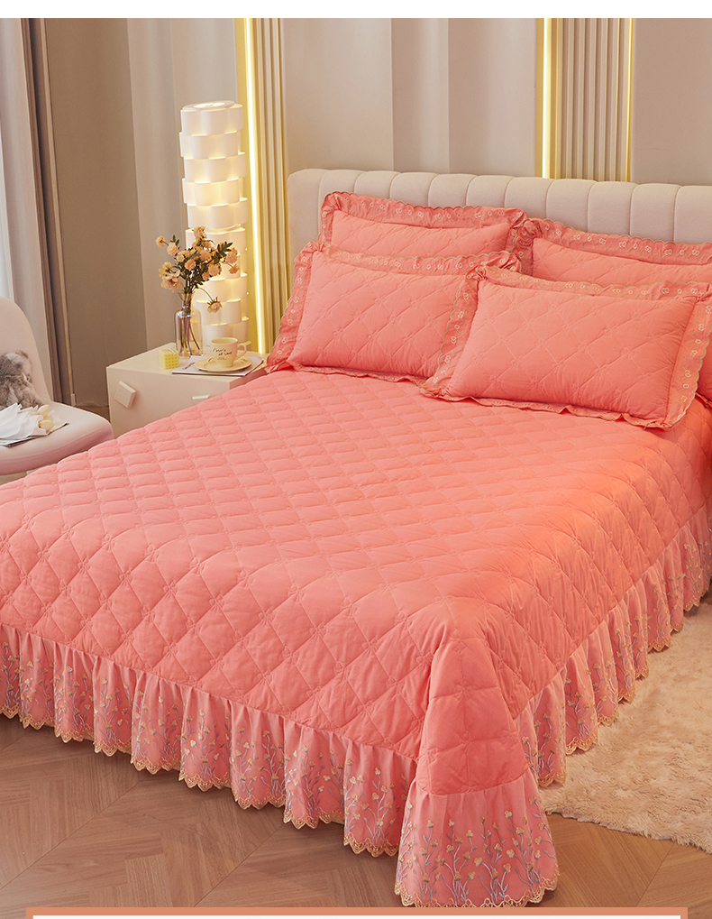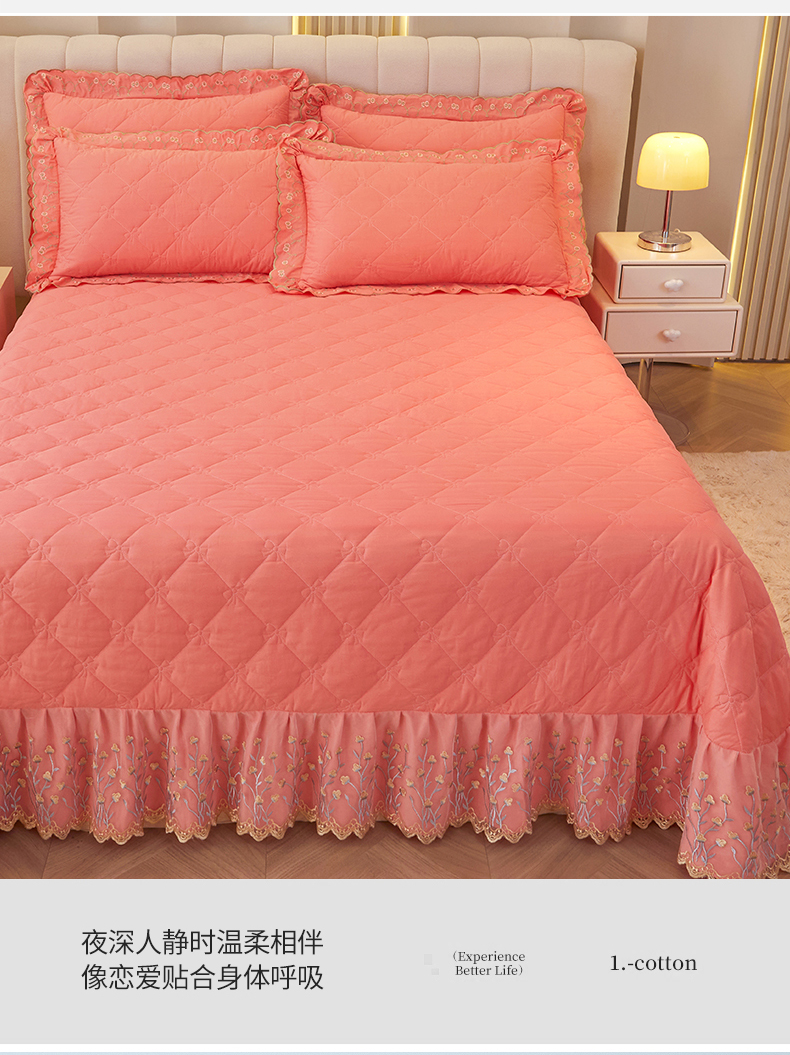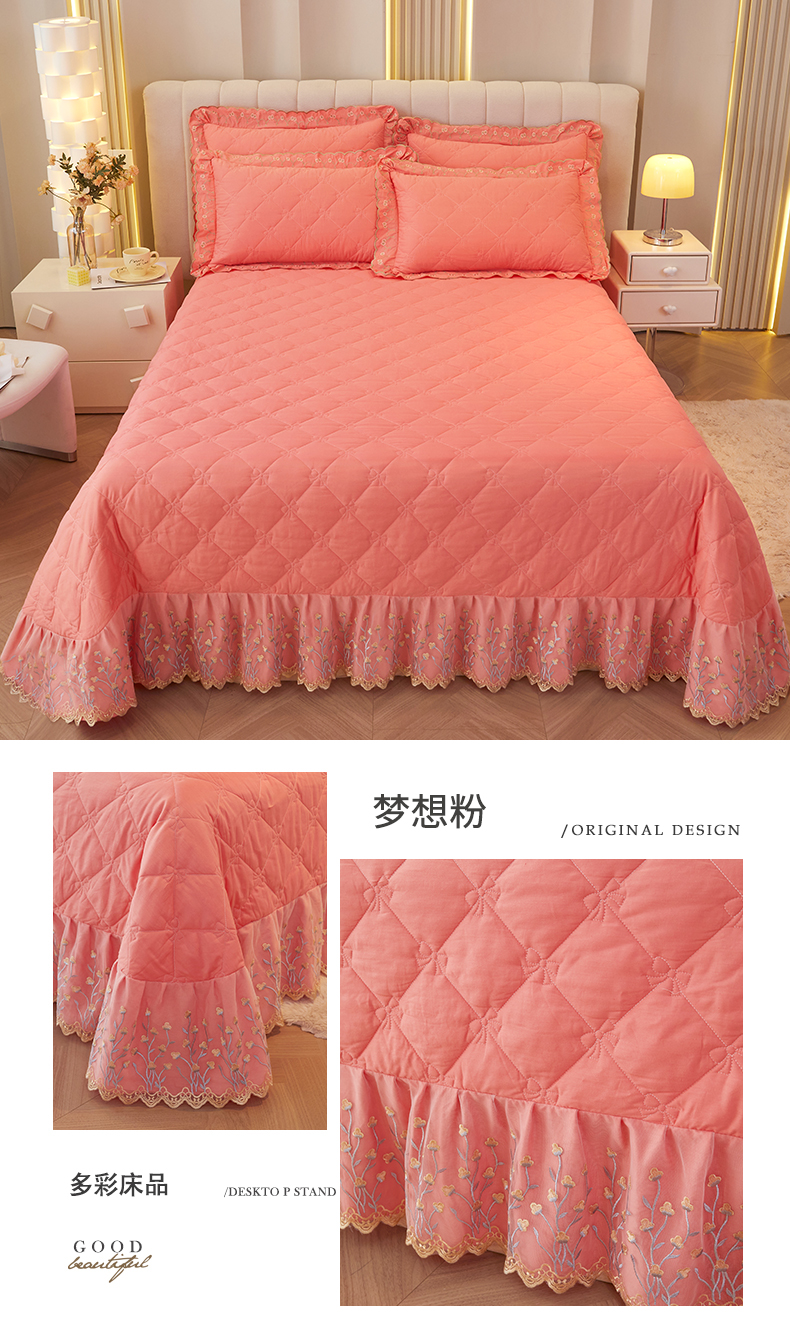 (总)恒爱家纺 2025新款牛奶绒贴布绣夹棉床裙四件套,豆沙红,浪漫紫,天空蓝,温馨粉,象牙白