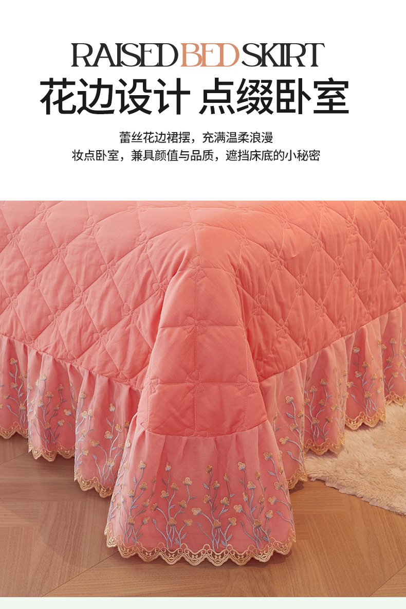 (总)恒爱 2022秋冬水晶绒翩翩花舞夹棉床裙四件套,大红色,豆沙红,橄榄绿,公主粉,桔色,咖啡色,孔雀绿,拉菲红,罗兰紫,玫红色,美人玉,米白色,米驼色,抹茶绿,浅灰色,紫色