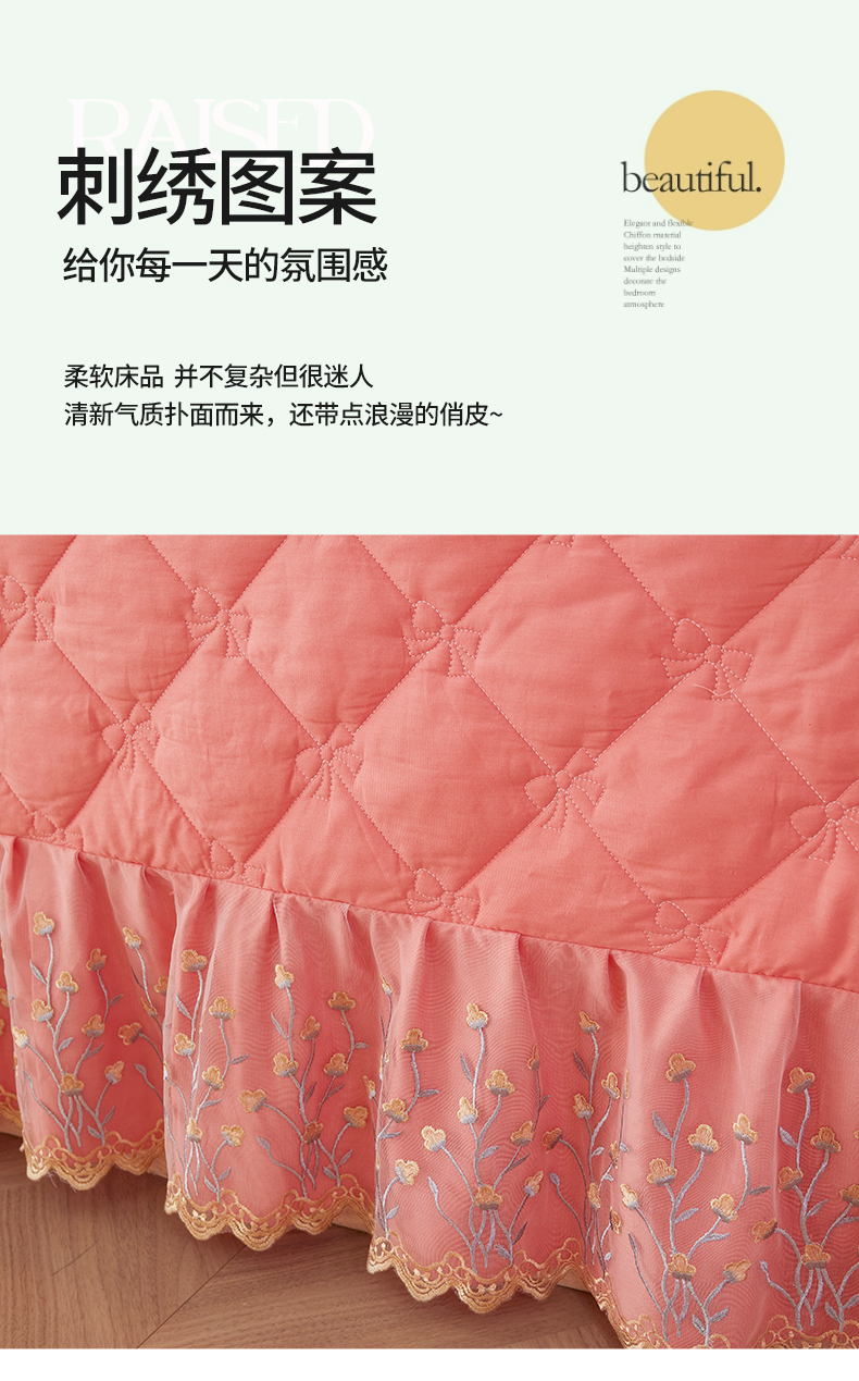 (总)恒爱家纺 2025新款全棉绗绣单品床笠,米驼,奶油粉,米杏,嫩绿,水柿粉,牛油果绿,梧桐灰