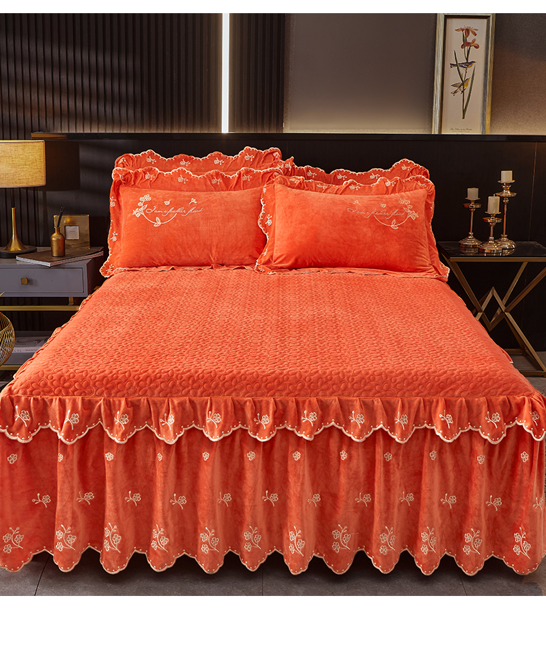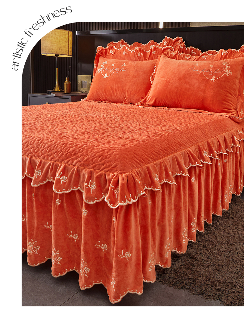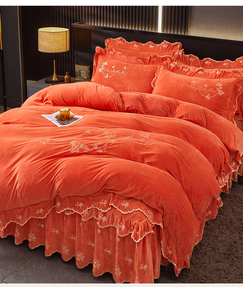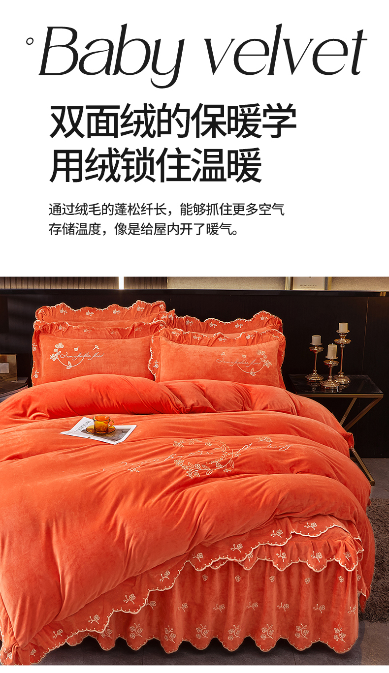 当前位置: 91家纺网 > 商品网购 > 床品套件 > 四件套 > 宝宝绒四件套 > 2023 恒爱家纺 花好月圆宝宝绒床裙四件套 爱玛橙