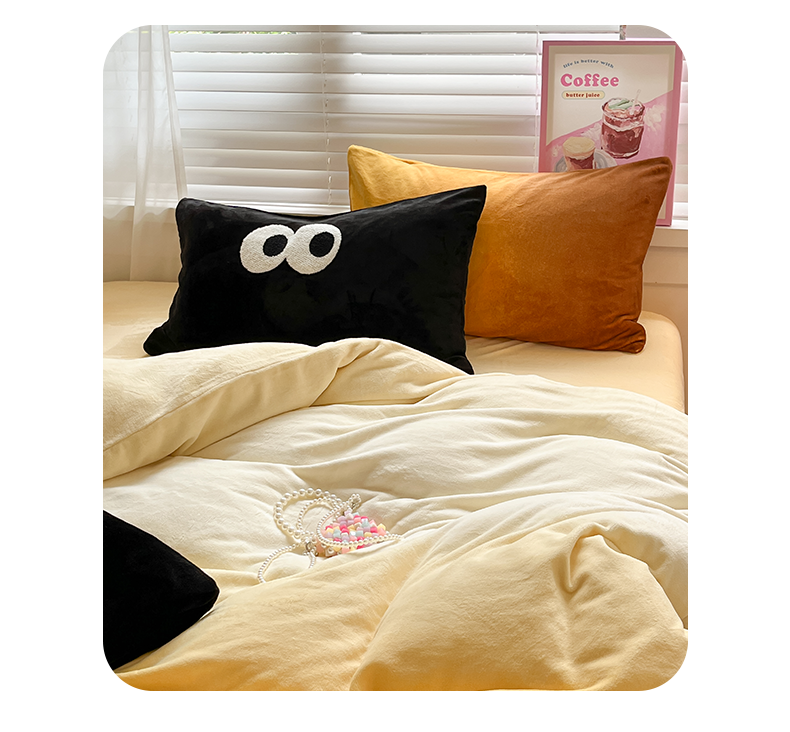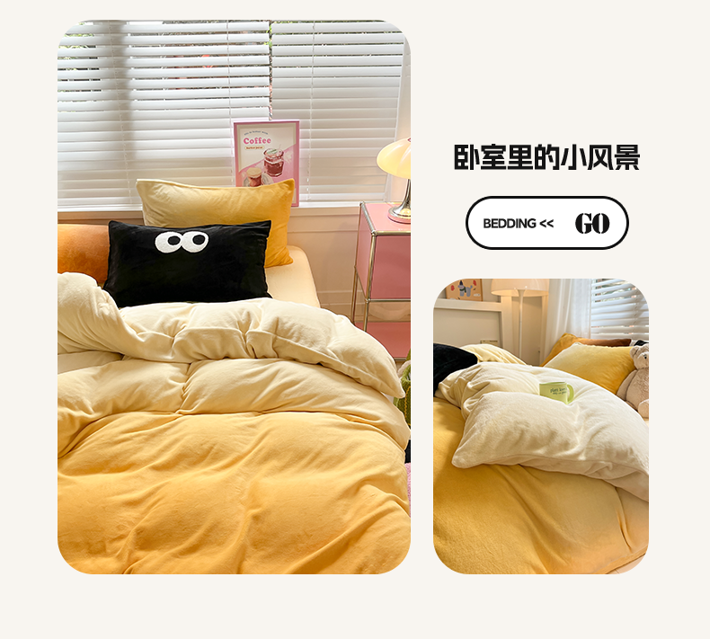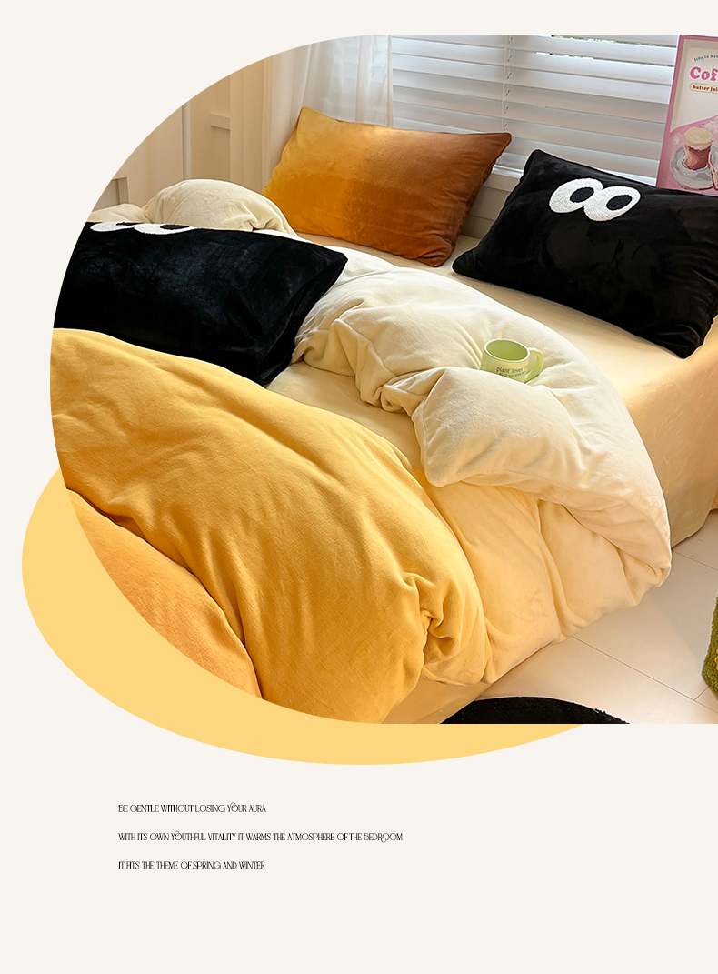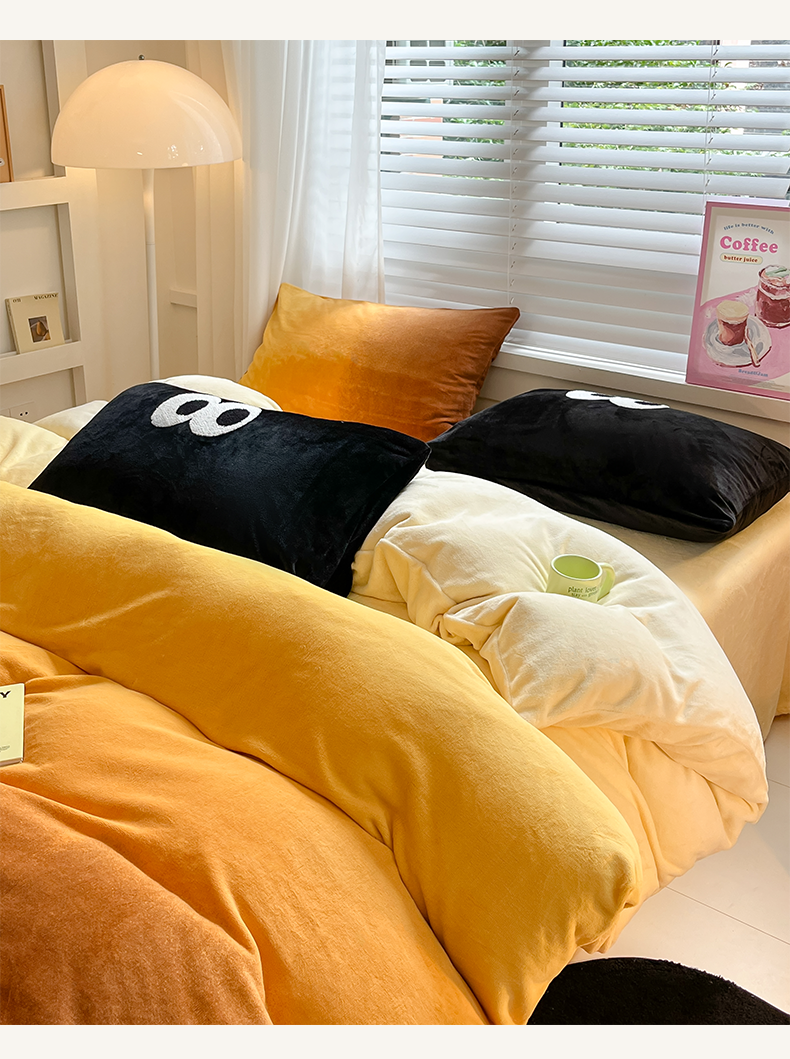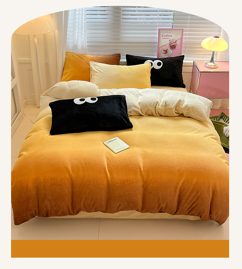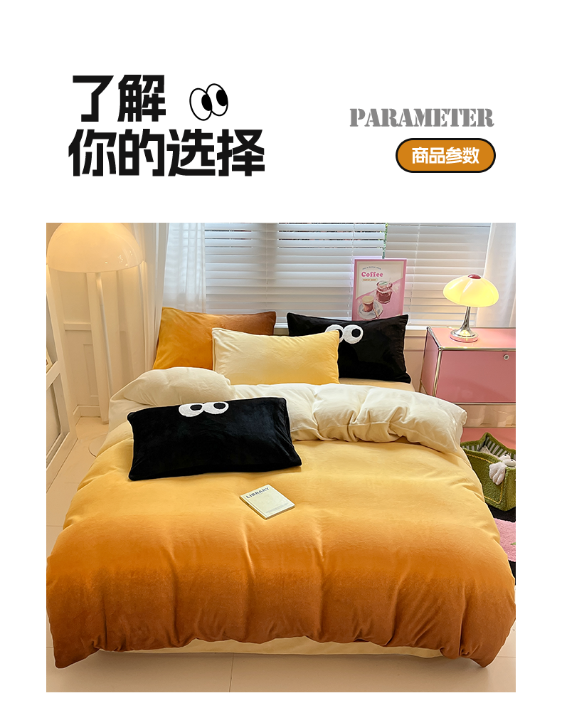 商品名称:雅居纺家纺 2023新款毛巾绣混搭牛奶绒四件套 渐变混搭黄