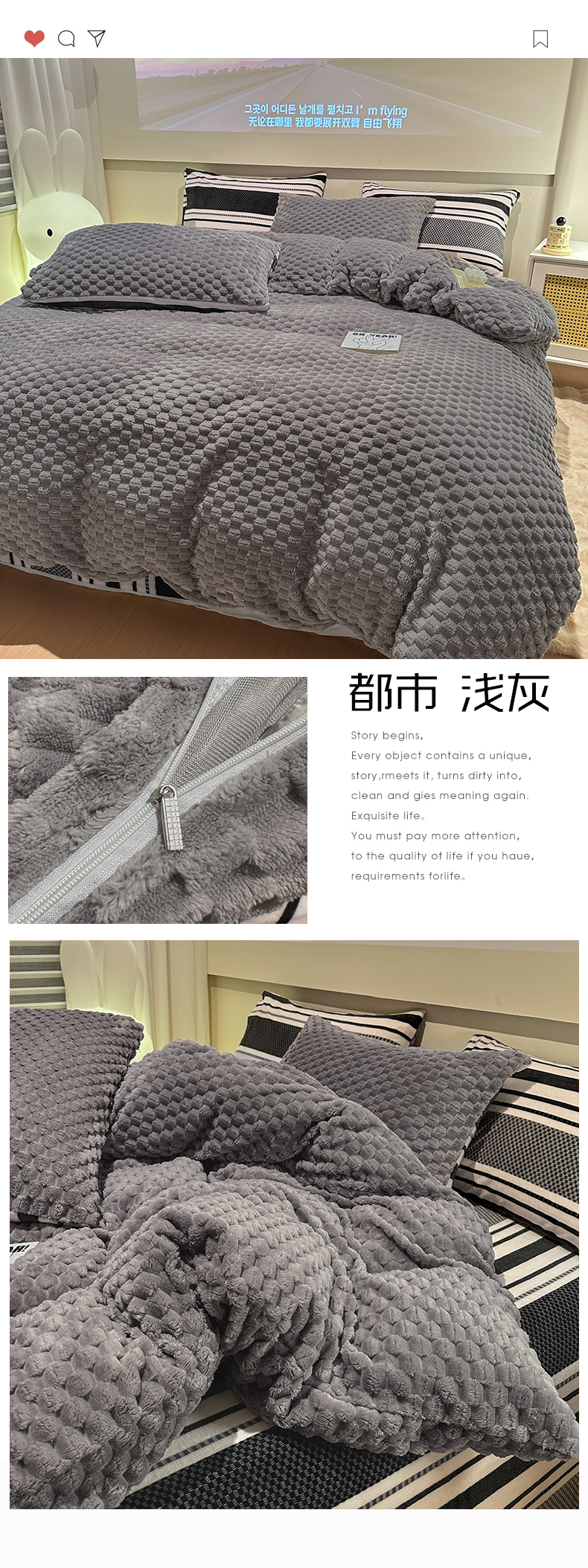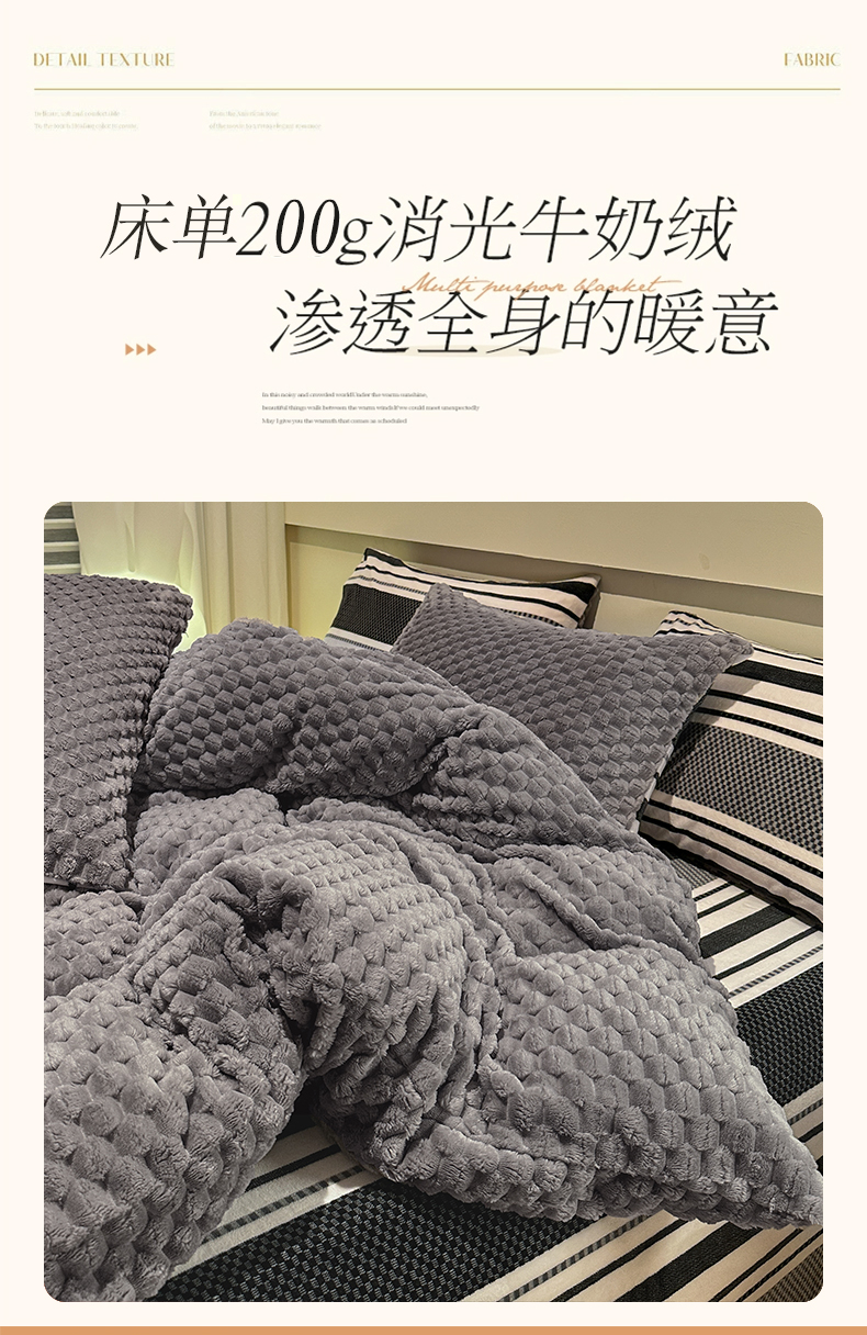 当前位置: 91家纺网 > 商品网购 > 床品套件 > 四件套 > 牛奶绒四件套 > 花漾家居 2023新款波西米亚风金龟绒牛奶绒双拼四件套 都市浅灰