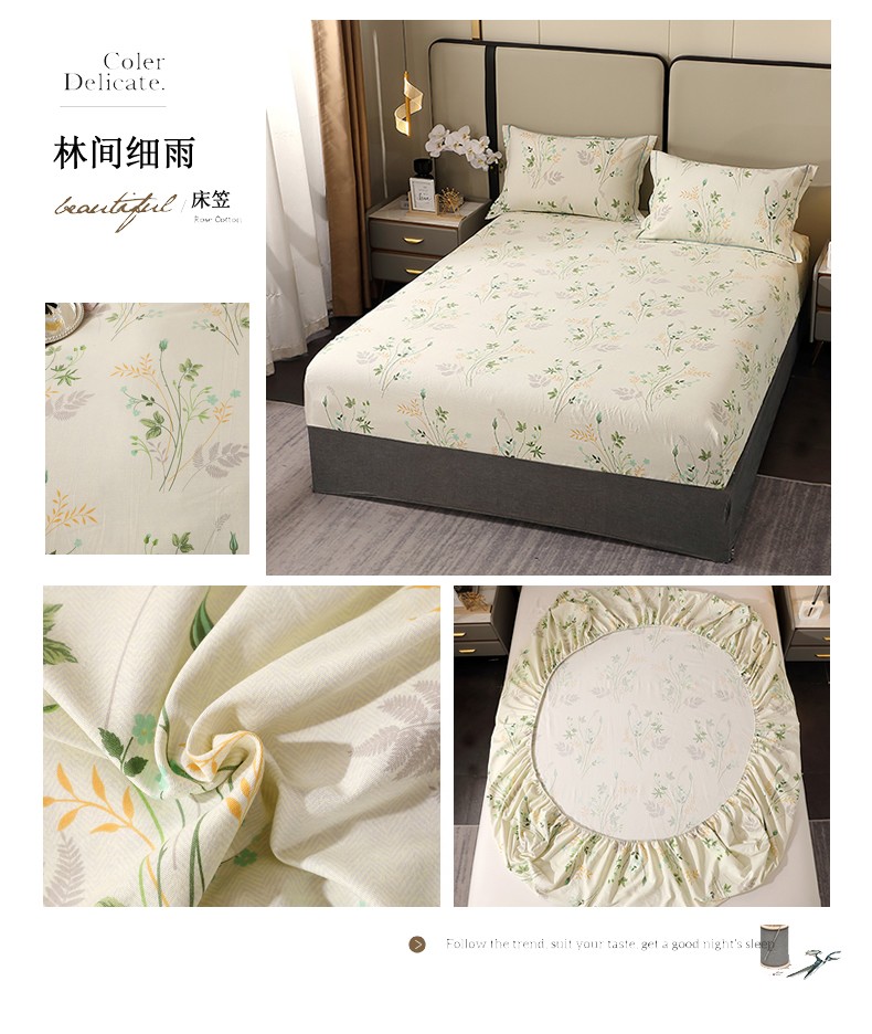 晶缦 2023新款格林系列全棉活性磨毛多规格床笠 林间细雨
