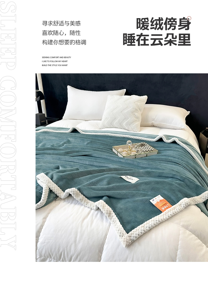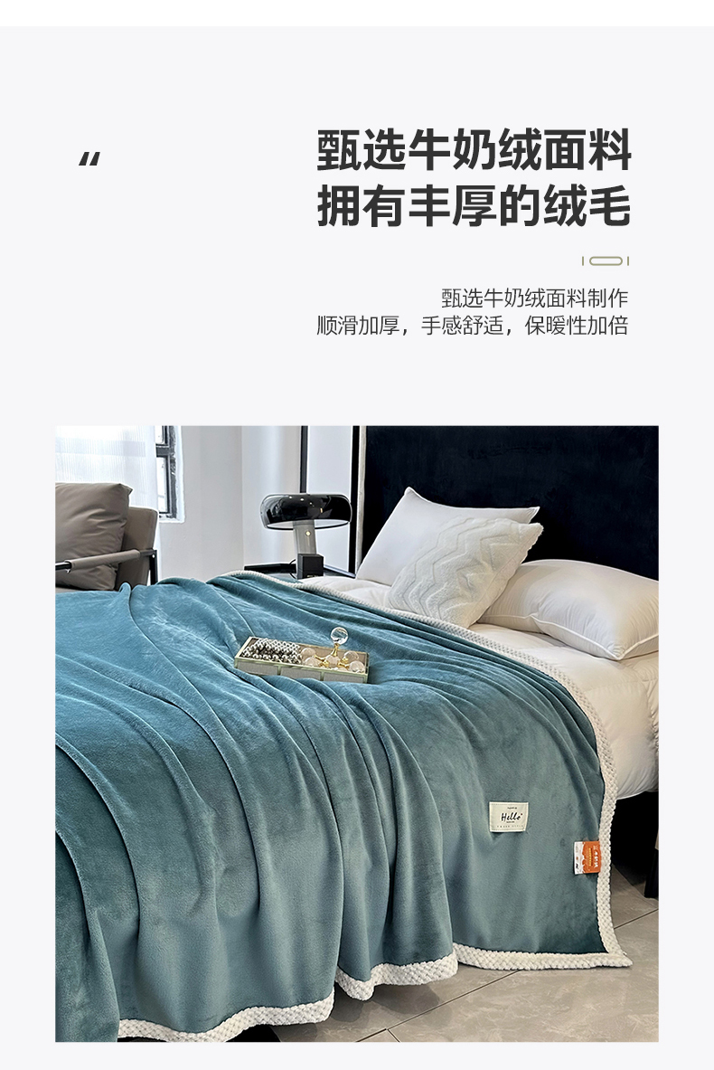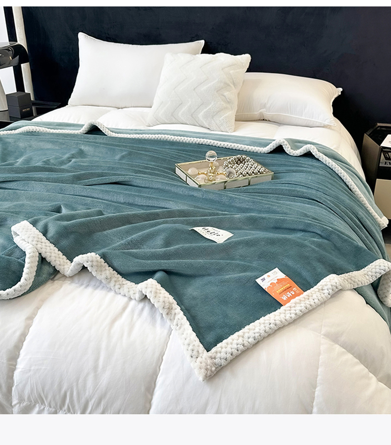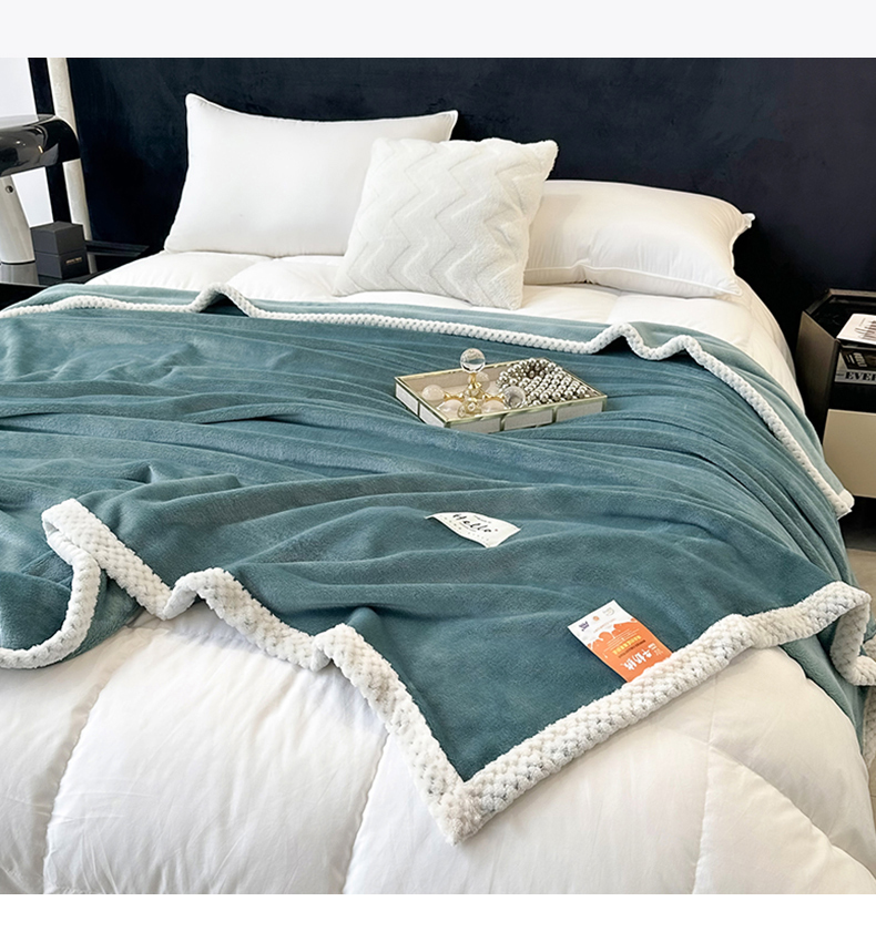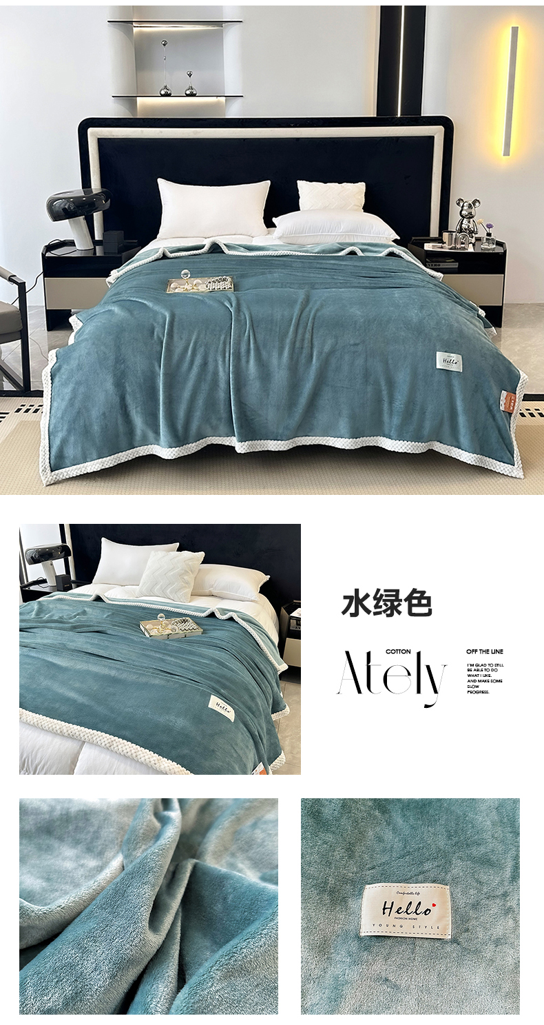 商品名称:2023新款400g高克重纯色双面牛奶绒毛毯盖毯毯子 水绿色