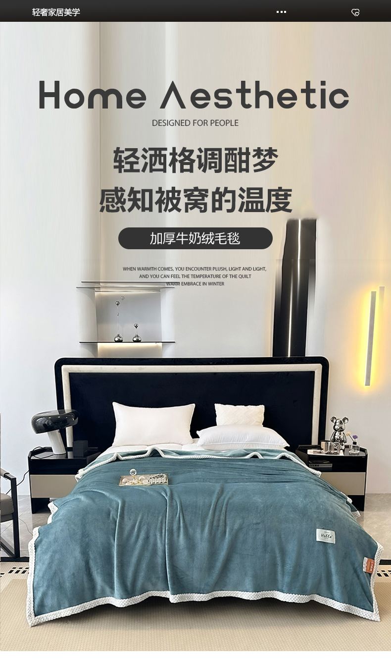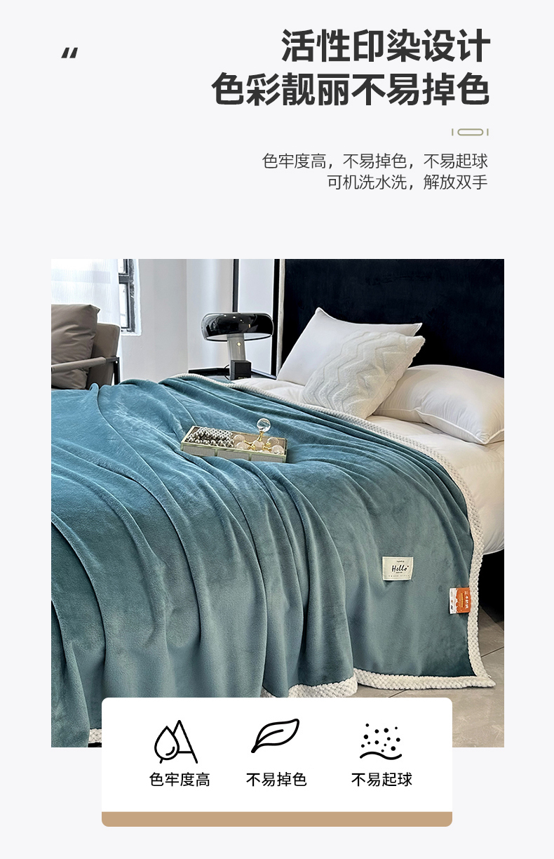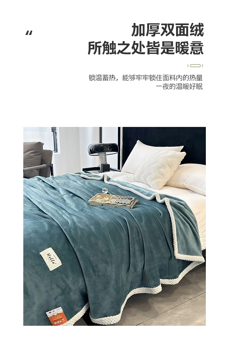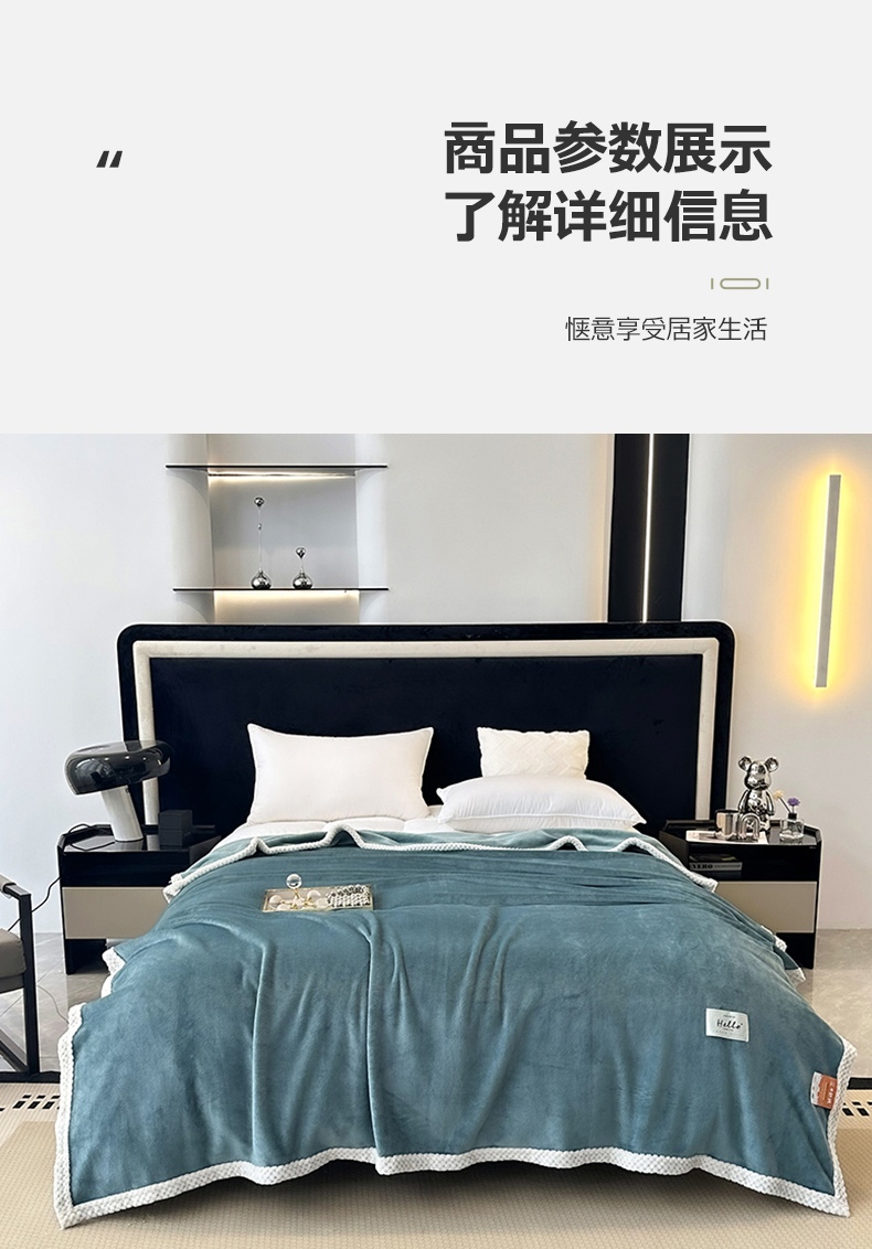 商品名称:2023新款400g高克重纯色双面牛奶绒毛毯盖毯毯子 水绿色