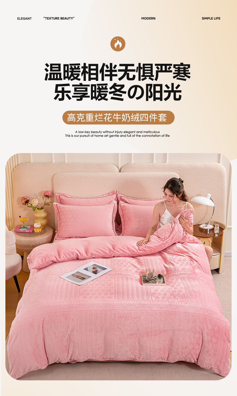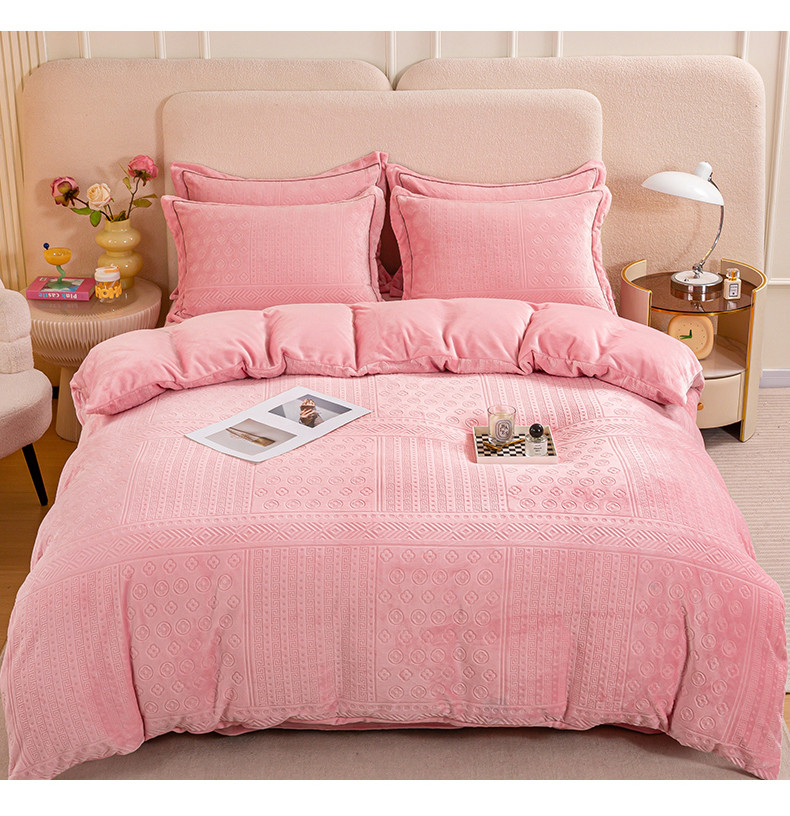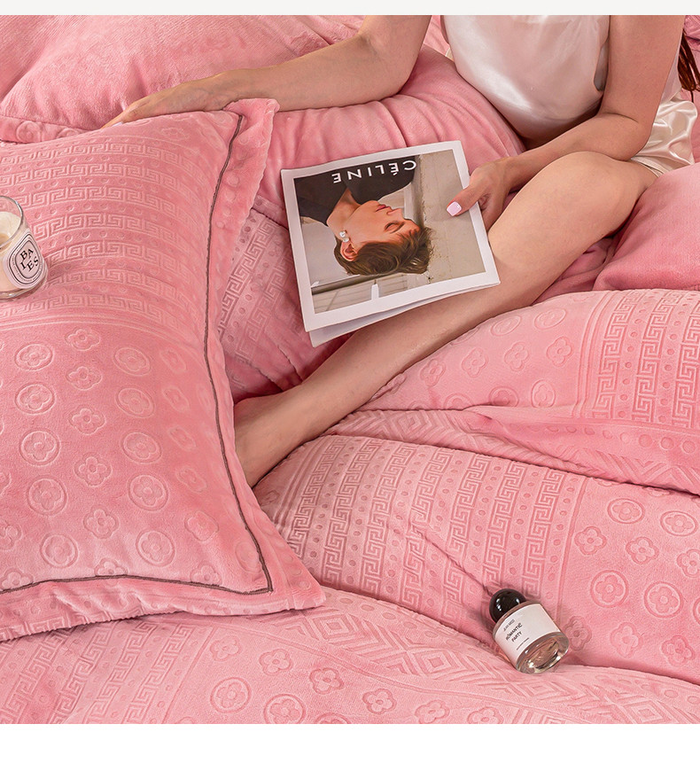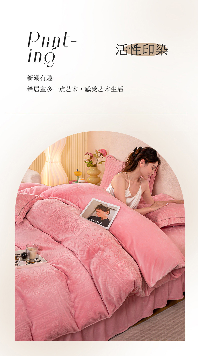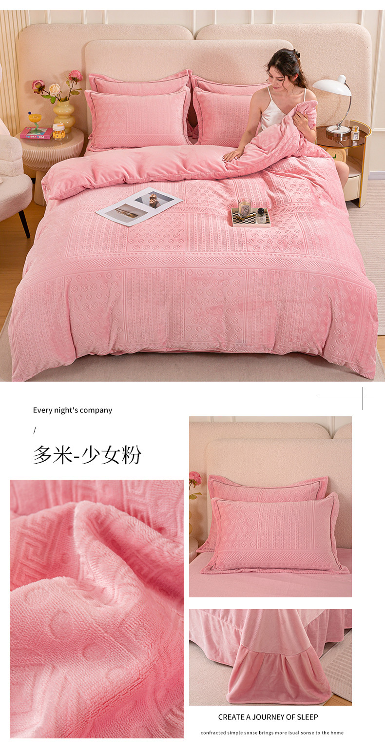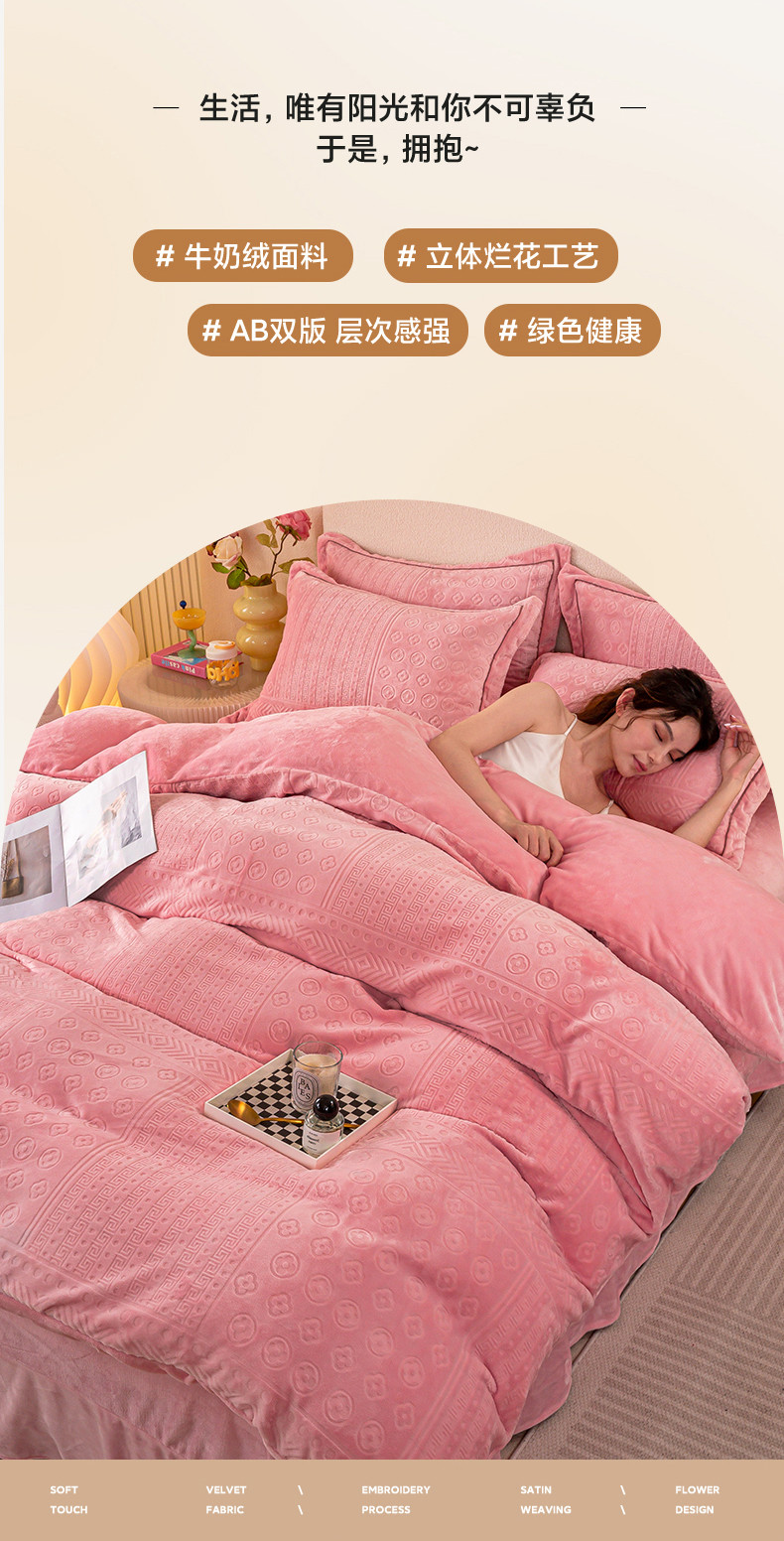 商品名称:博兰蒂 2023新款时尚烂花牛奶绒四件套-多米系列 少女粉