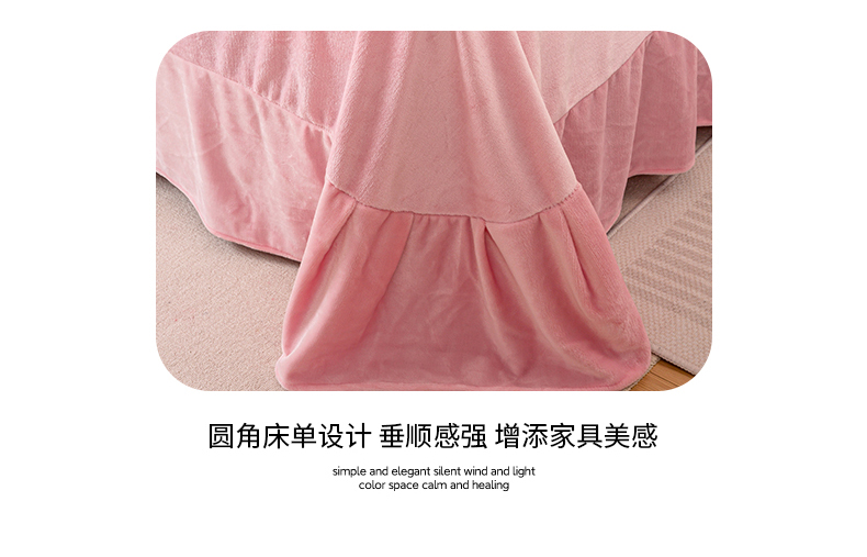 (总)博兰蒂 2025秋冬新款高克重纯色牛奶绒床裙款四件套,豆沙,粉玉,红色,灰色,橘色,咖色,蓝色,苹果绿,浅绿,紫色,墨紫