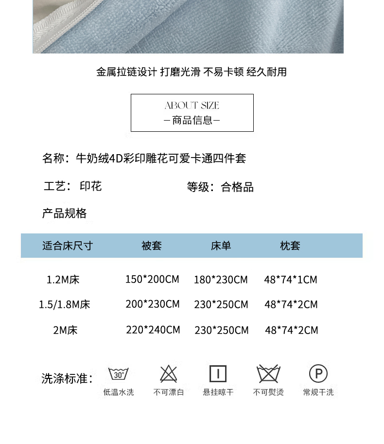 商品名称:2023 索飞特 新款牛奶绒4D彩印雕花四件套 花雨-蓝