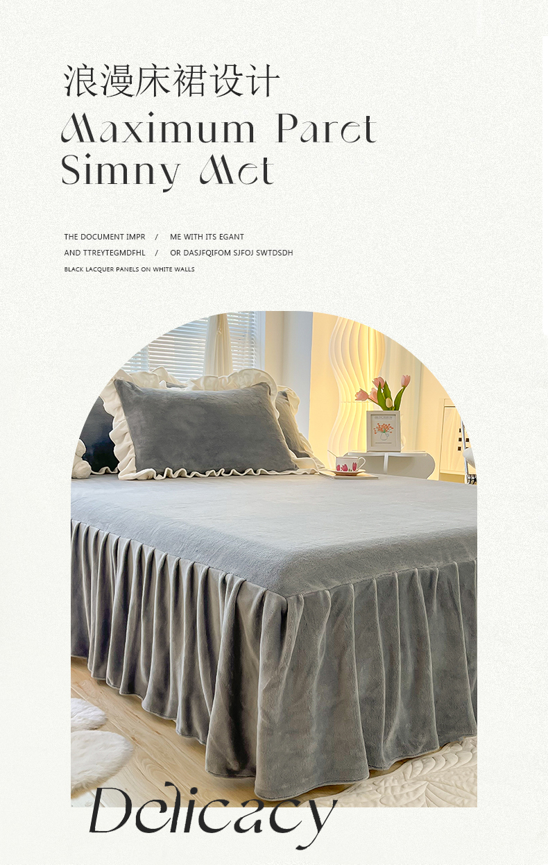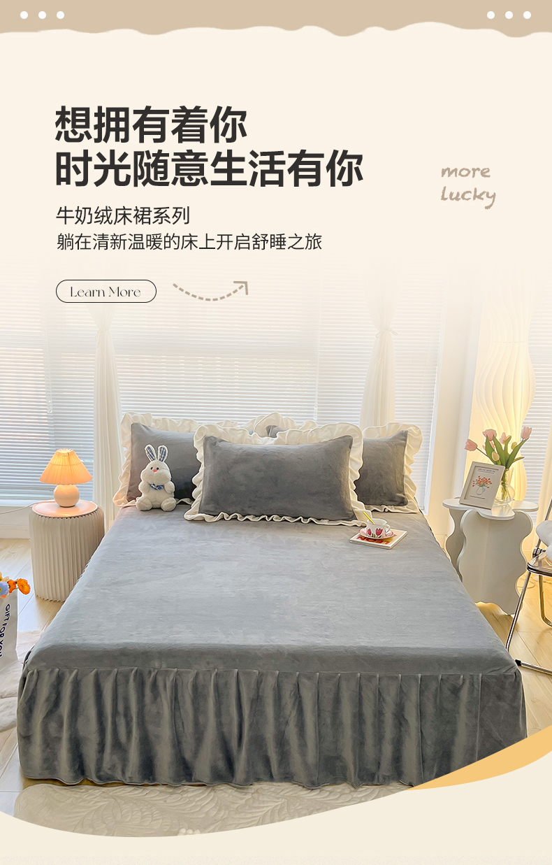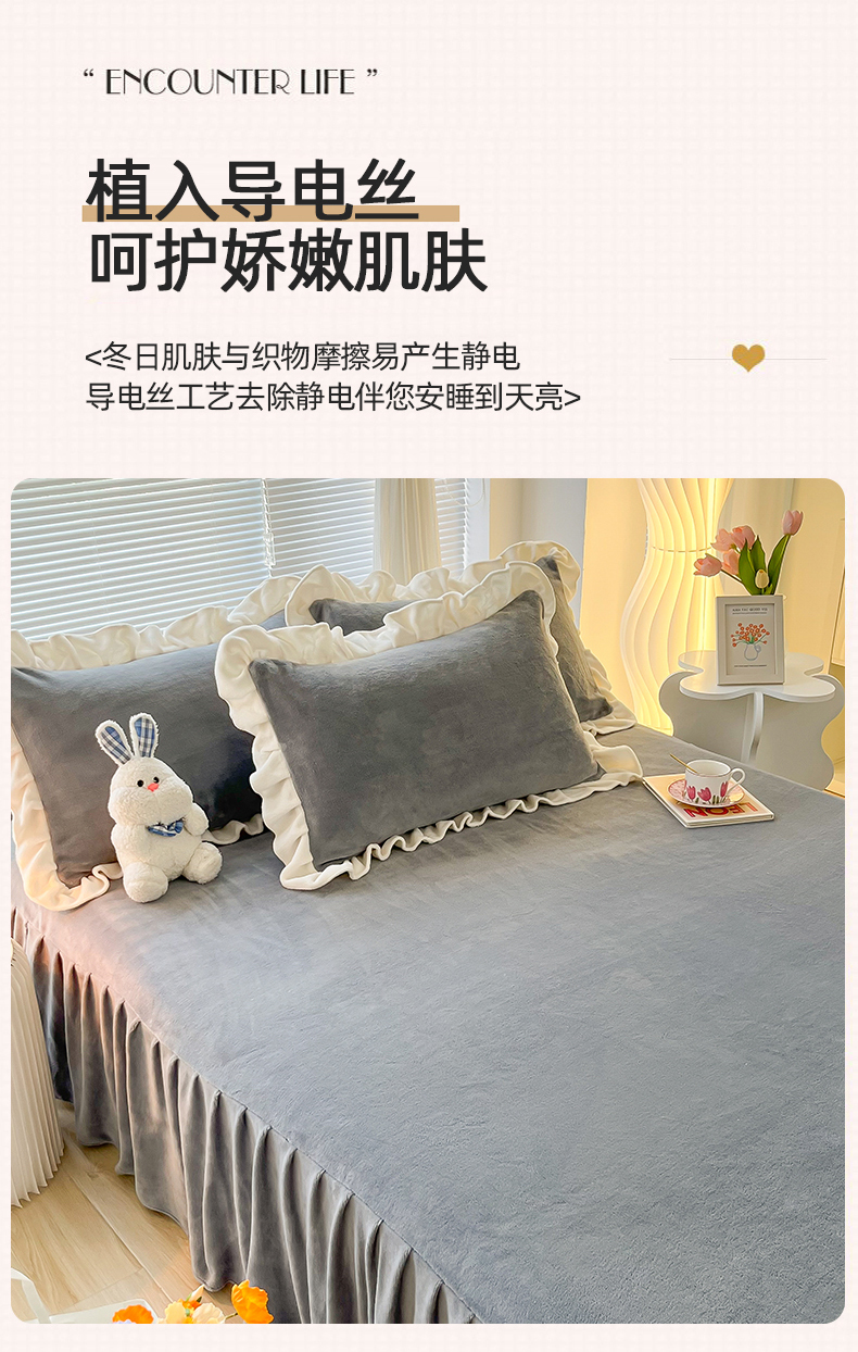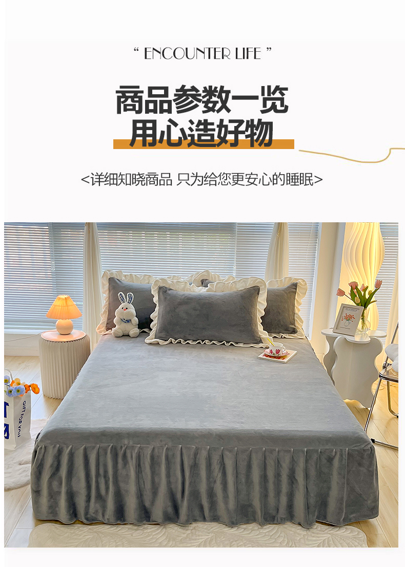 商品名称:(总)十里居 2023新款纯色韩版花边牛奶绒单床裙三件套