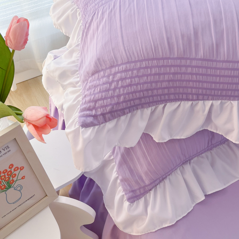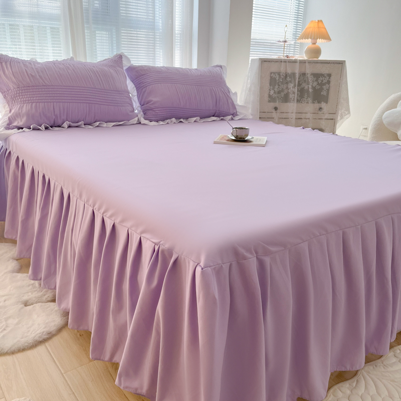 十里居 2023新款韩版花边水洗棉单床裙三件套 香芋紫