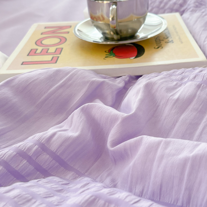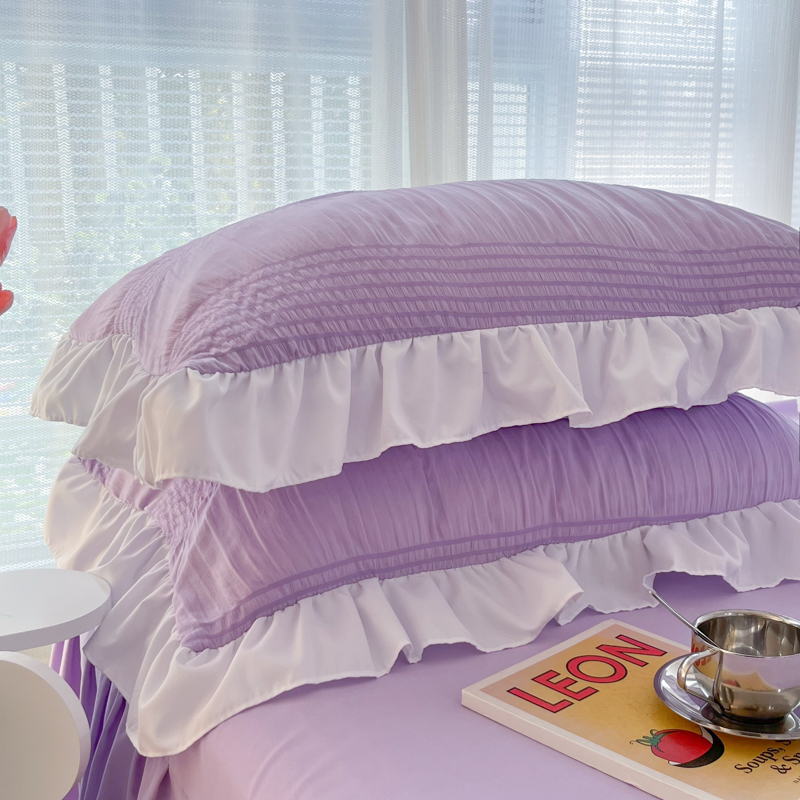 (总)十里居 2025新款泡泡纱提花韩版水洗棉公主格花边款四件套,罗兰紫,蜜桃粉,抹茶绿,柚子黄,月光灰,云朵蓝