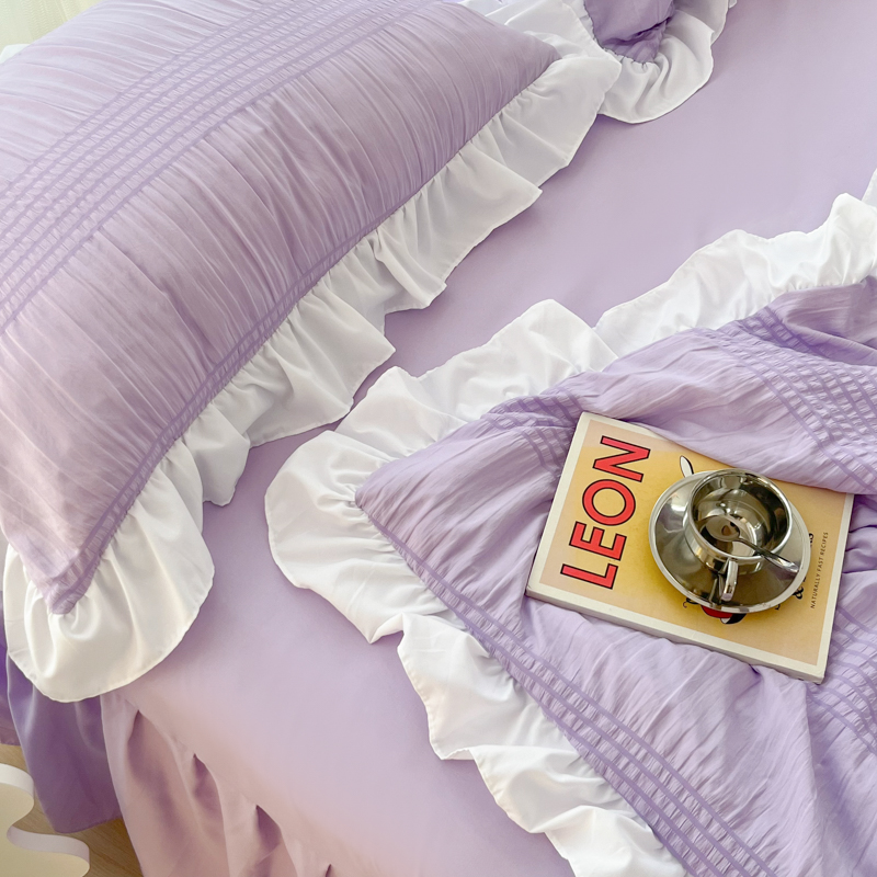 商品名称:十里居 2023新款韩版花边水洗棉单床裙三件套 香芋紫
