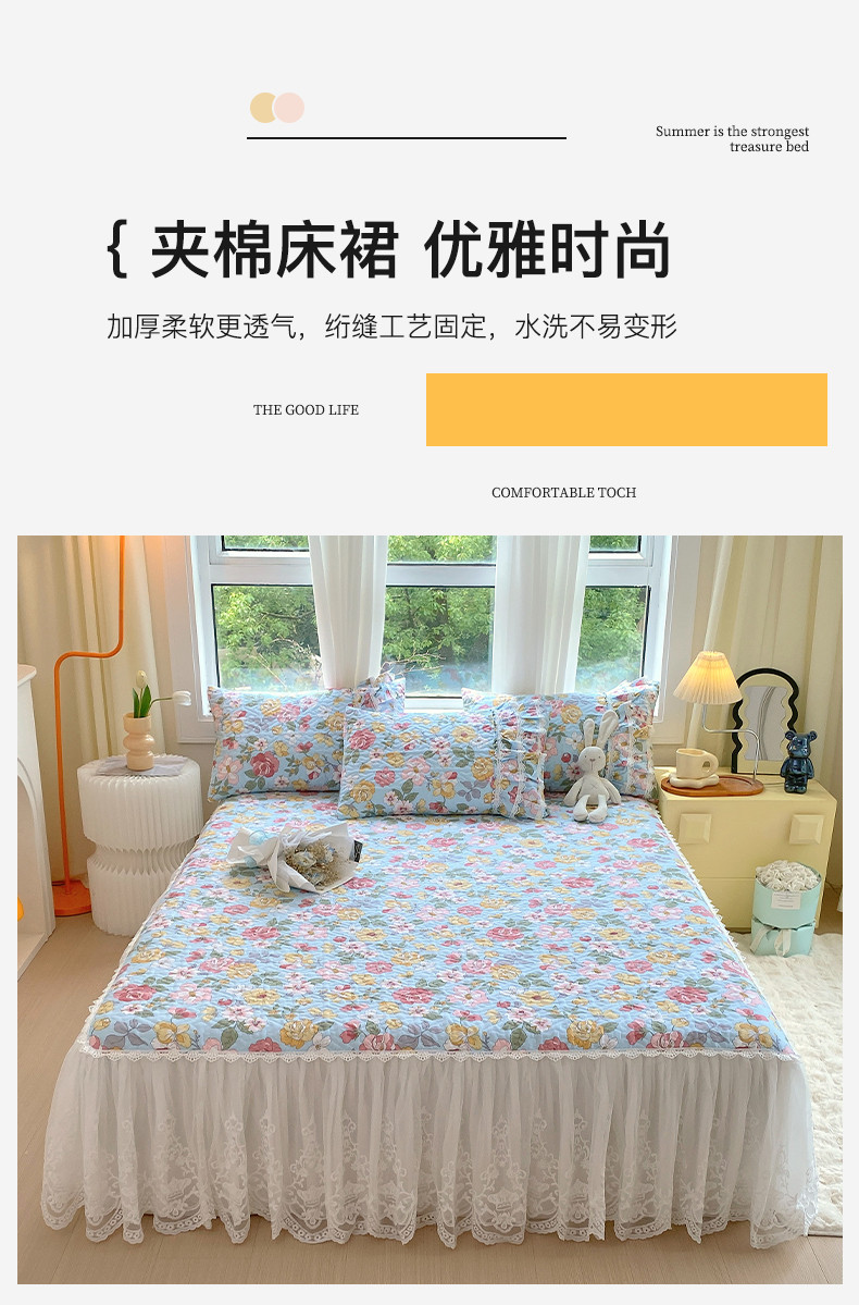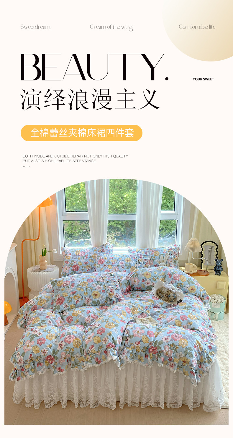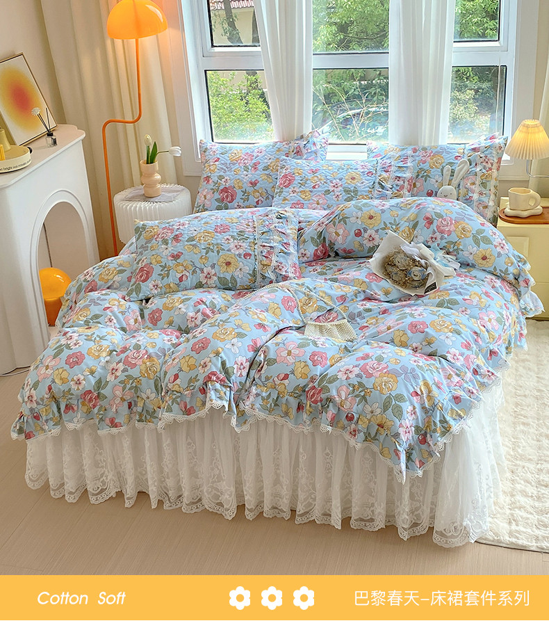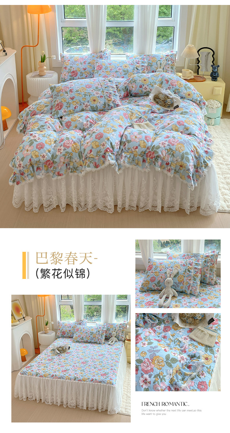 当前位置: 91家纺网 > 商品网购 > 床品套件 > 四件套 > 全棉普通四件套 > 罗艺轩 2024新款全棉蕾丝夹棉床裙巴黎春天系列四件套 繁花似锦