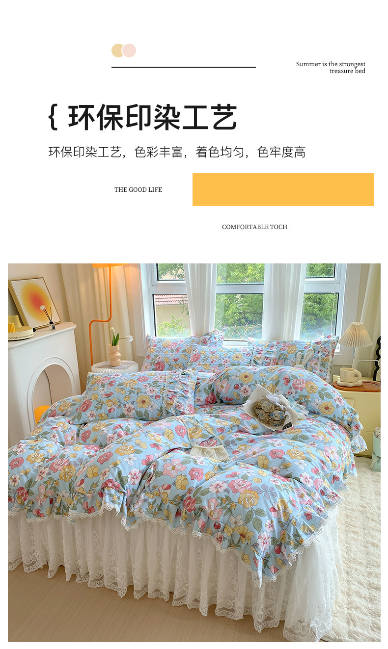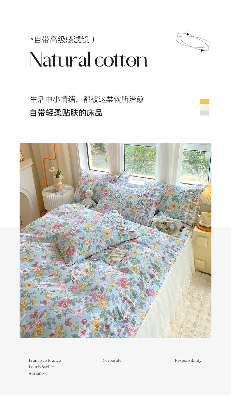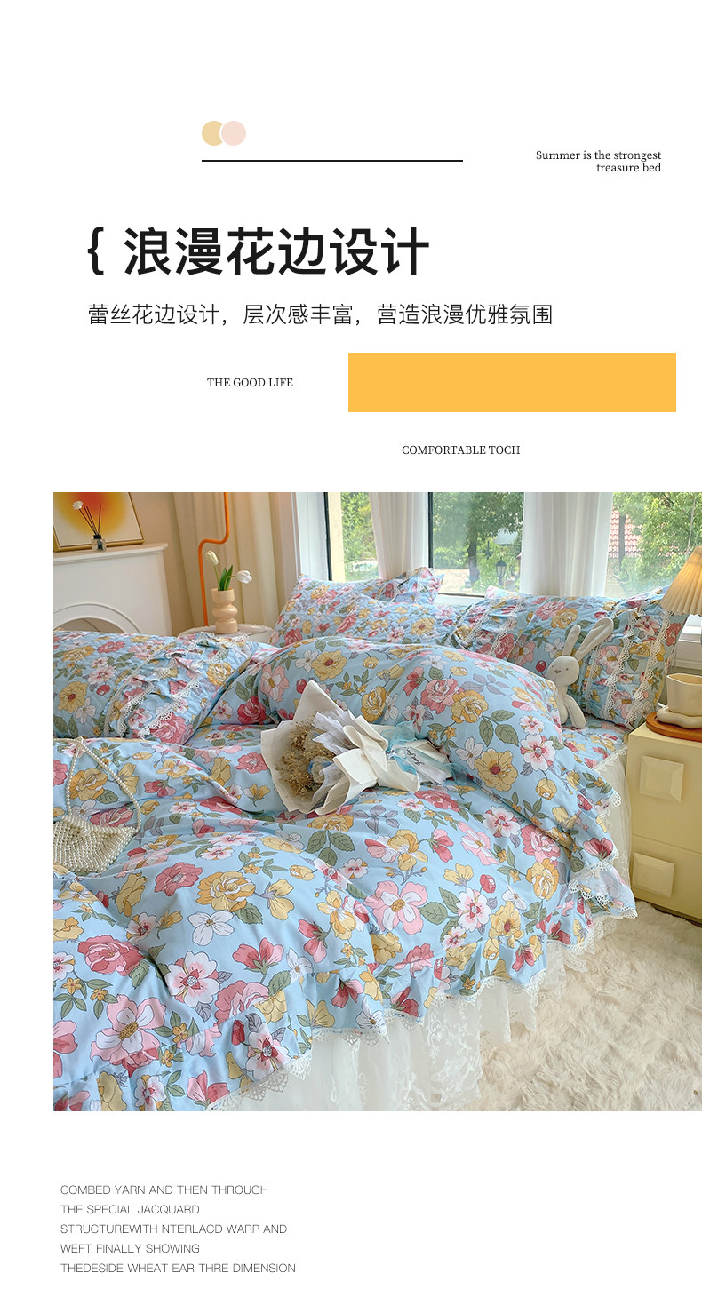 当前位置: 91家纺网 > 商品网购 > 床品套件 > 四件套 > 全棉普通四件套 > 罗艺轩 2024新款全棉蕾丝夹棉床裙巴黎春天系列四件套 繁花似锦