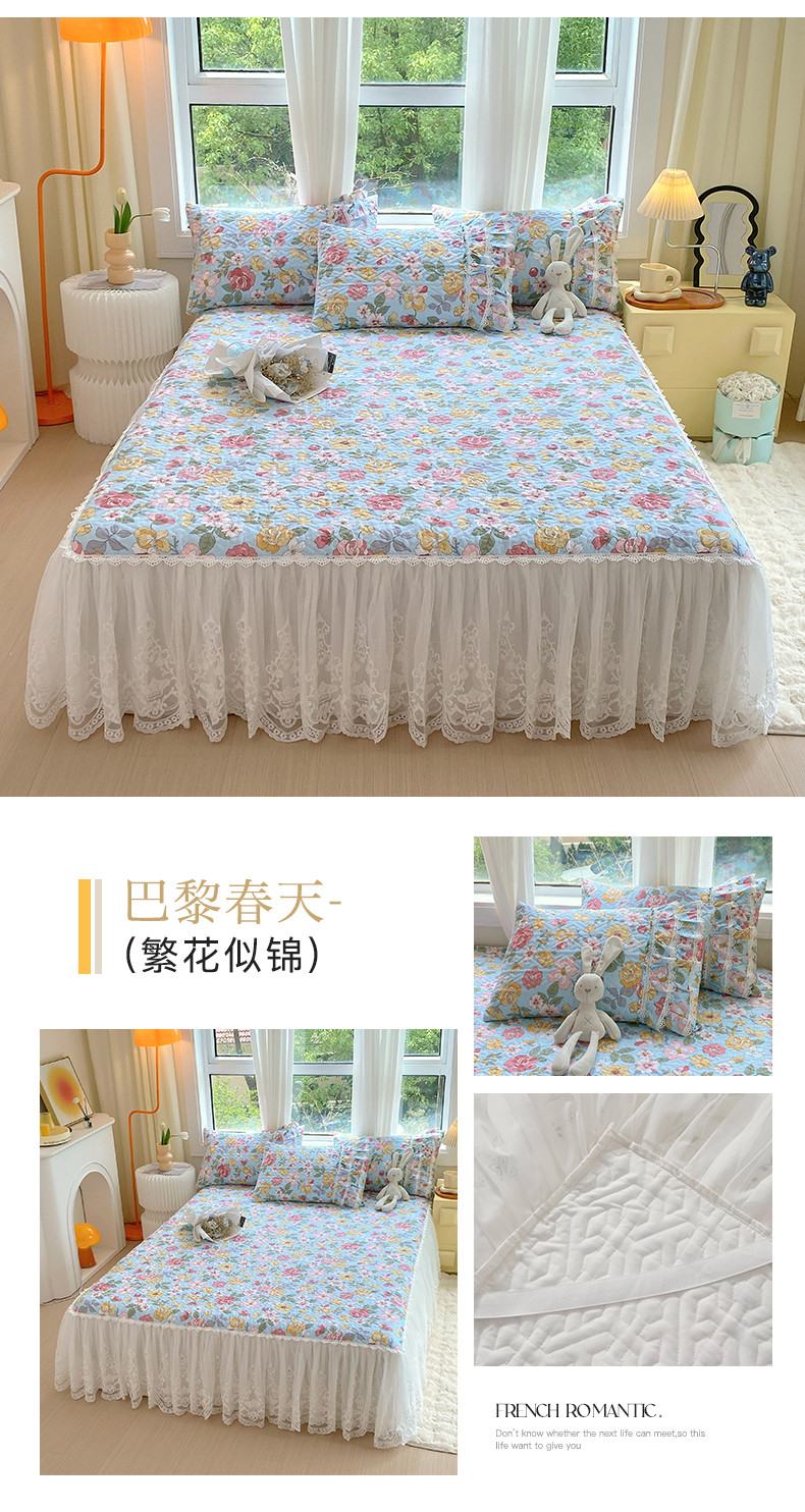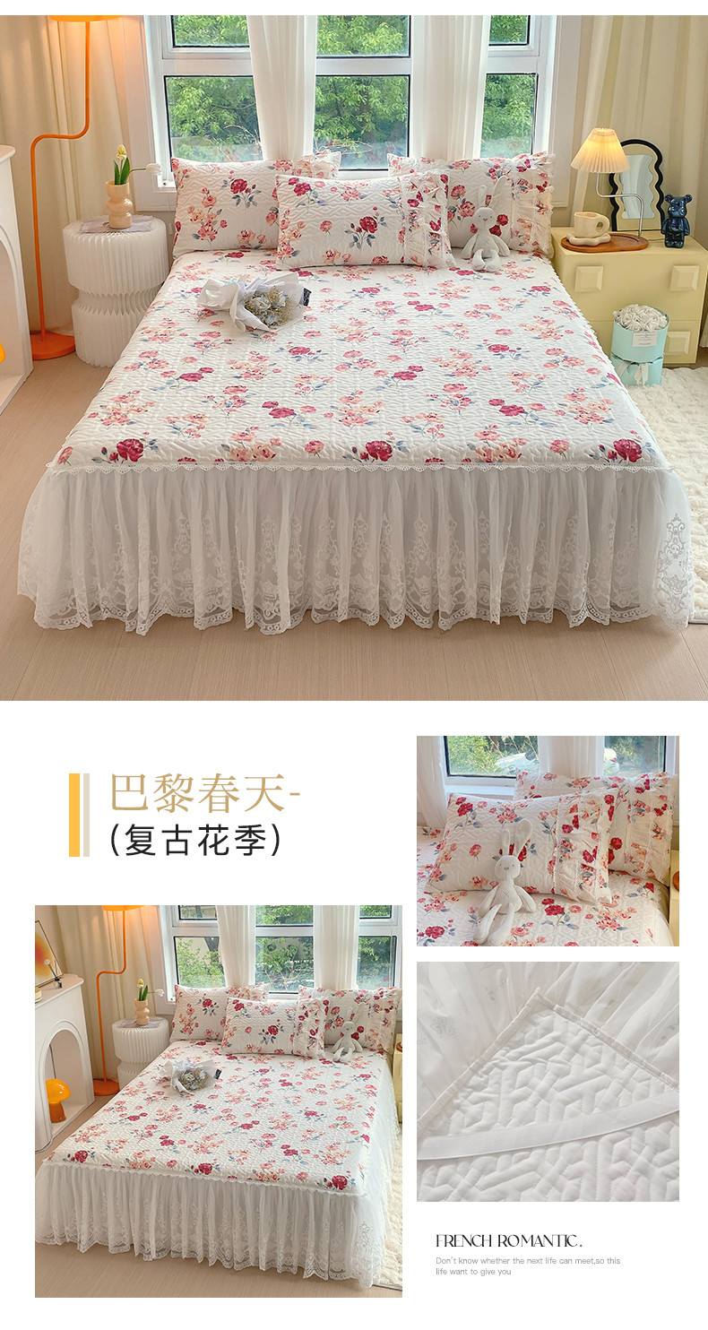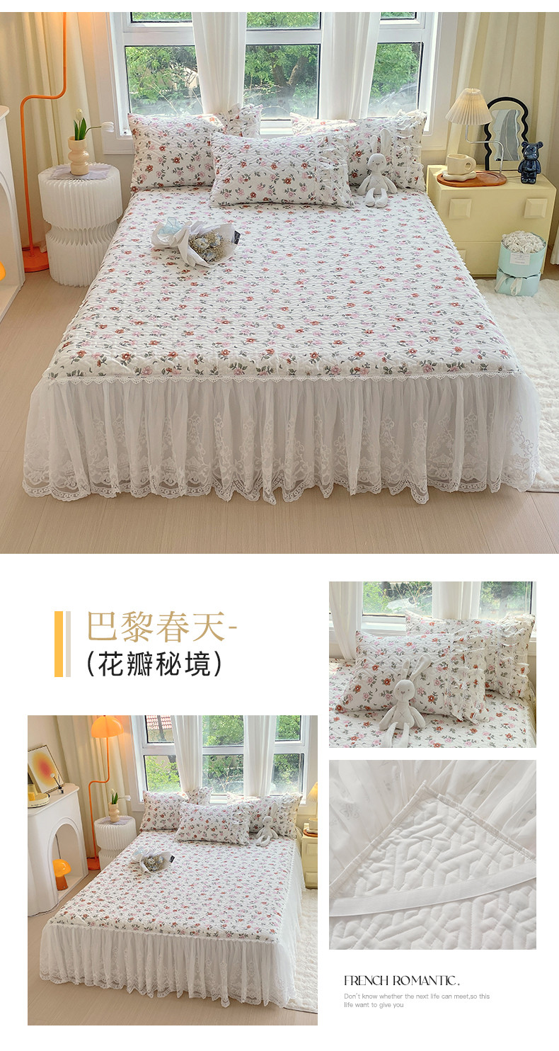 (总)罗艺轩 2024新款全棉蕾丝夹棉床裙巴黎春天系列三件套