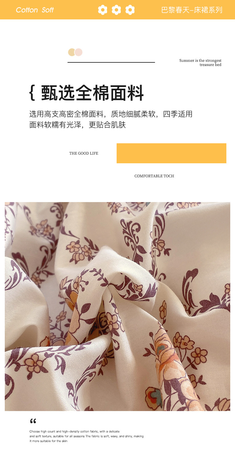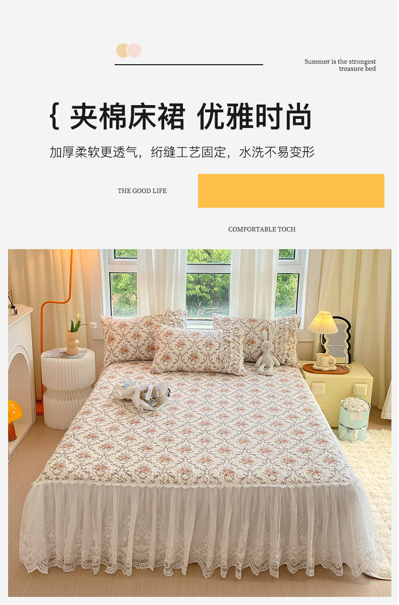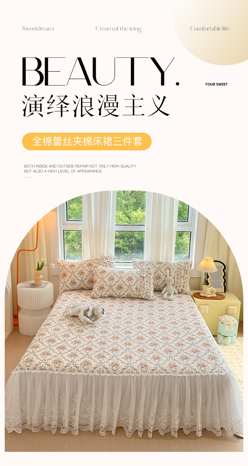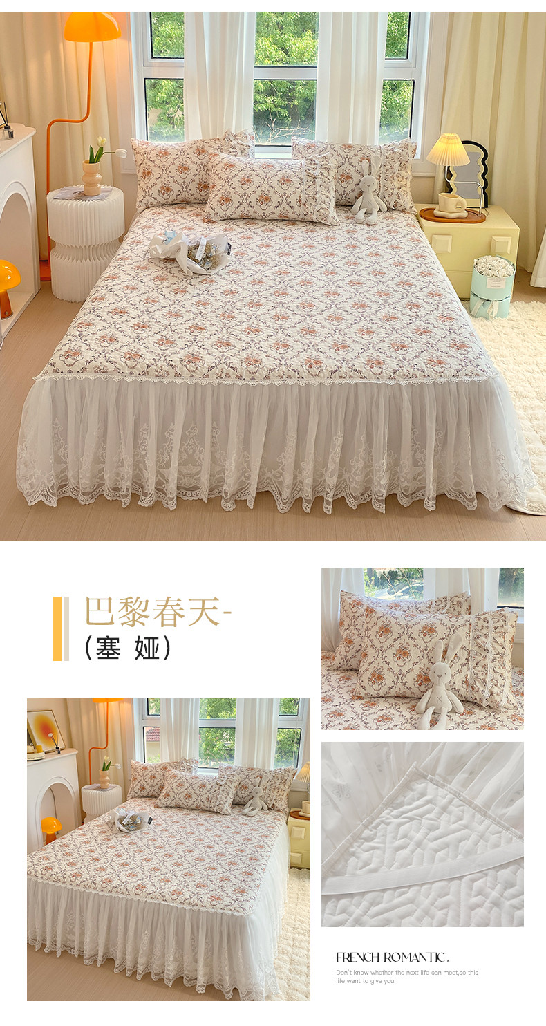 (总)罗艺轩 2024新款全棉蕾丝夹棉床裙巴黎春天系列三件套