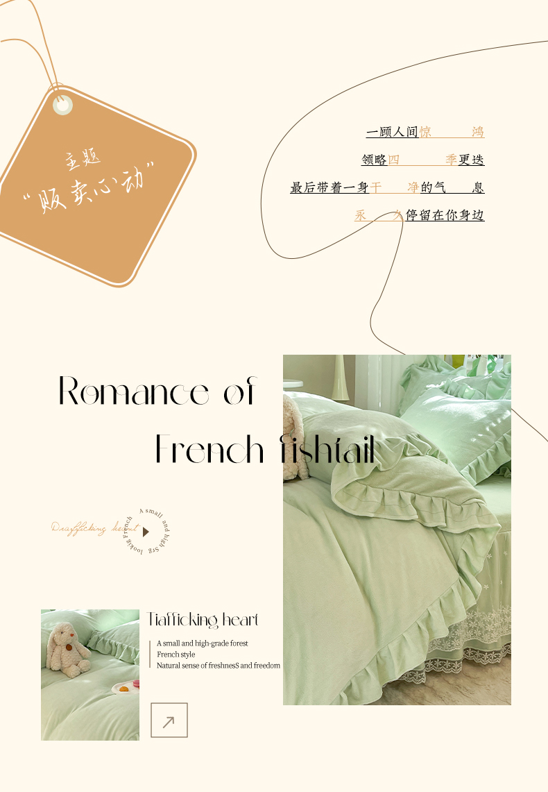 商品名称:2023秋冬加厚牛奶绒蕾丝花边床裙四件套直播爆款-遇见 遇见-薄荷绿