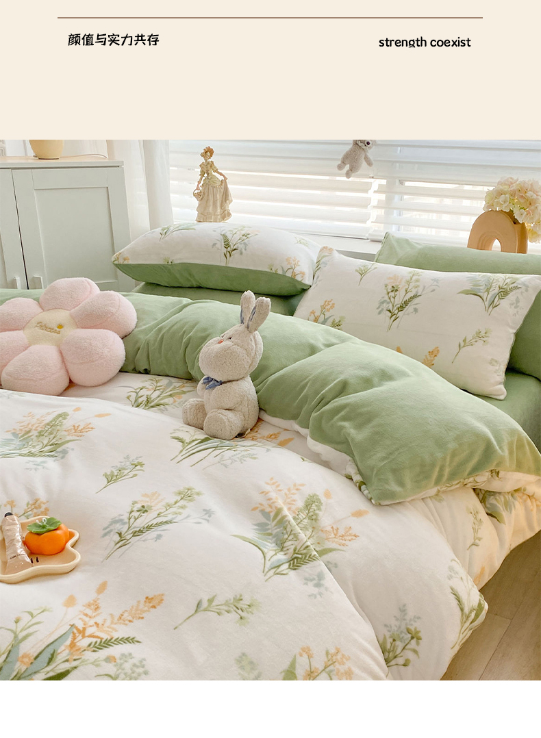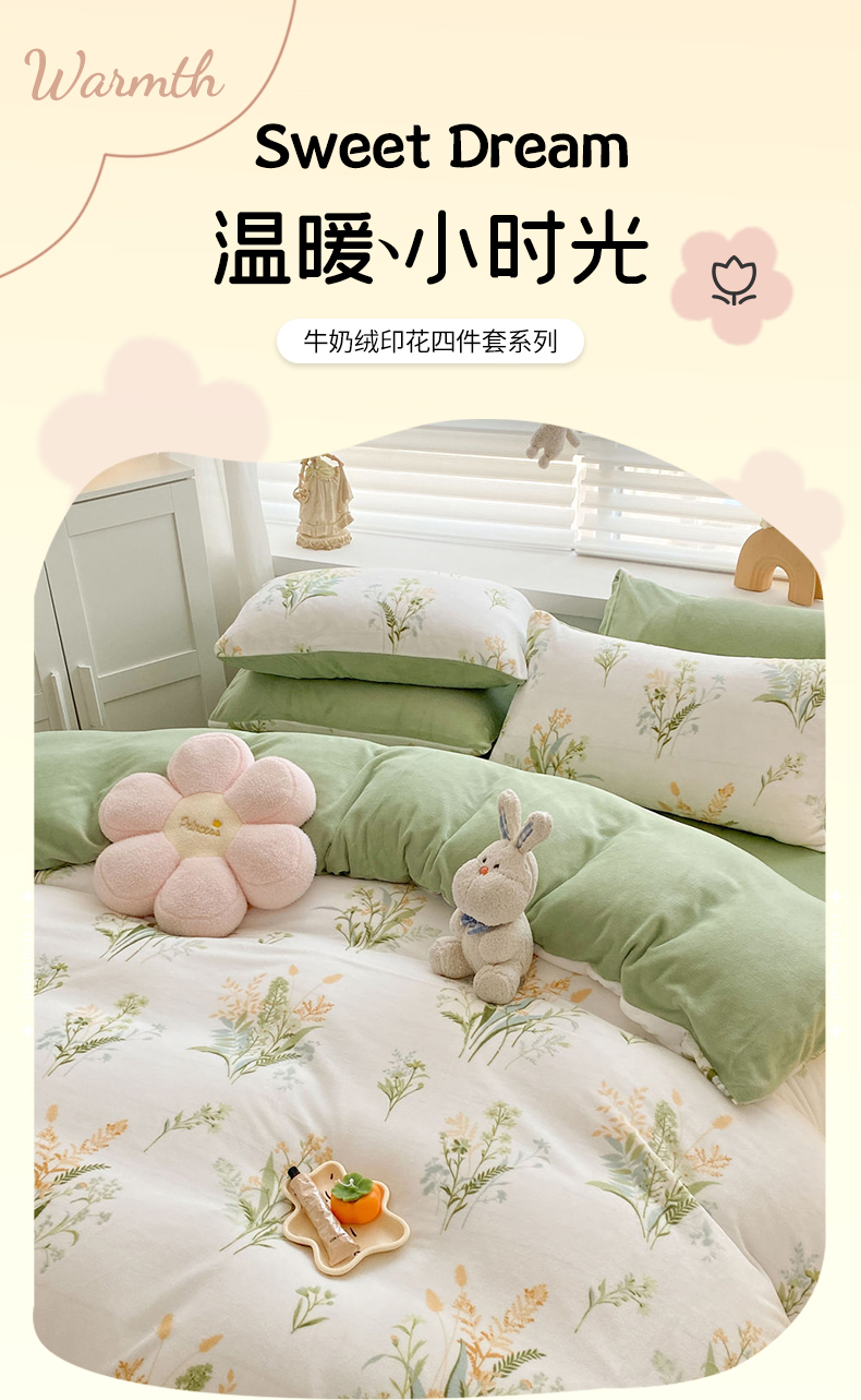 (总)2024新款水洗棉小清新印花学生三件套(床笠床套款),爱心熊,粉郁盛开,花间兔,花语,恐龙乐园,仙草,紫郁盛开