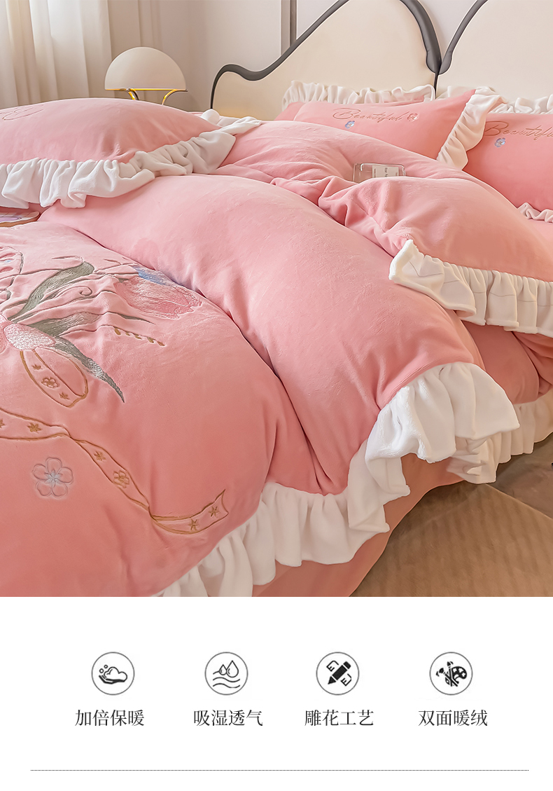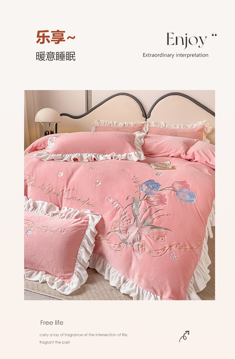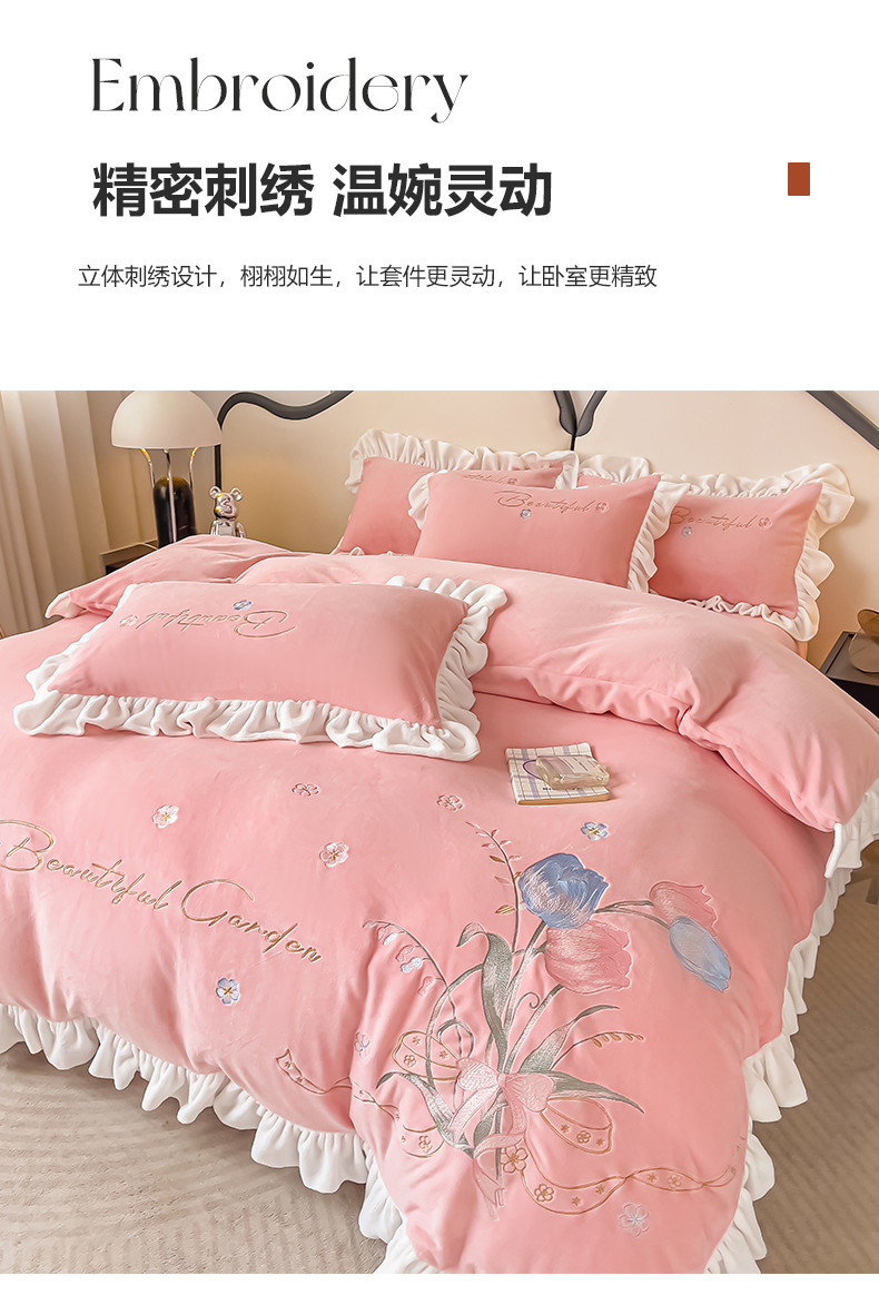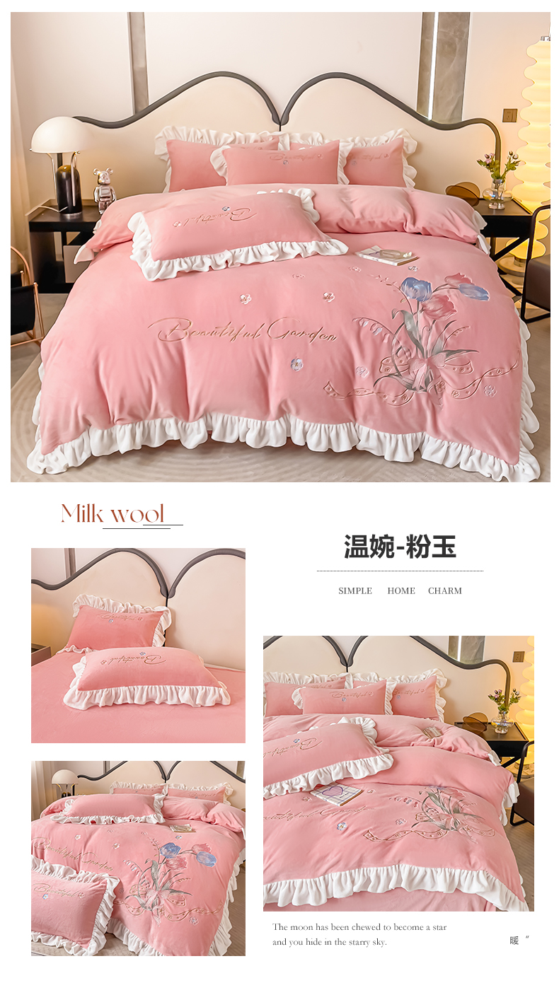 凯美家居 2023新款牛奶绒刺绣四件套 温婉 粉玉