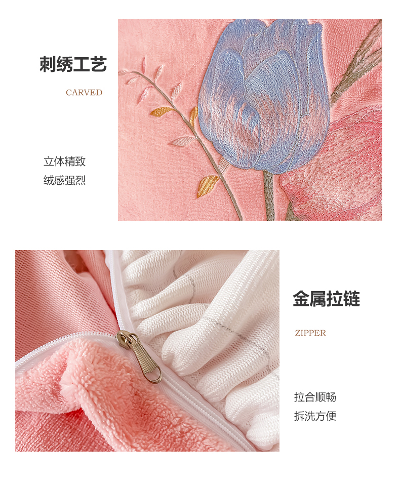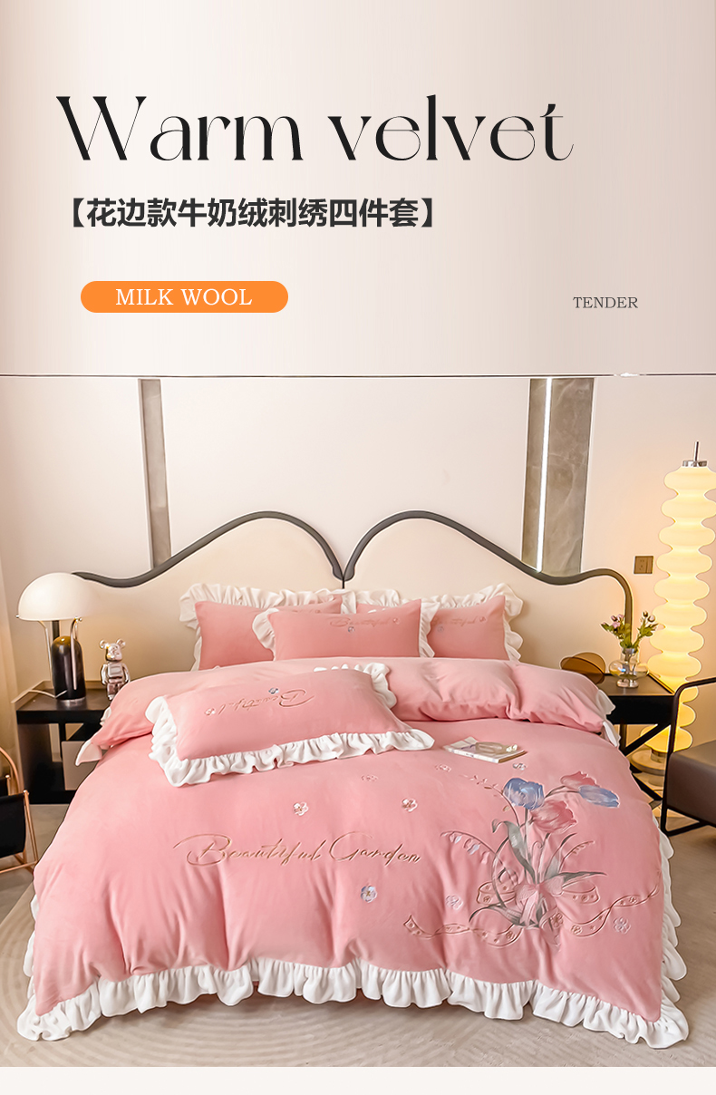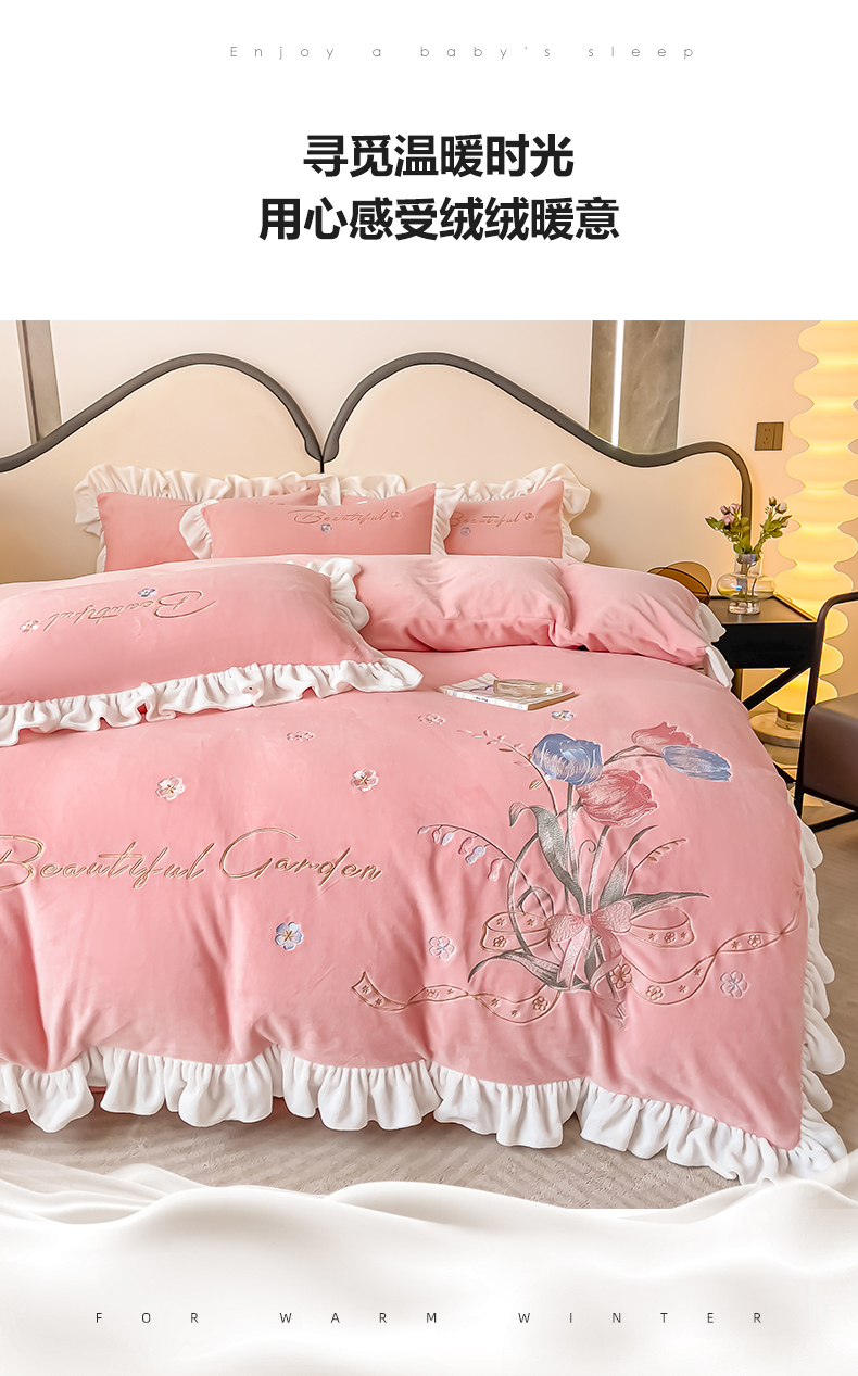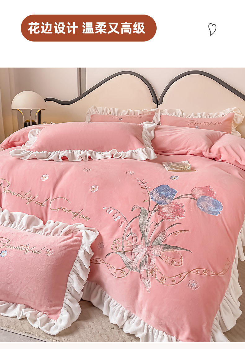 凯美家居 2023新款牛奶绒刺绣四件套 温婉 粉玉