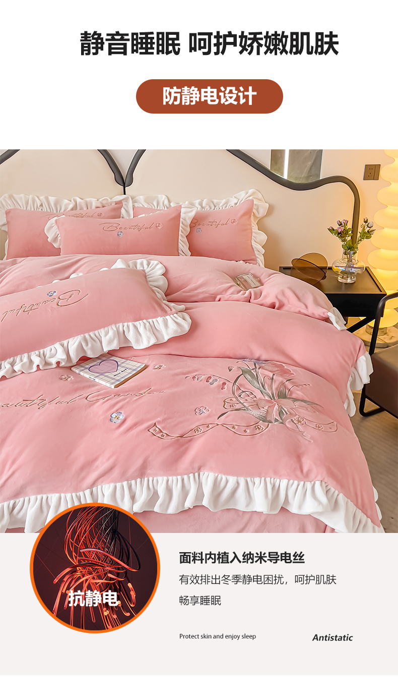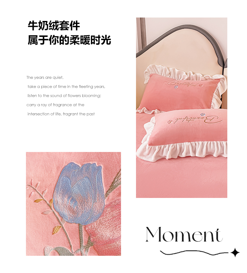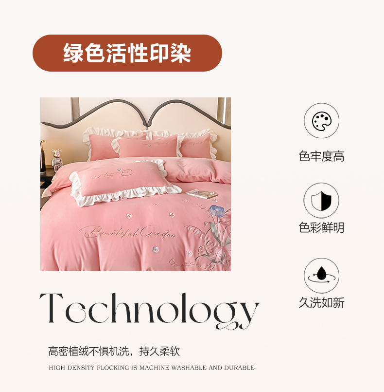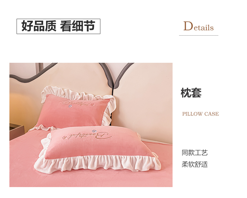 商品名称:凯美家居 2023新款牛奶绒刺绣四件套 温婉 粉玉