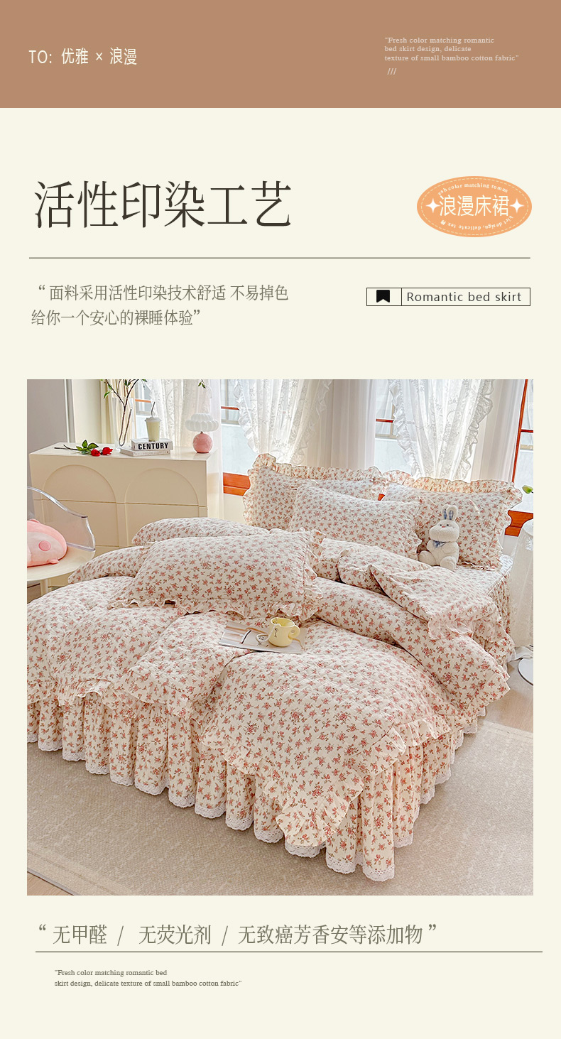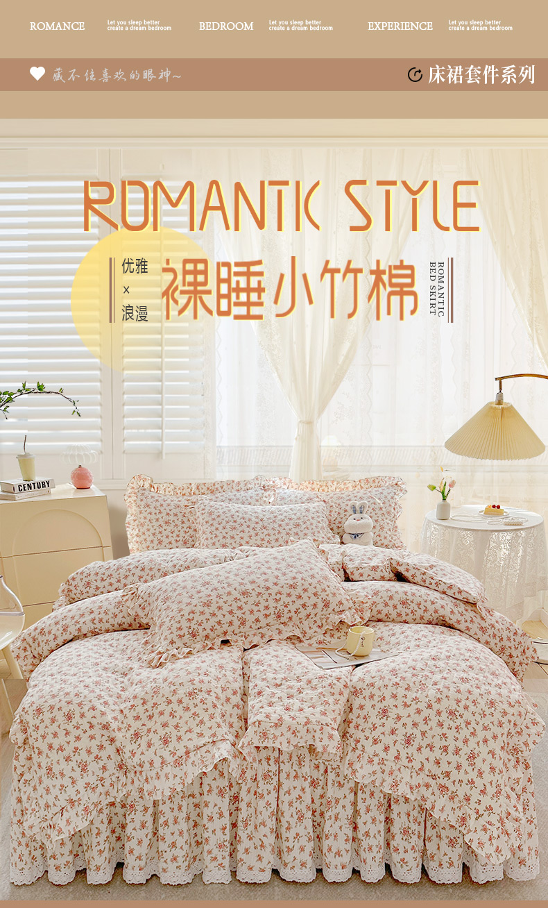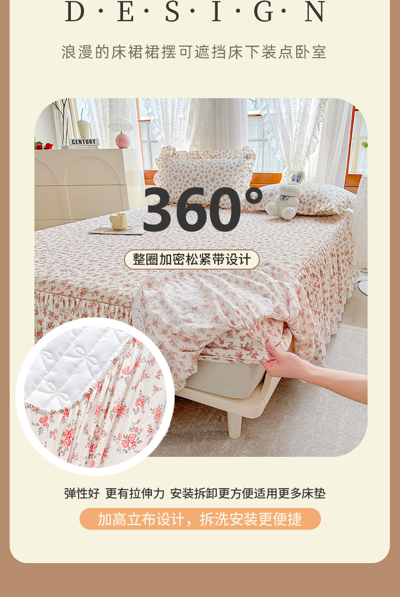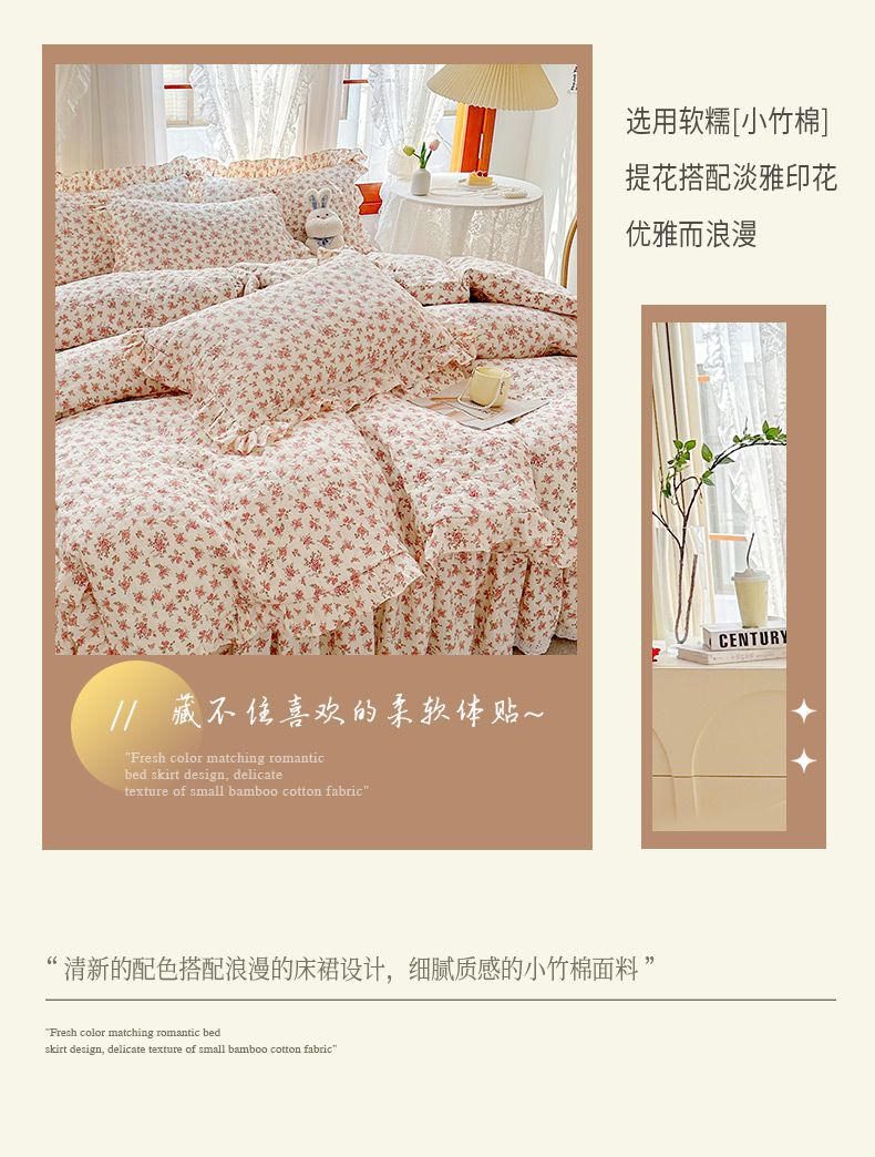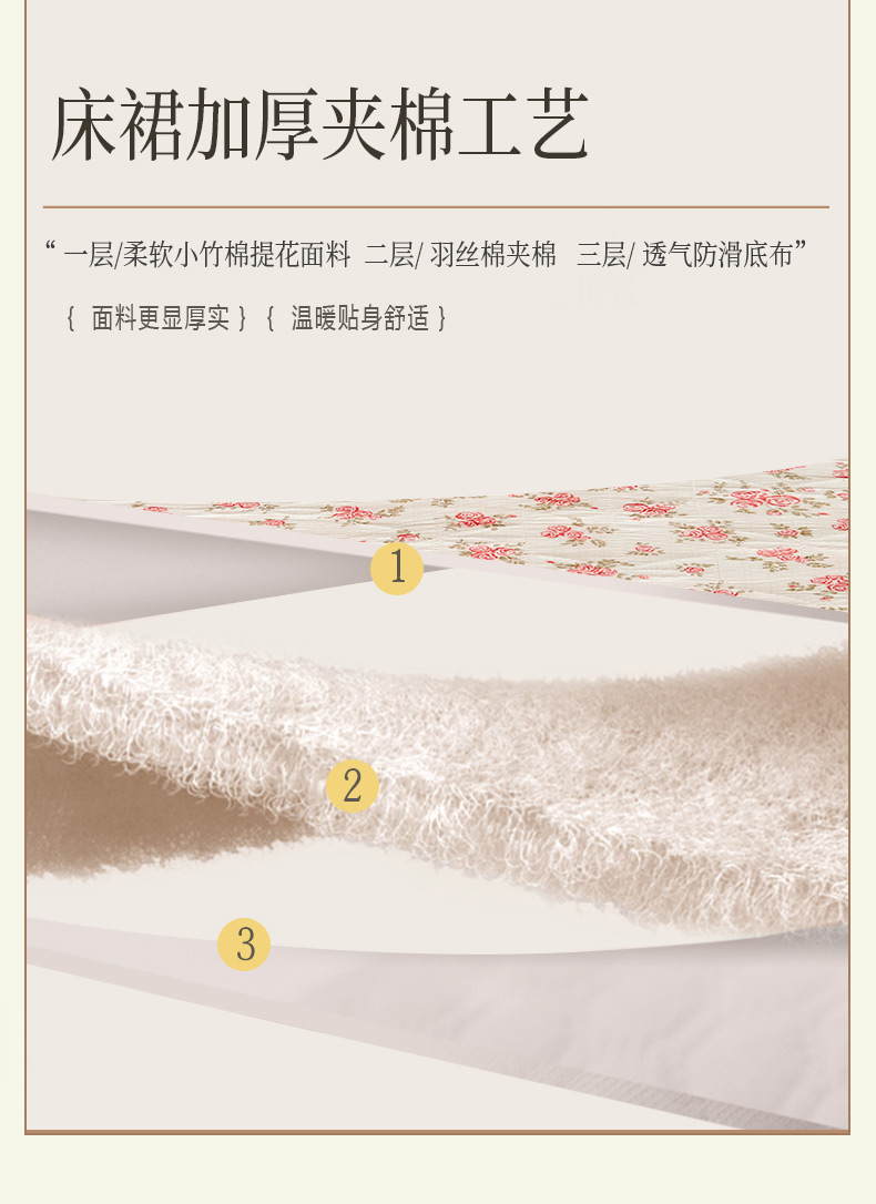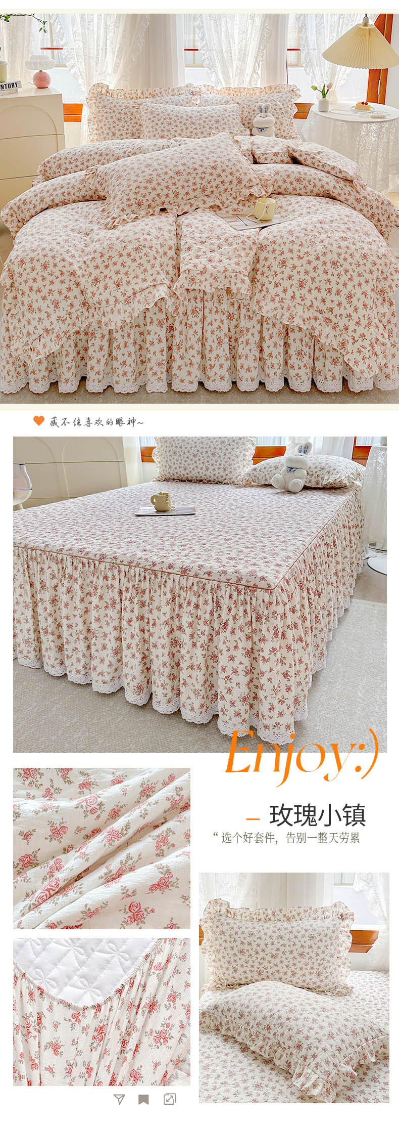 当前位置: 91家纺网 > 商品网购 > 床品套件 > 四件套 > 提花四件套 > 恋尚 2023新款小竹棉提花床笠式床裙夹棉四件套 玫瑰小镇
