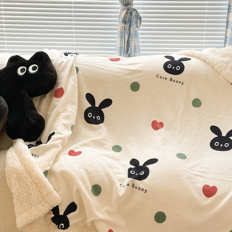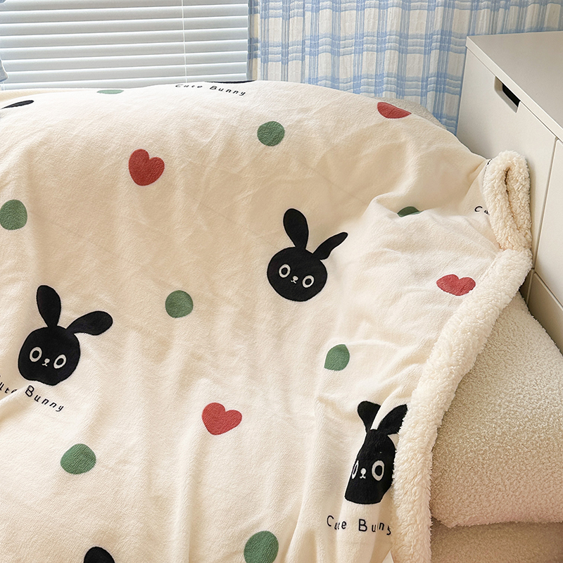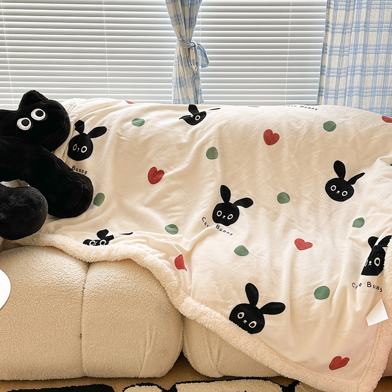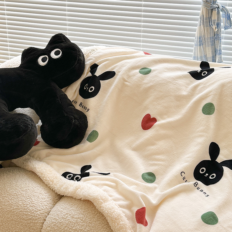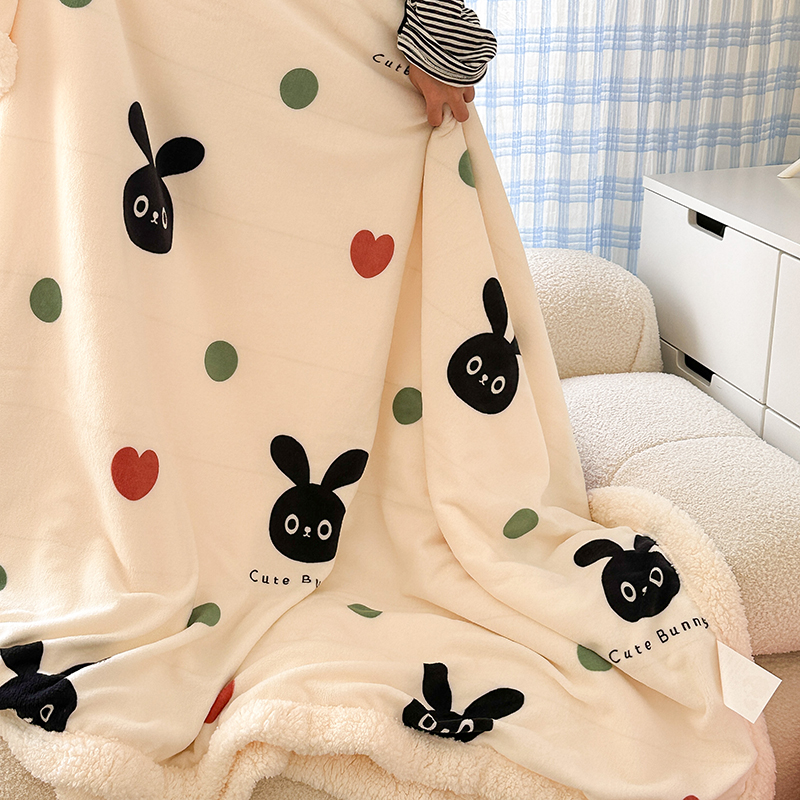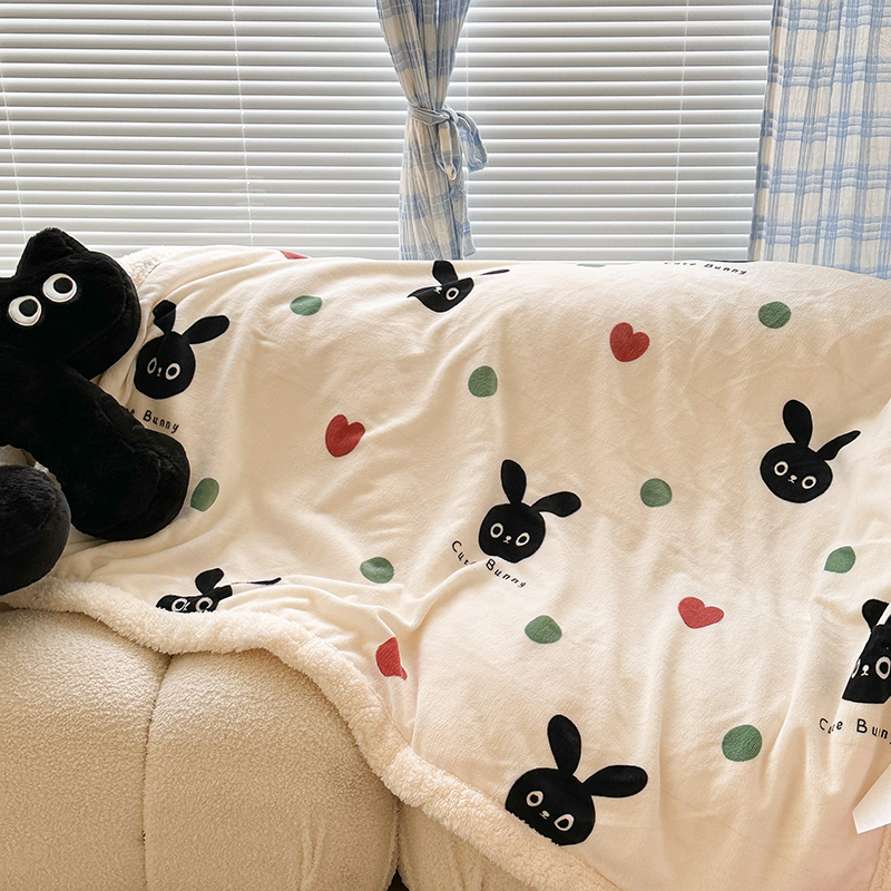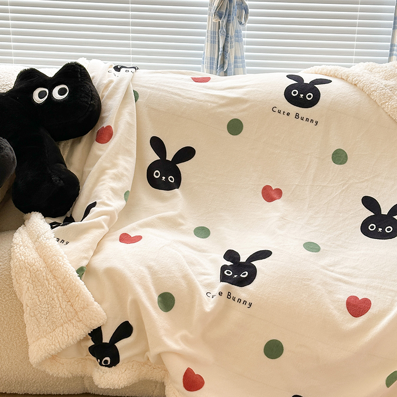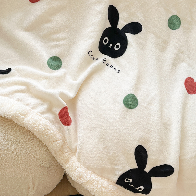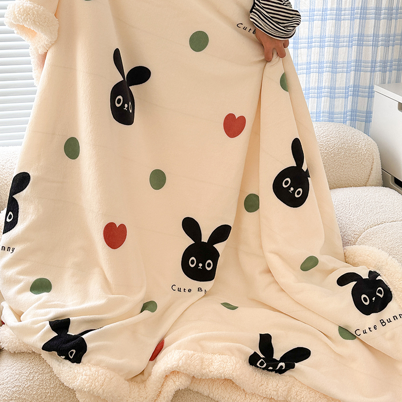 昔可家纺 2023新款ins风牛奶绒羊羔绒印花毛毯(风格二) 波点小黑兔