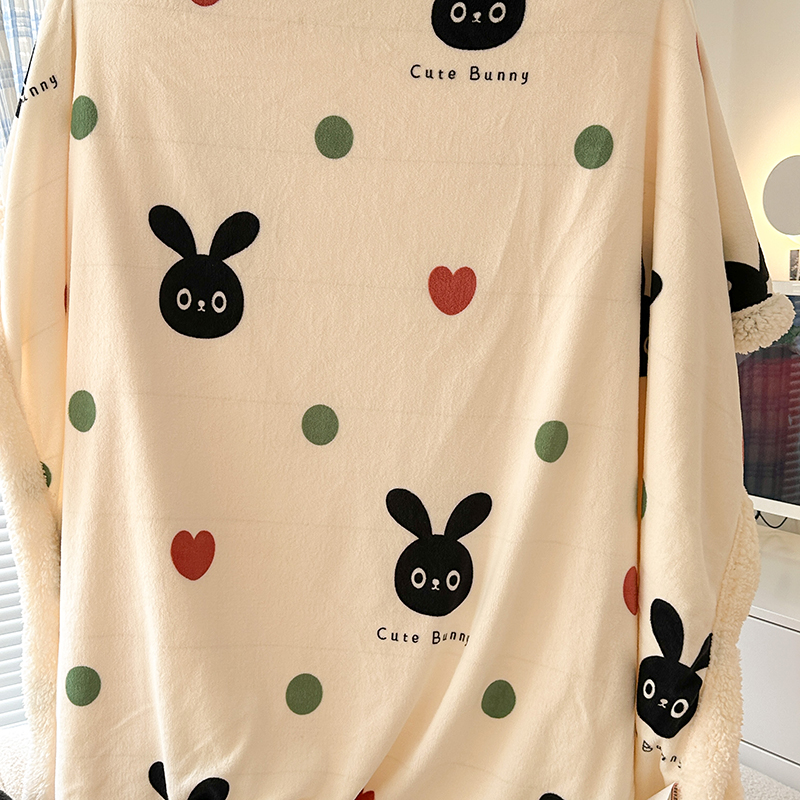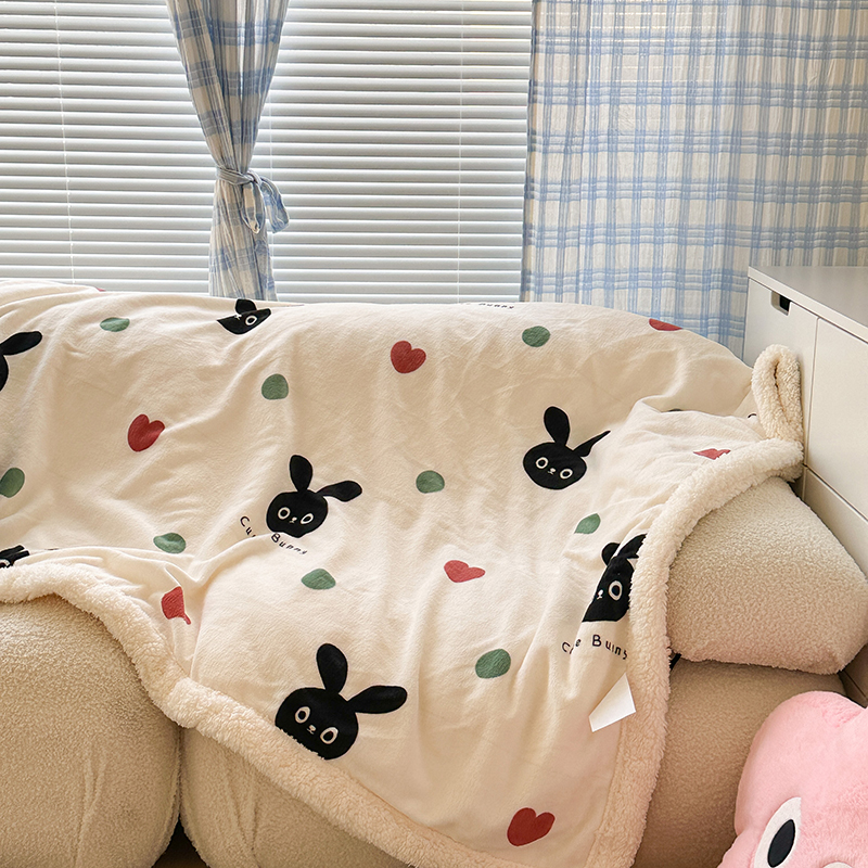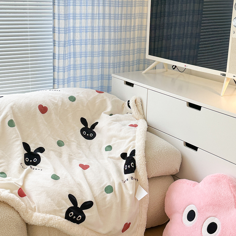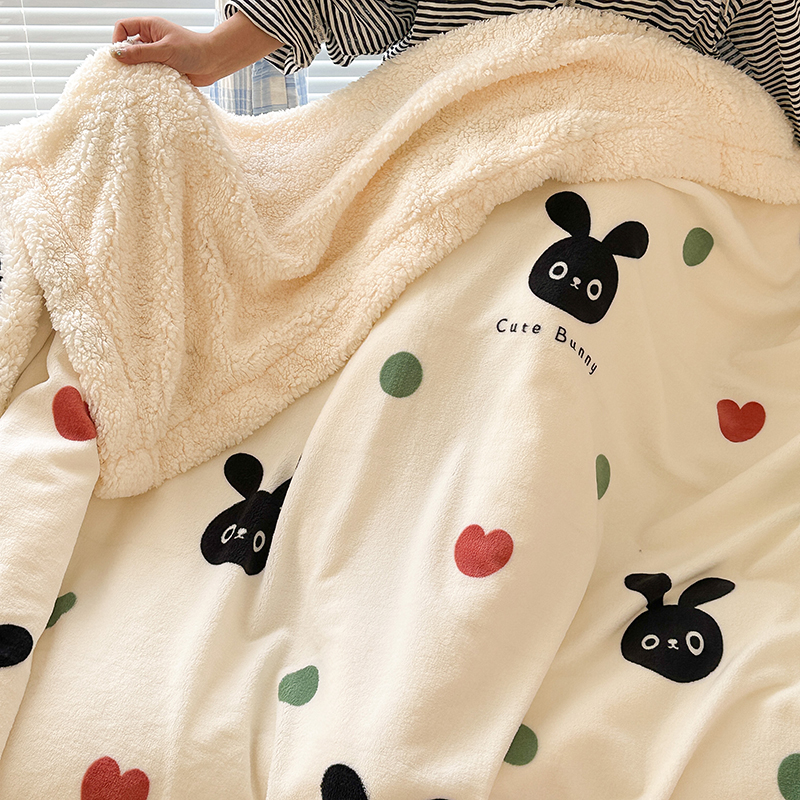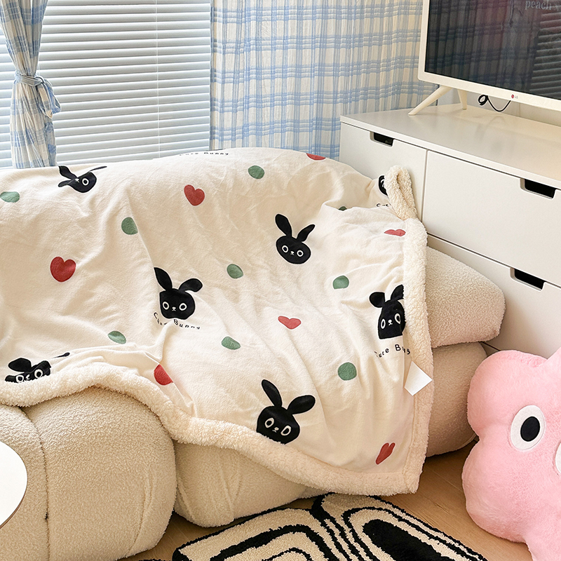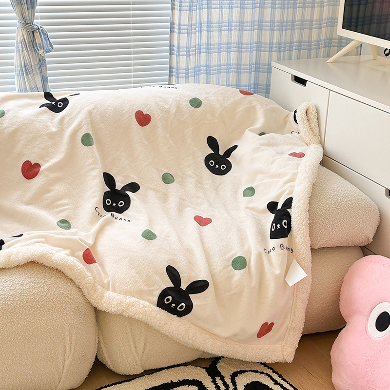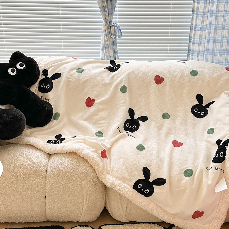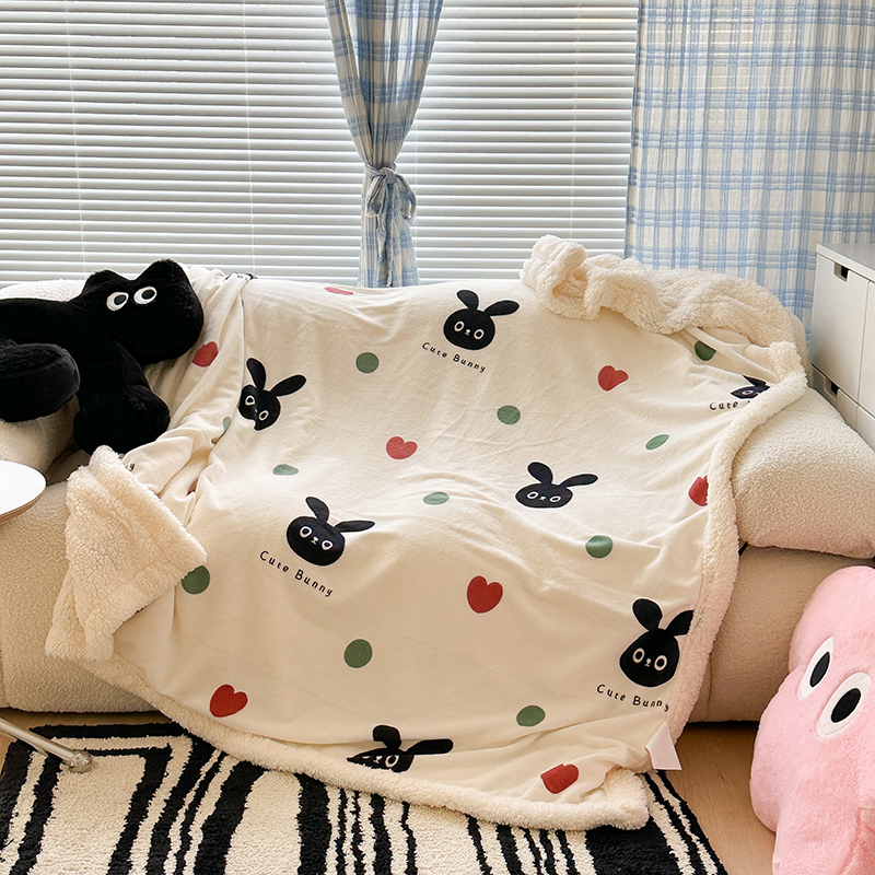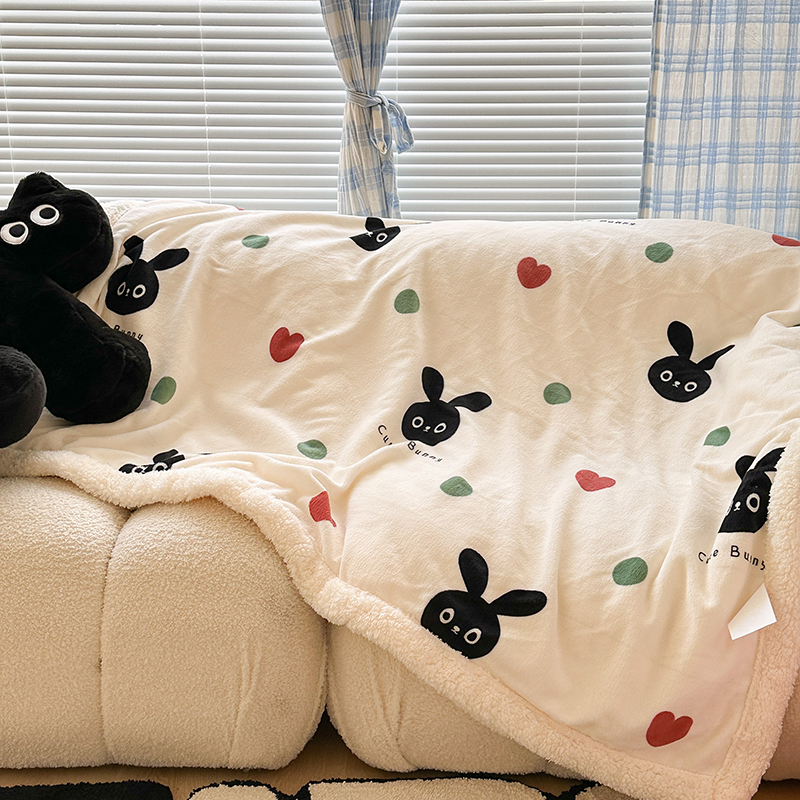 昔可家纺 2023新款ins风牛奶绒羊羔绒印花毛毯(风格二) 波点小黑兔