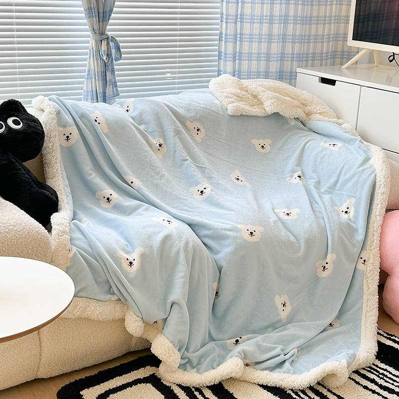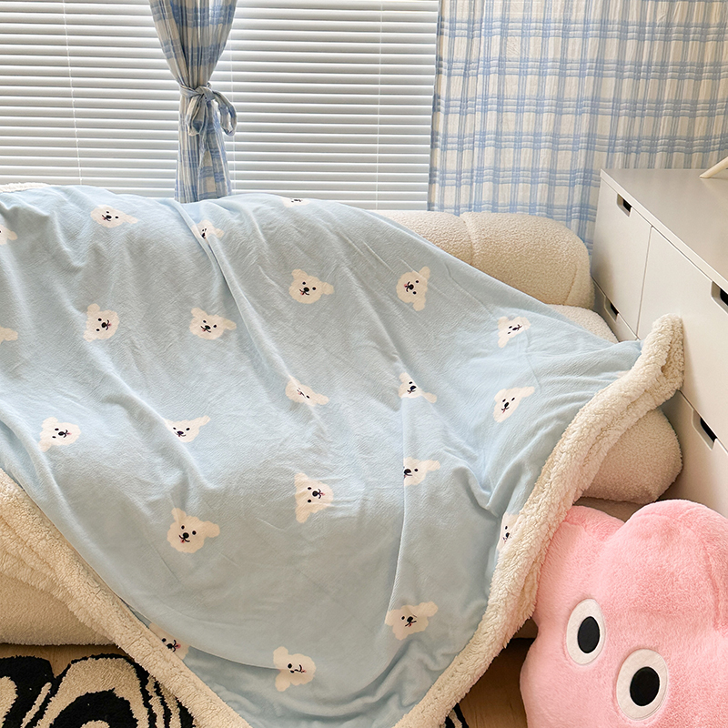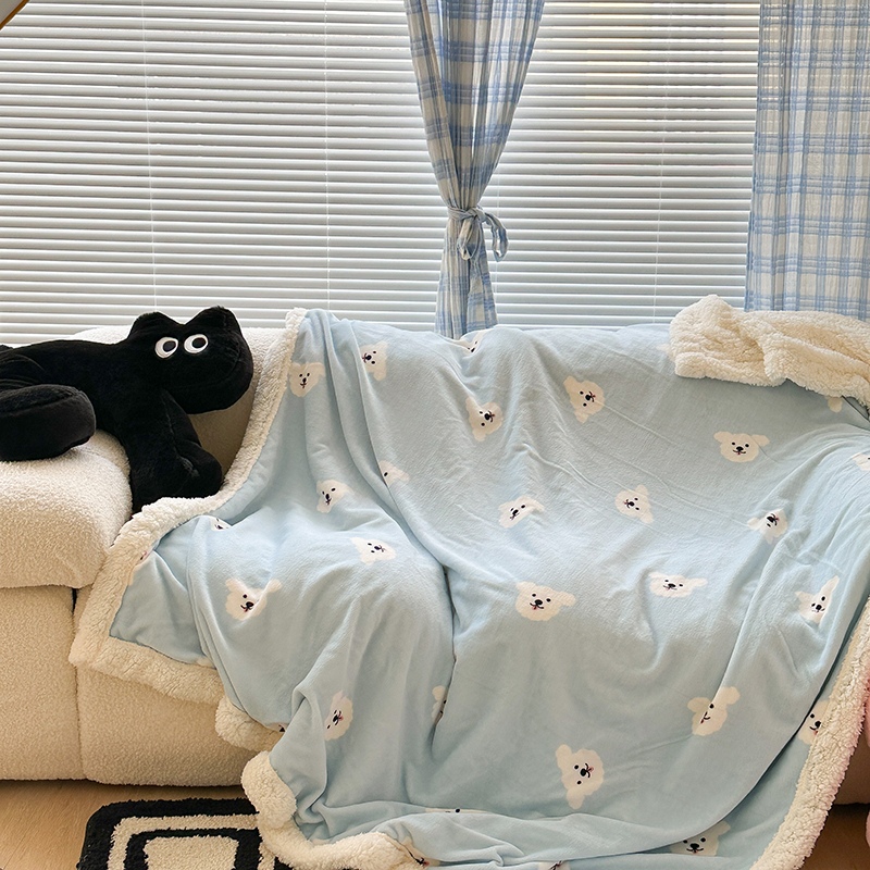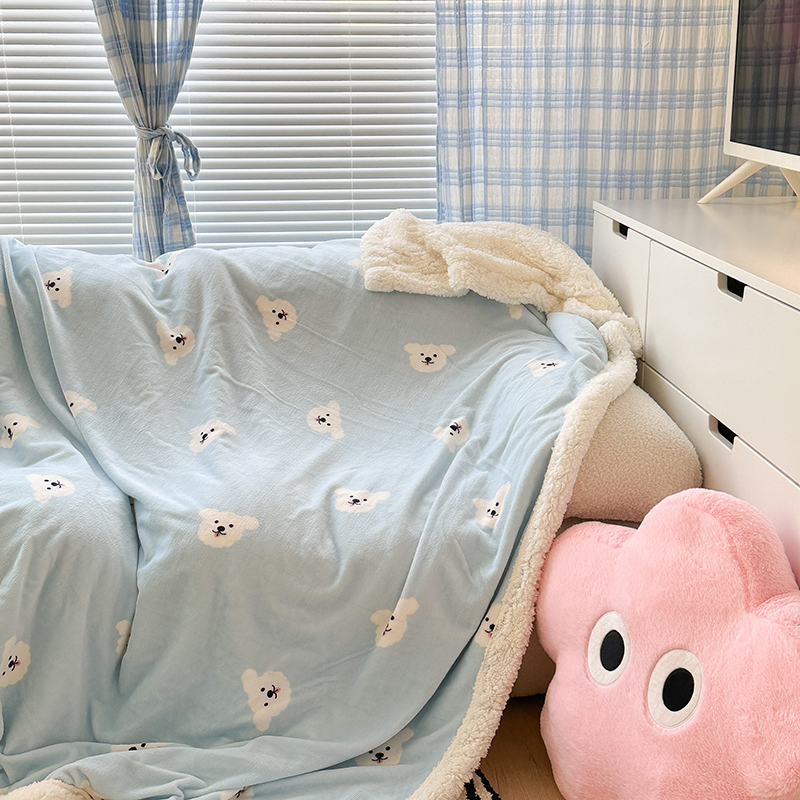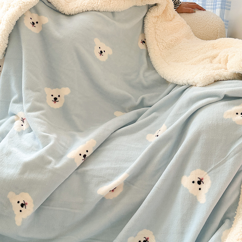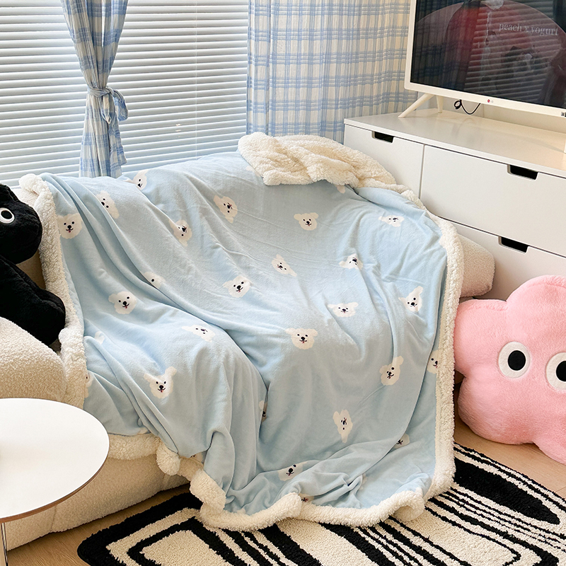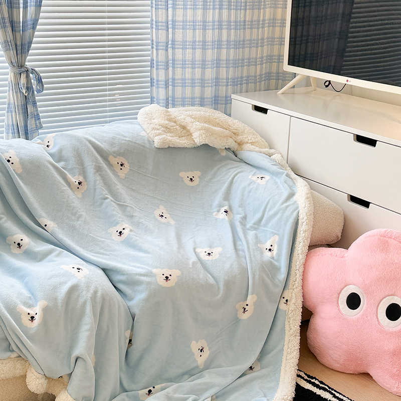 昔可家纺 2023新款ins风牛奶绒羊羔绒印花毛毯(风格二) 蓝底小白熊