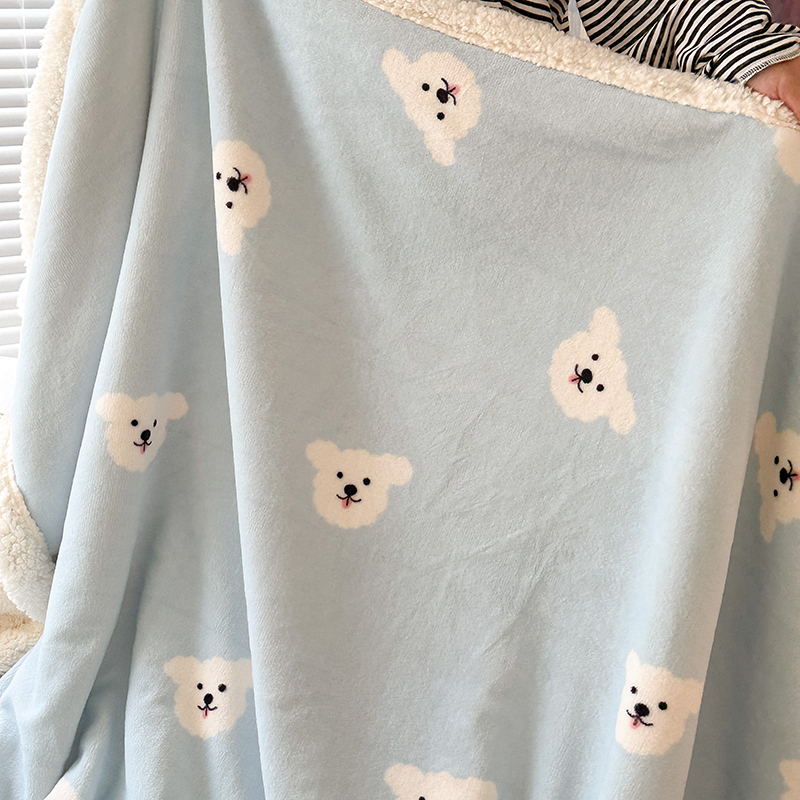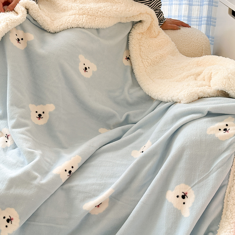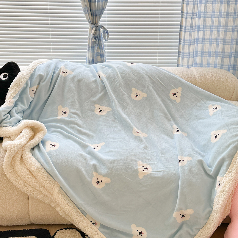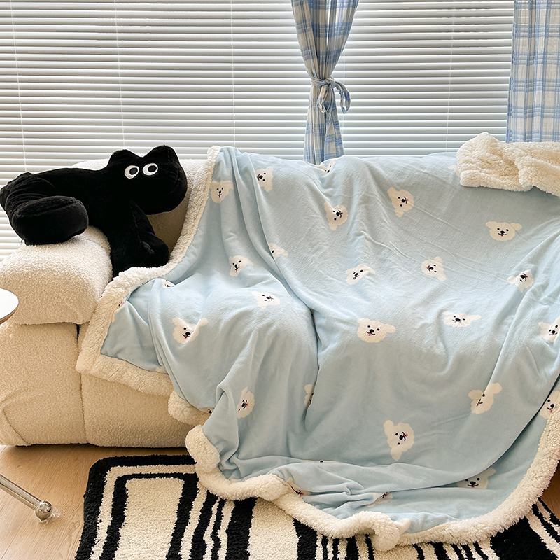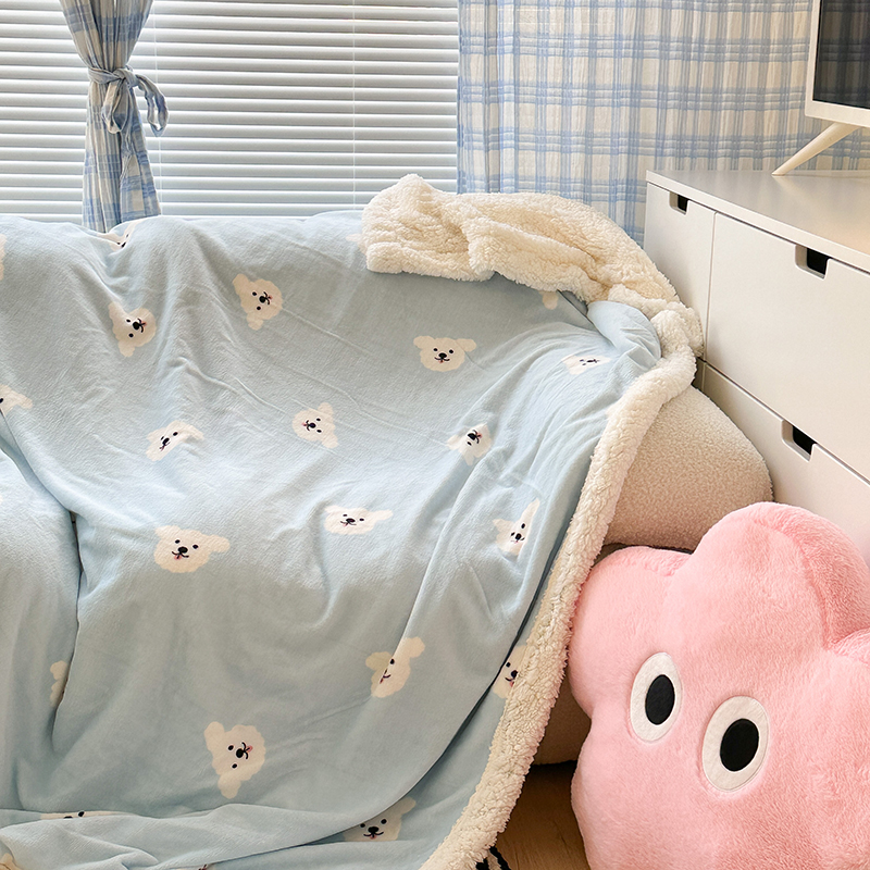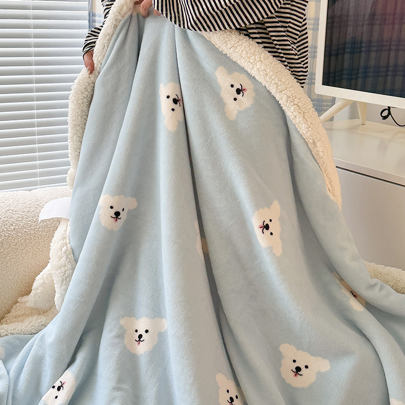 昔可家纺 2023新款ins风牛奶绒羊羔绒印花毛毯(风格二) 蓝底小白熊