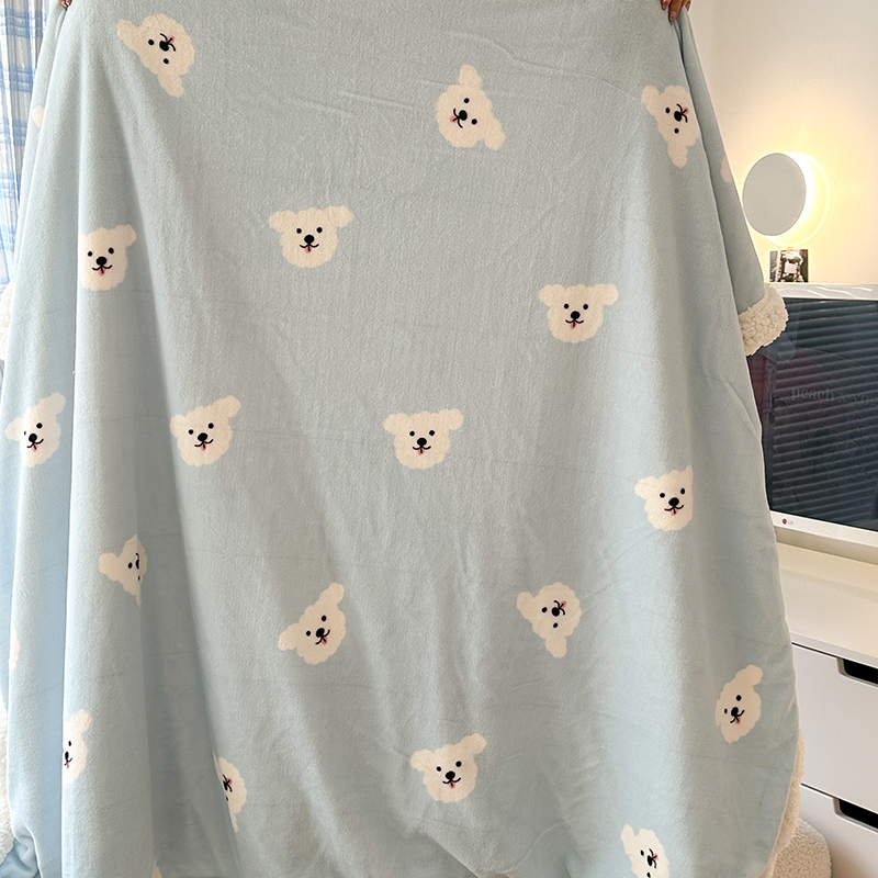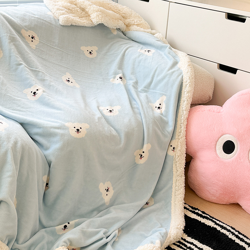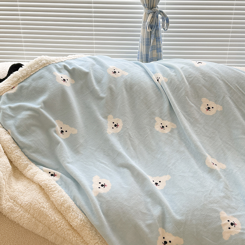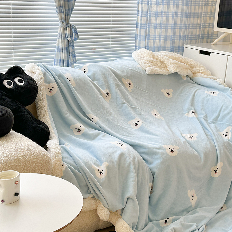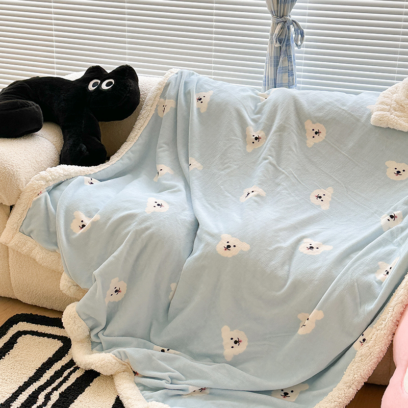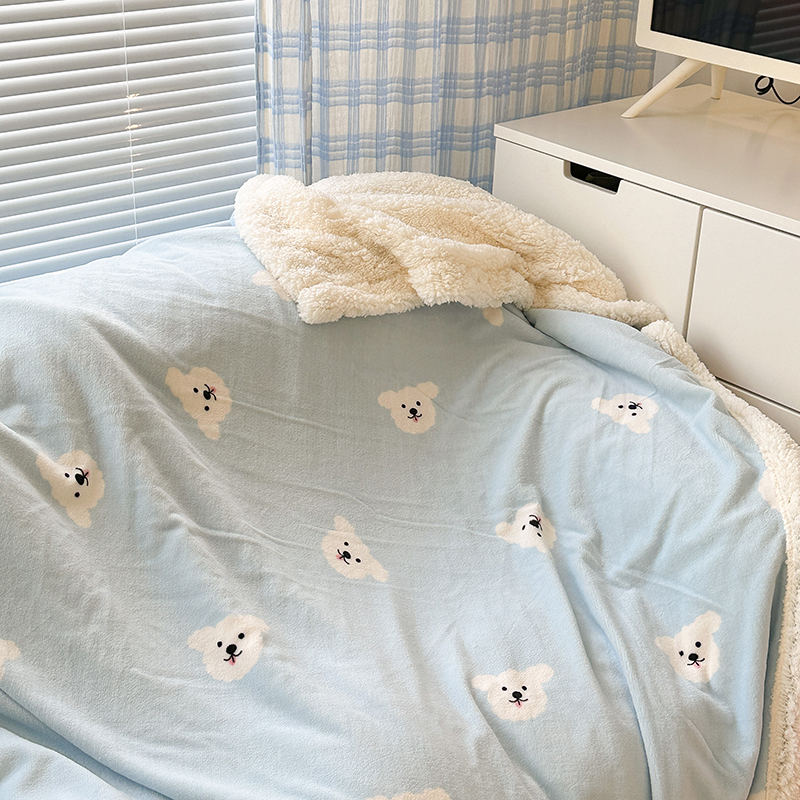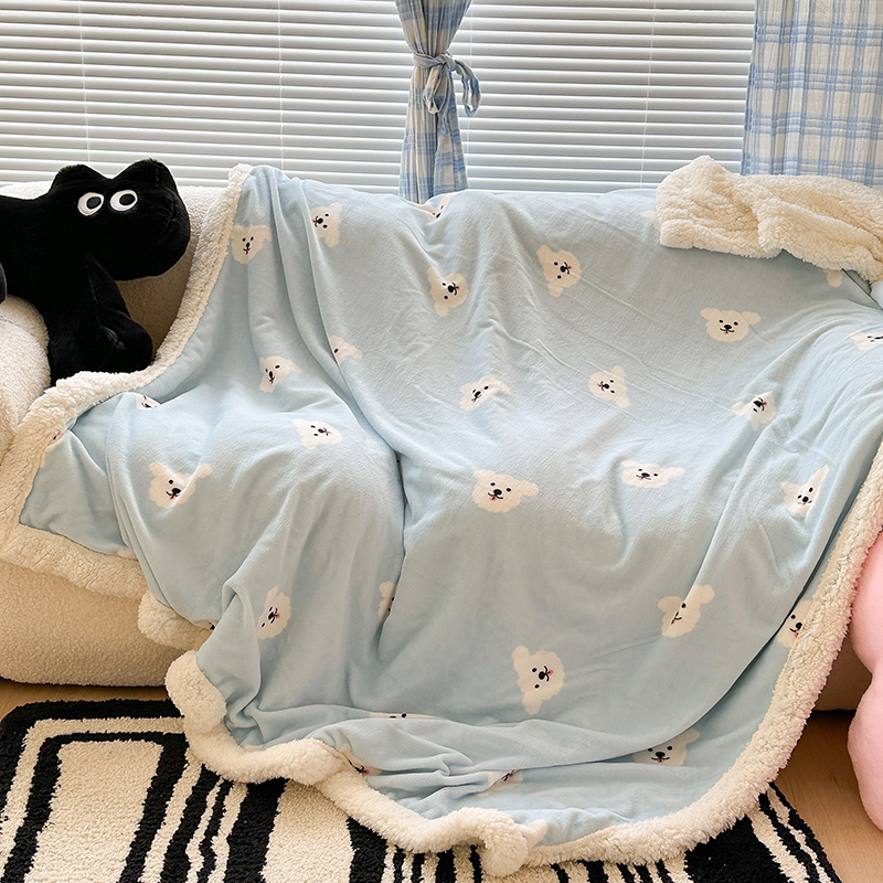 昔可家纺 2023新款ins风牛奶绒羊羔绒印花毛毯(风格二) 蓝底小白熊