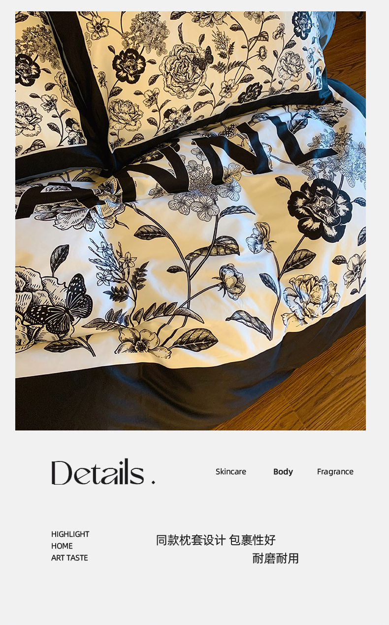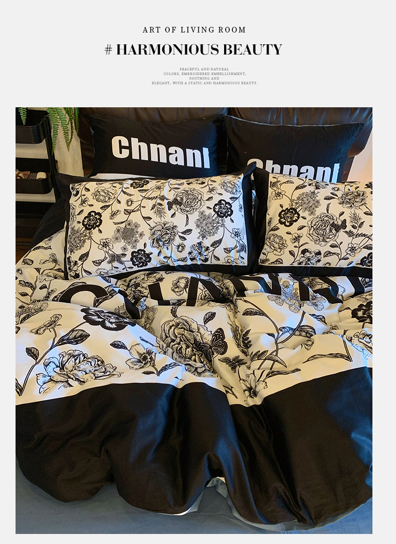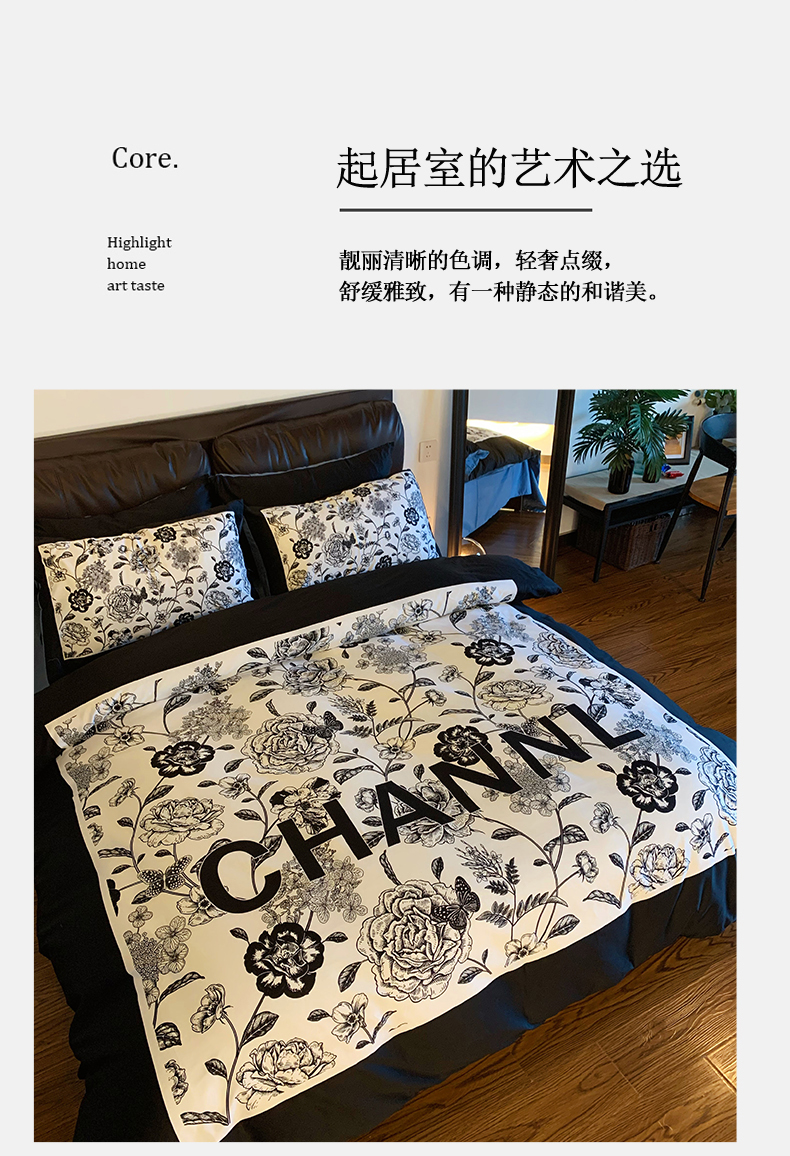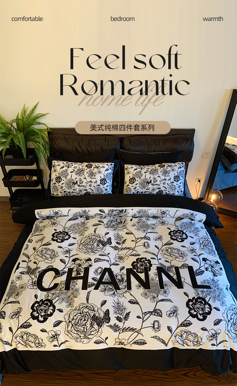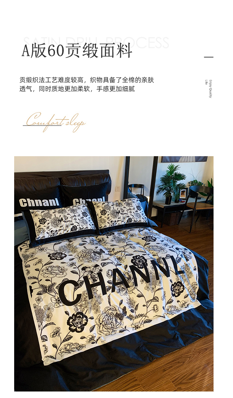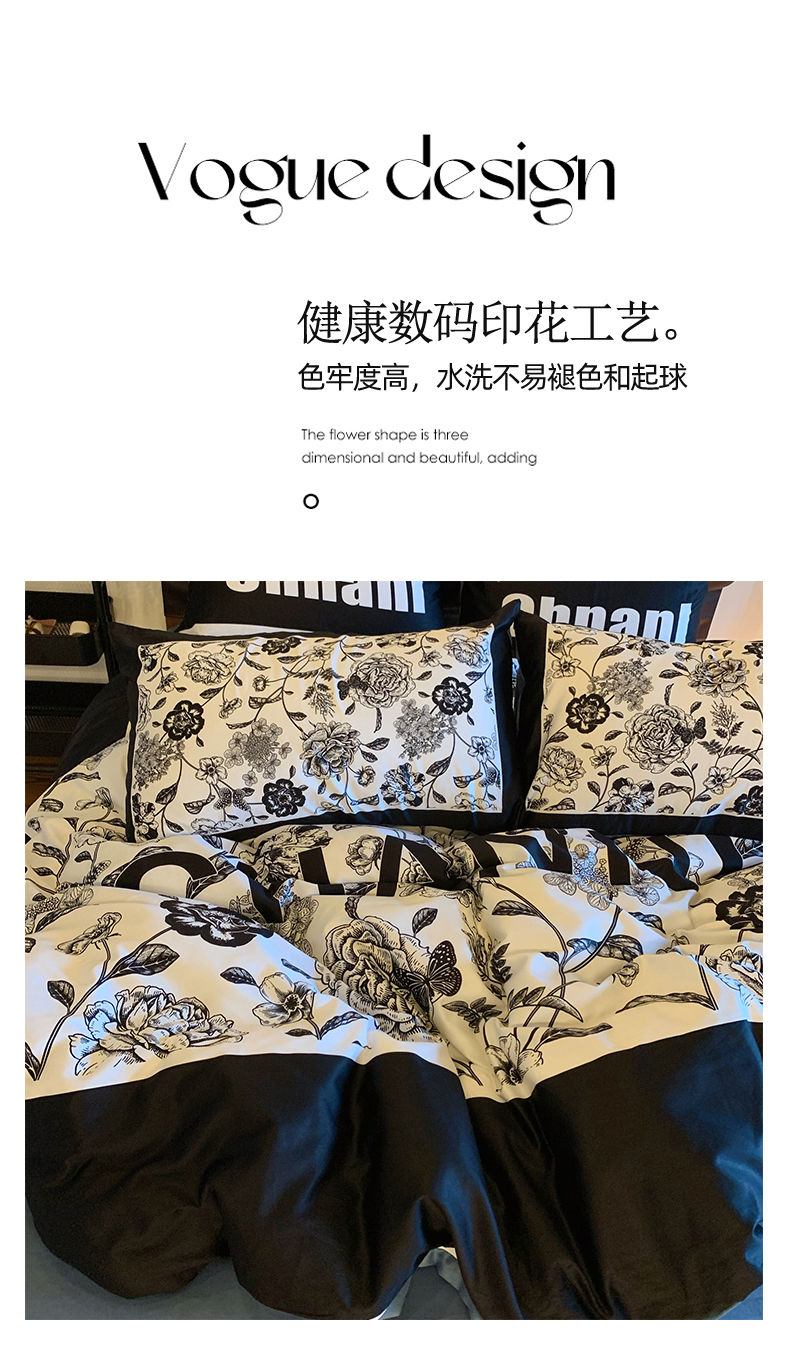 (总)色鬼布艺高端家居主号 2025新款轻奢亲肤纯棉数码印花网红热款四件套,豹纹香,白金V,白香花,大H,黑白迪,黑白V,灰迪,咖古,克莱因,慕斯小姐,山茶花,星空