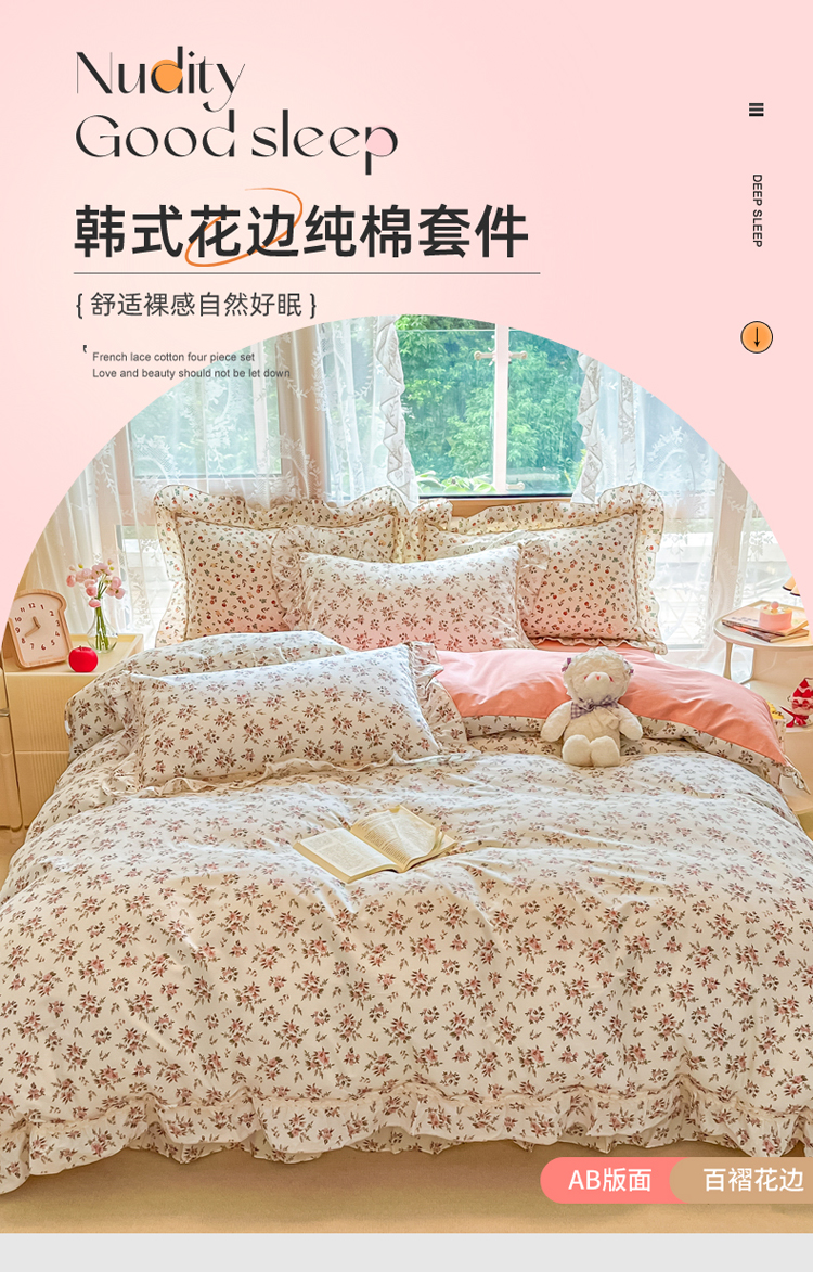 (总)艾唯希家纺 2025新款全棉双层花边四件套纯棉小碎花10个花型-花边系列,春意萌,恋之晴空,奶芙蓉-绿,奶芙蓉-粉,林间物语-绿,林间物语-紫,花冉,花艺漫漫,梳璃,雾里花