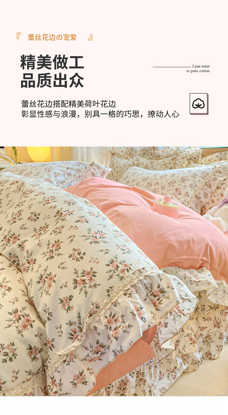 商品名称:艾唯希家纺 2024新款全棉韩式花边四件套纯棉公主风田园系列 洛神