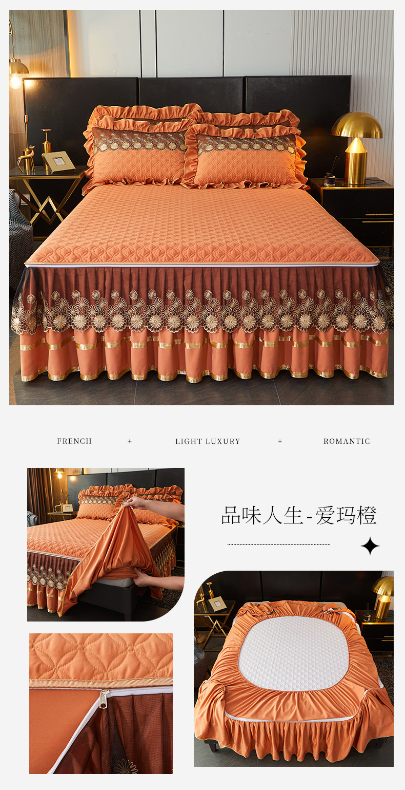 商品名称:罗艺轩 2024新款A类蛋白棉夹棉床裙-品味人生 品味人生-爱玛橙
