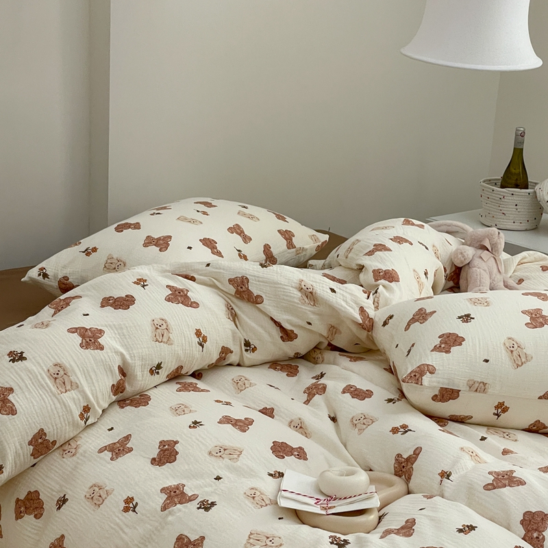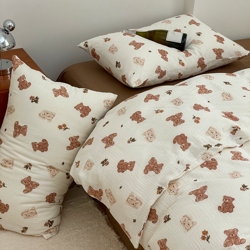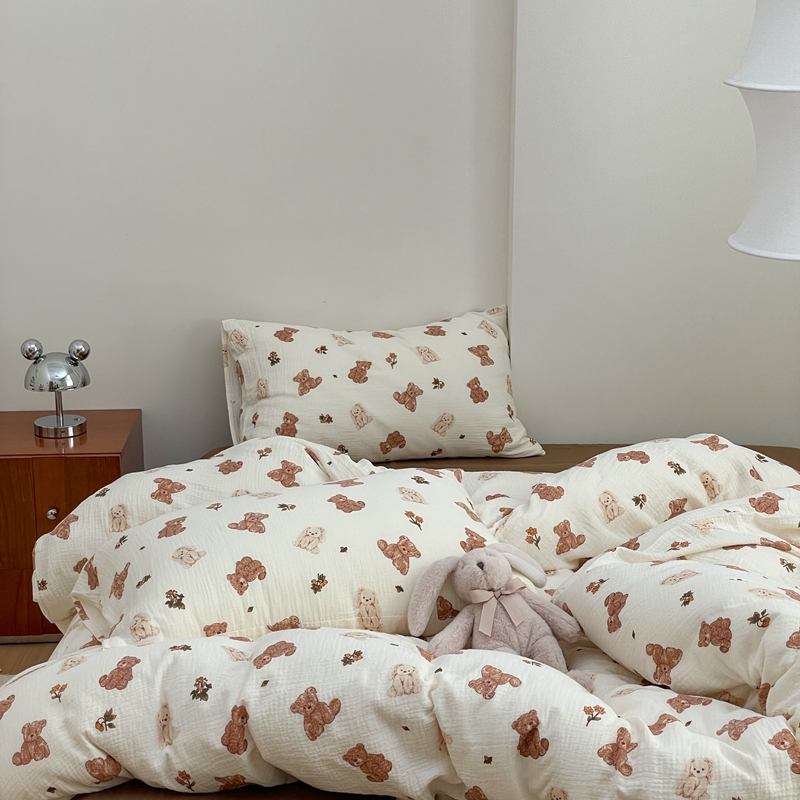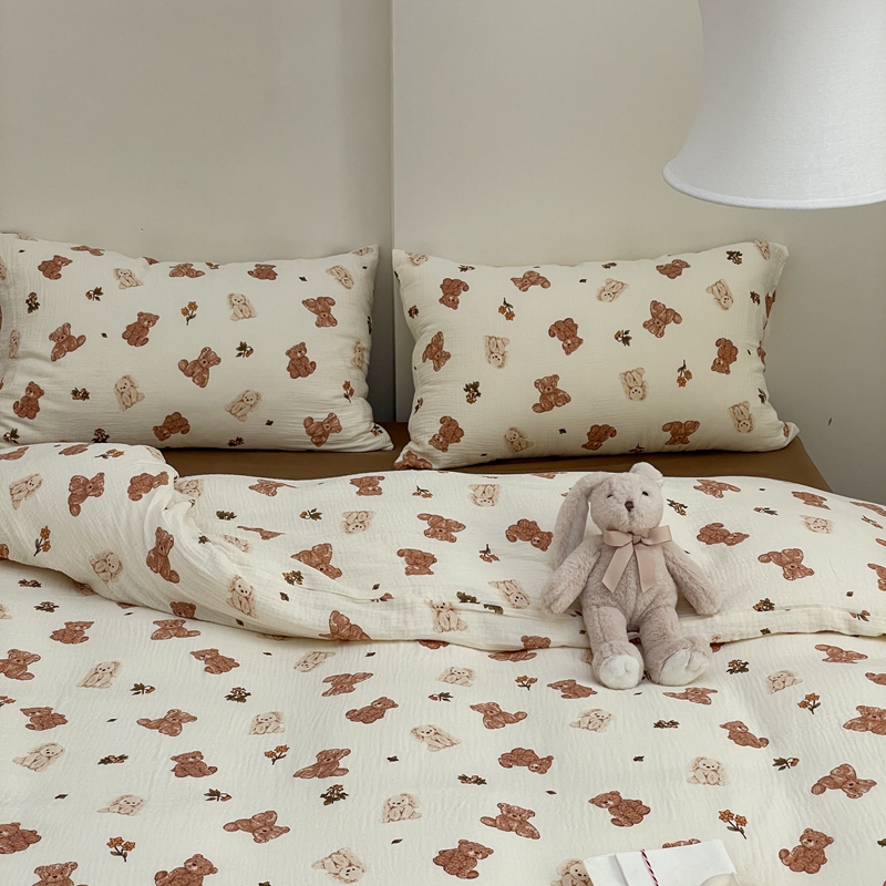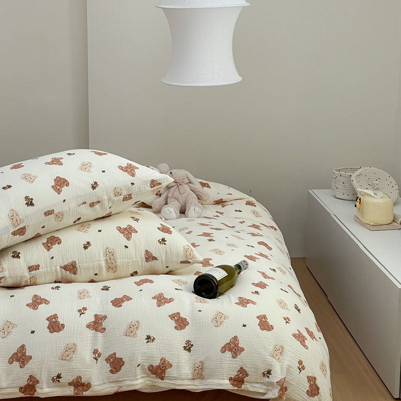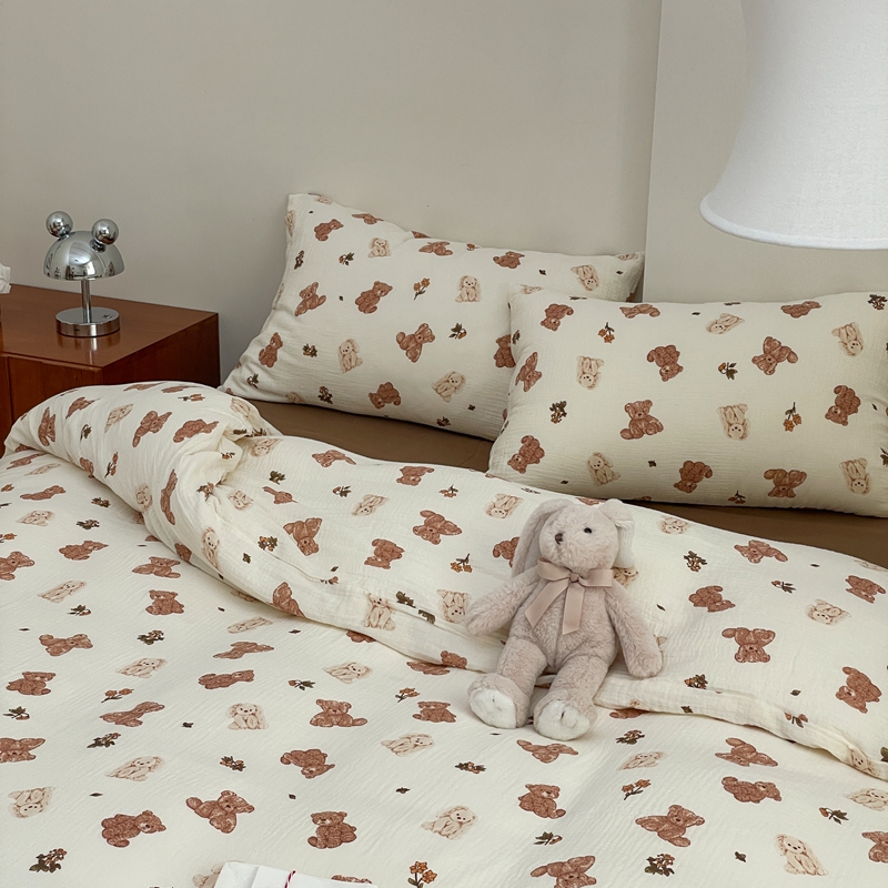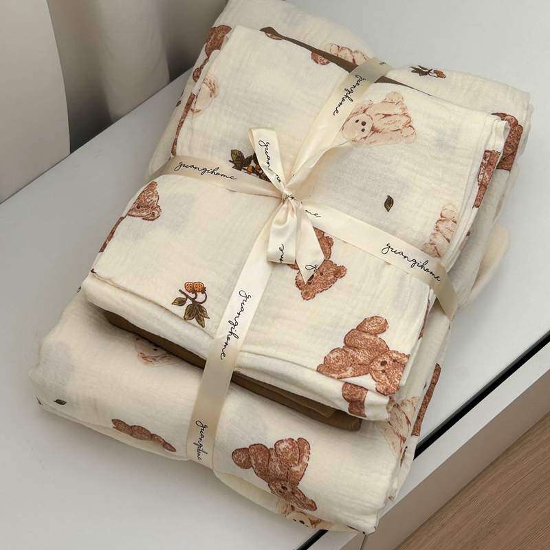 (总)源启生活 2024新款全棉双层纱四件套-熊啾啾,熊啾啾