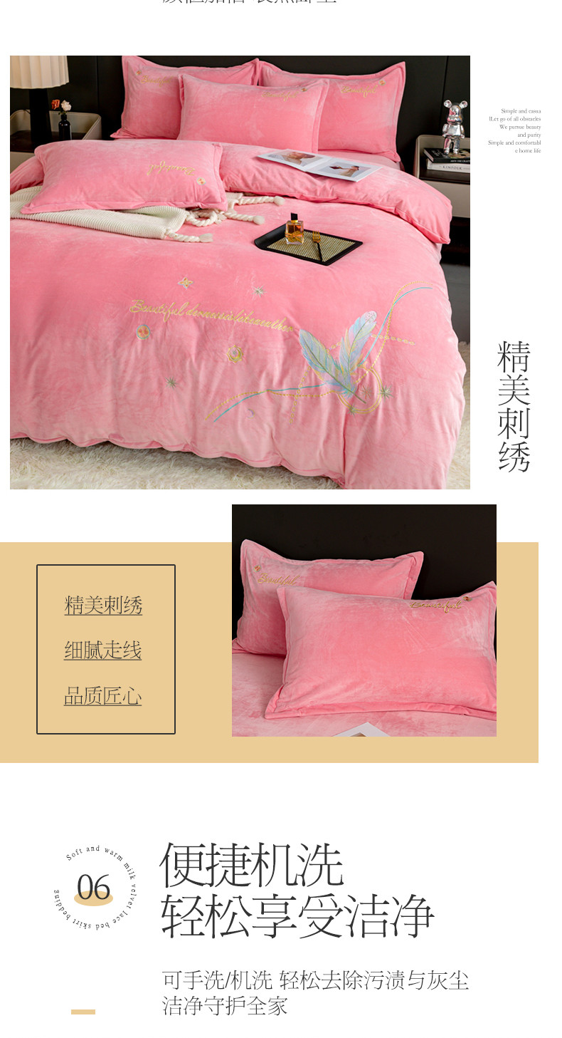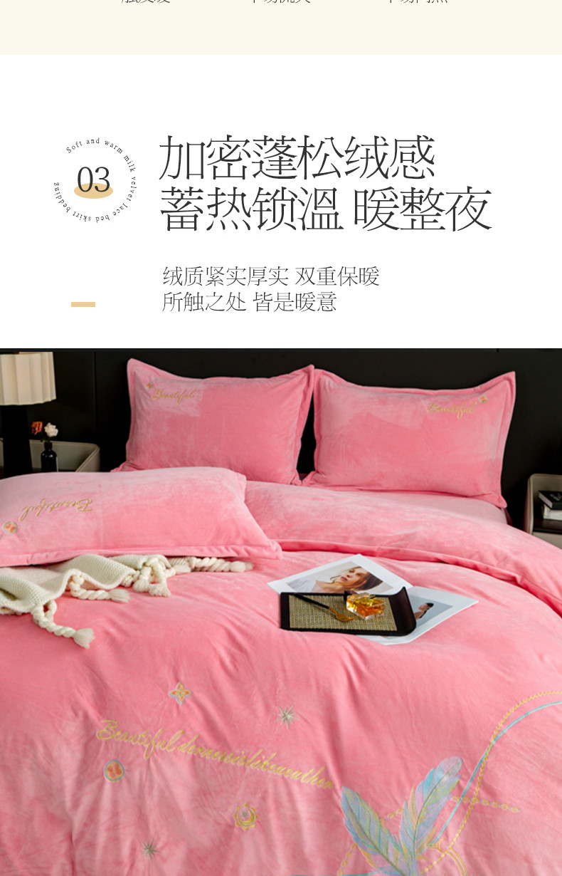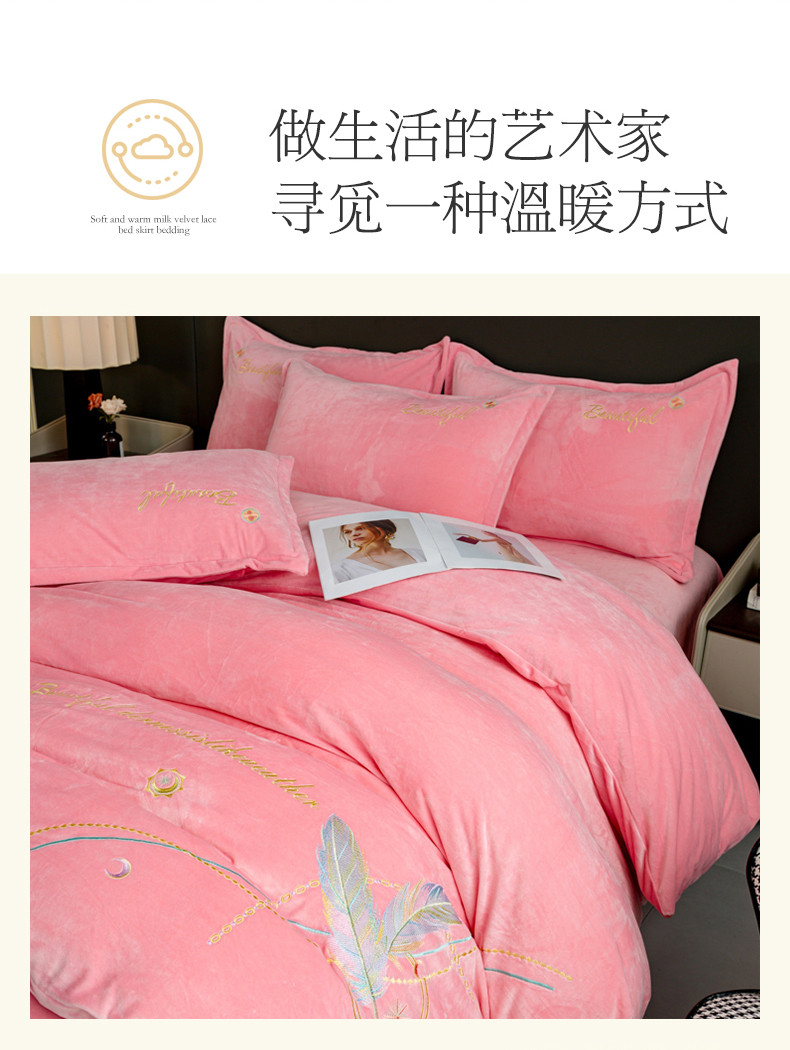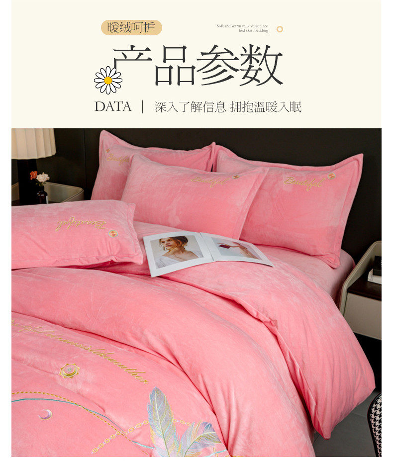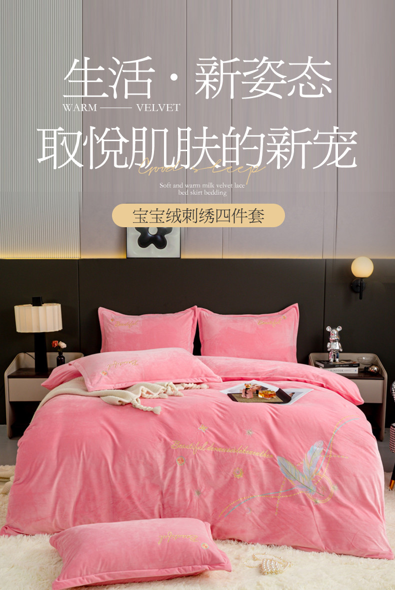 商品名称:易辰美 2023新款保暖婴儿绒刺绣四件套系列-轻羽 轻羽-浅粉