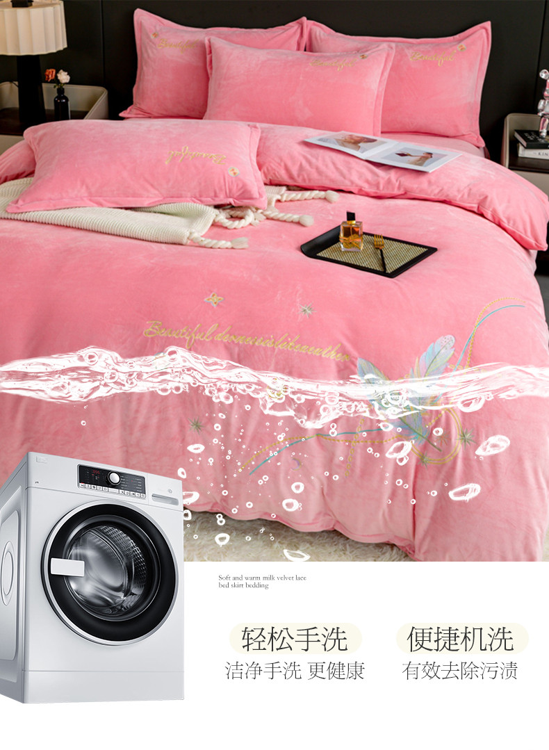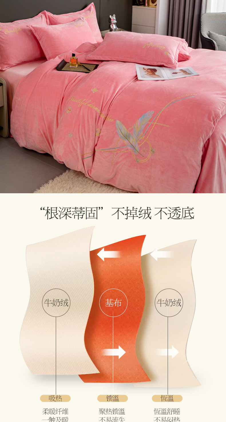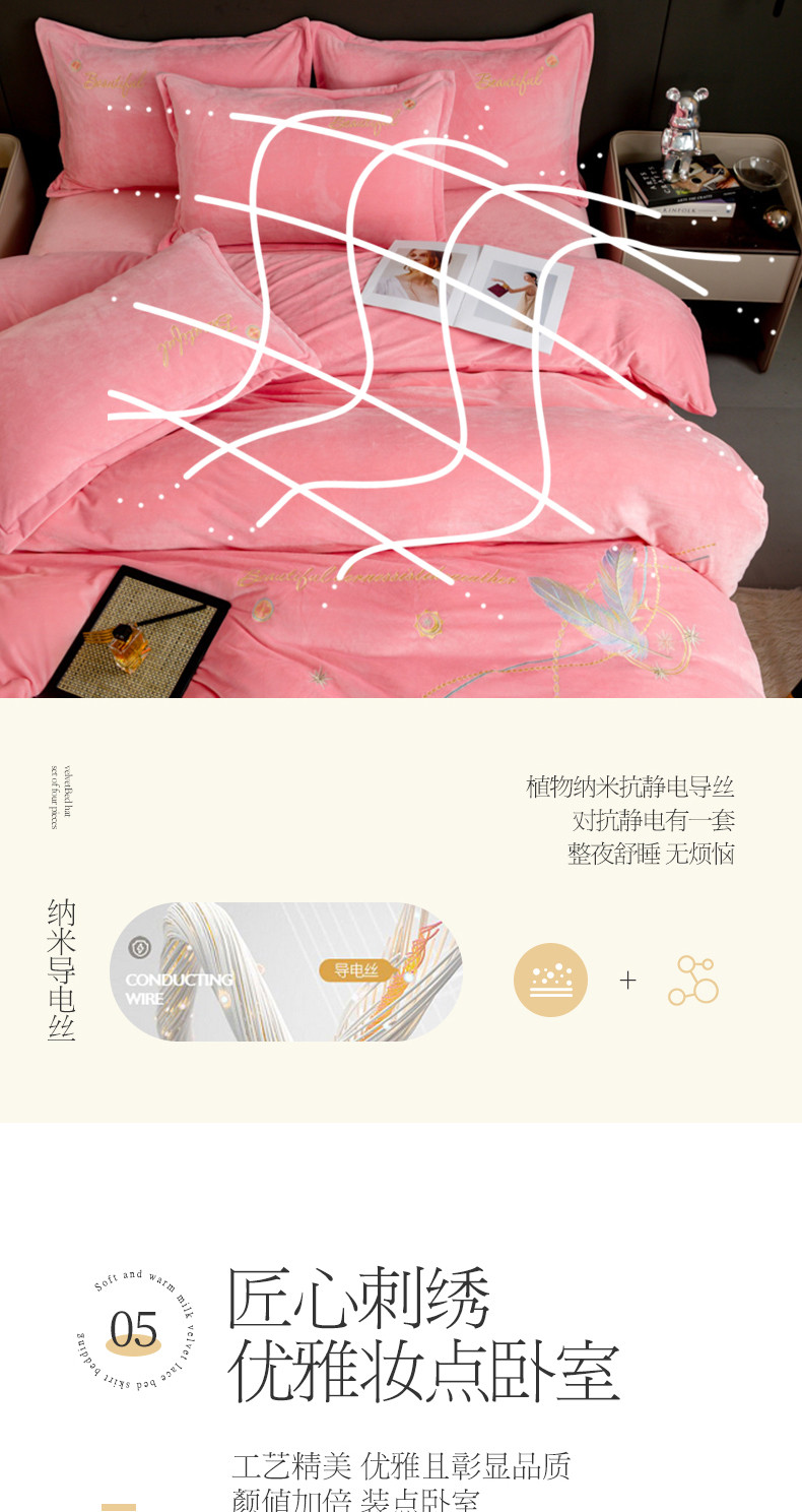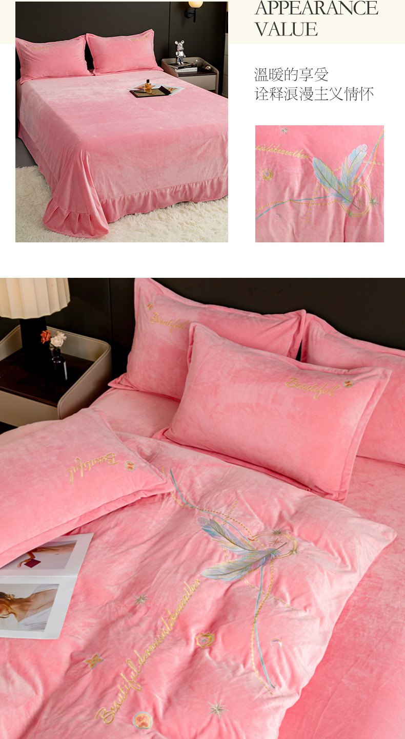 商品名称:易辰美 2023新款保暖婴儿绒刺绣四件套系列-轻羽 轻羽-浅粉
