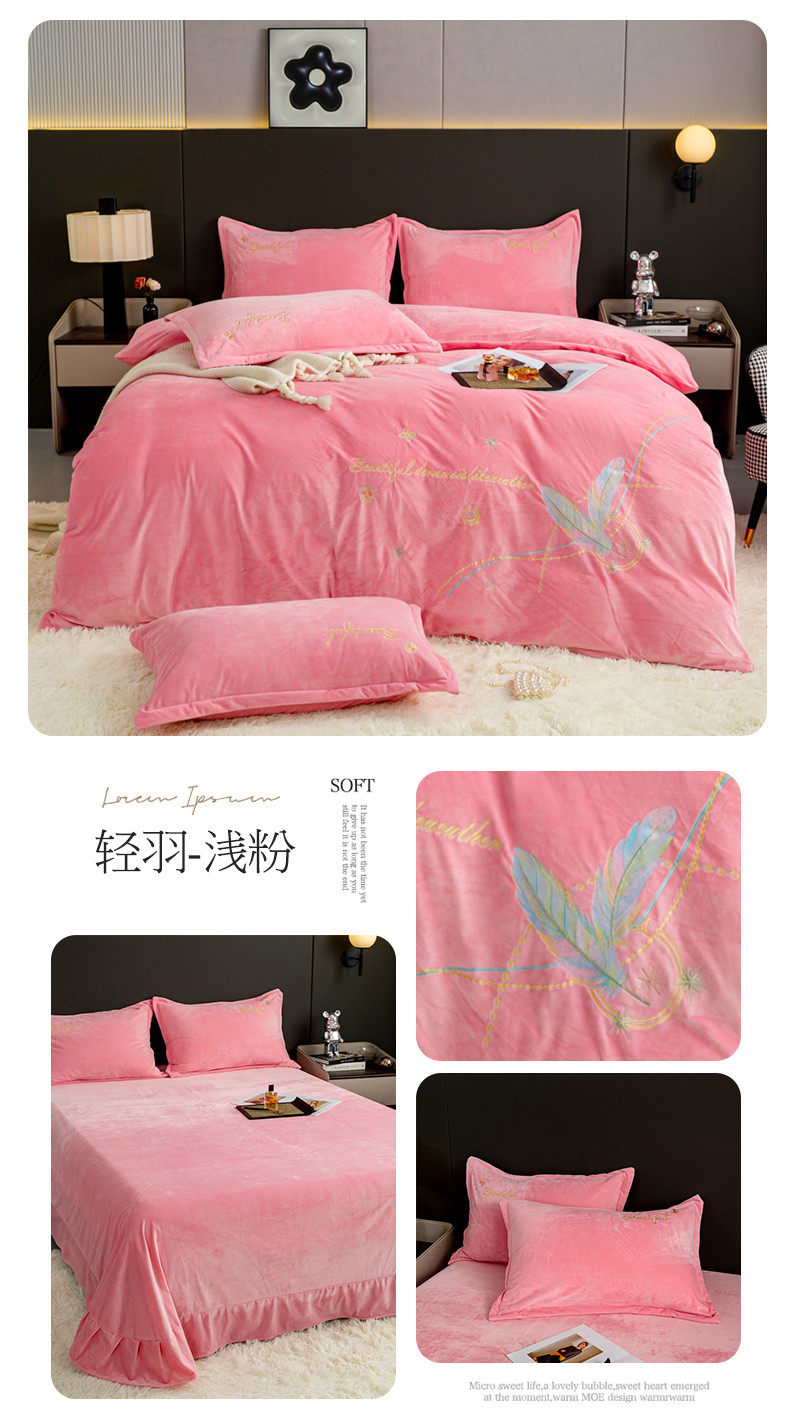 易辰美 2023新款保暖婴儿绒刺绣四件套系列-轻羽 轻羽-浅粉