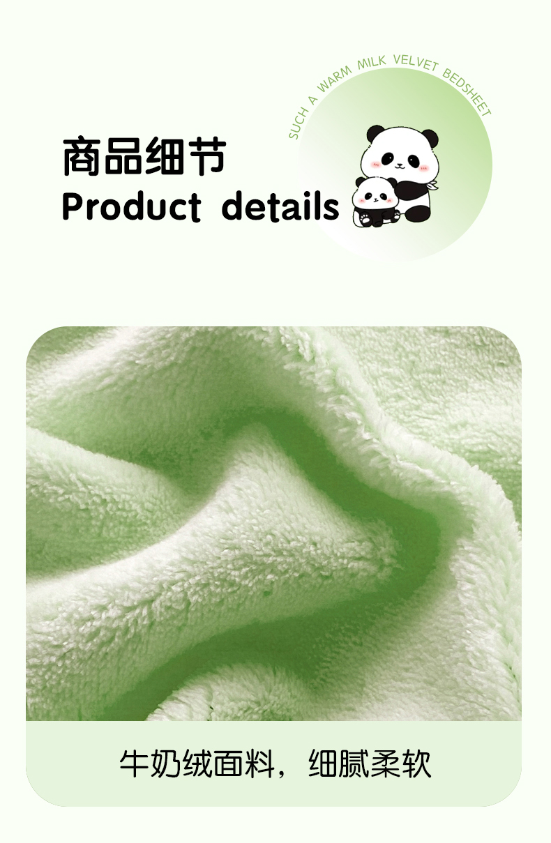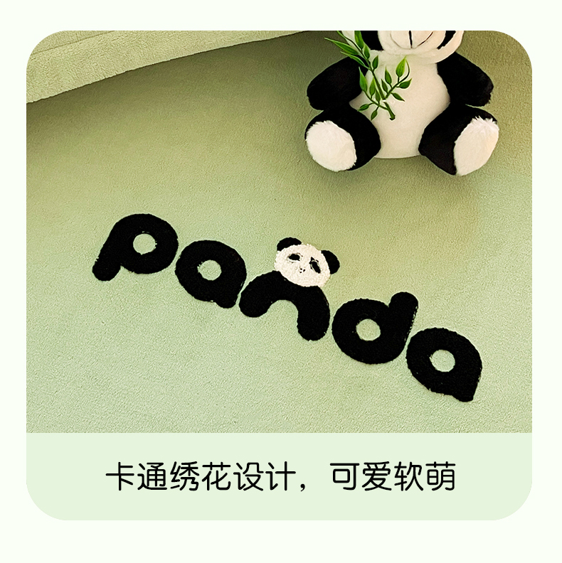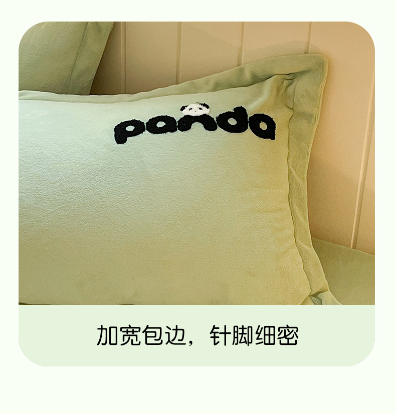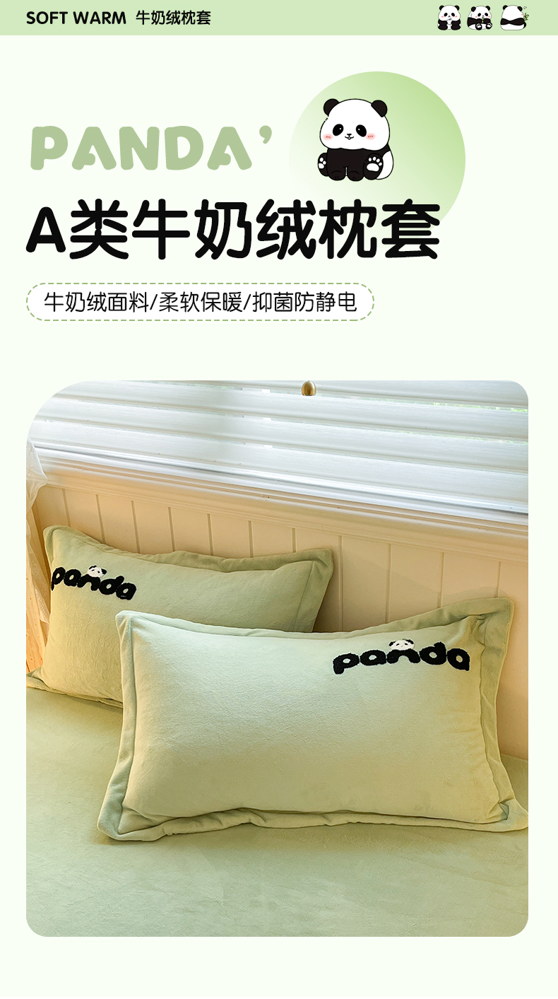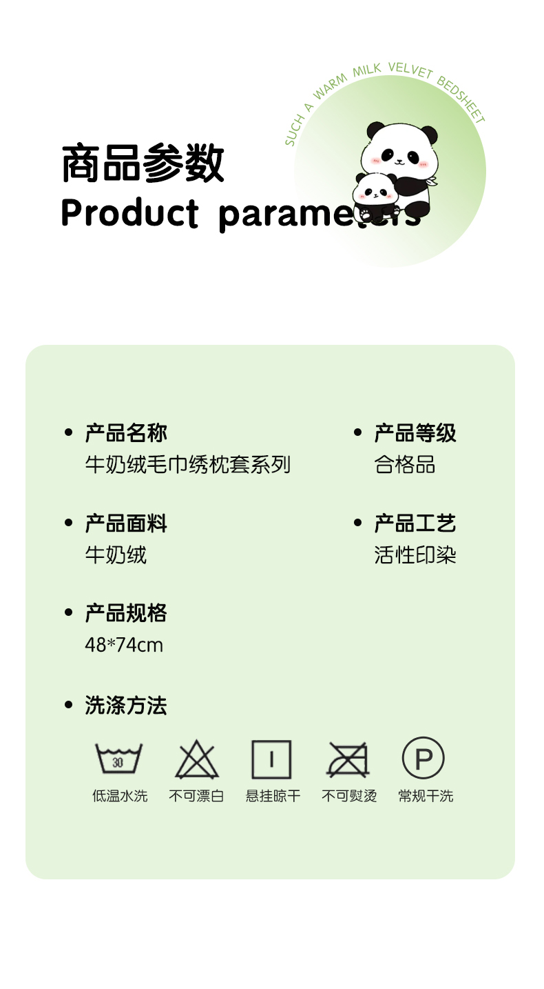 商品名称:丽美人家纺 2023新款熊猫牛奶绒毛巾绣单枕套 熊猫-清新绿