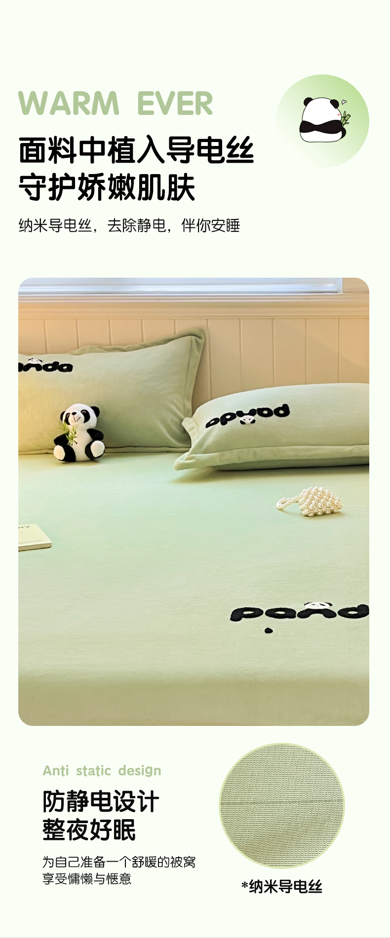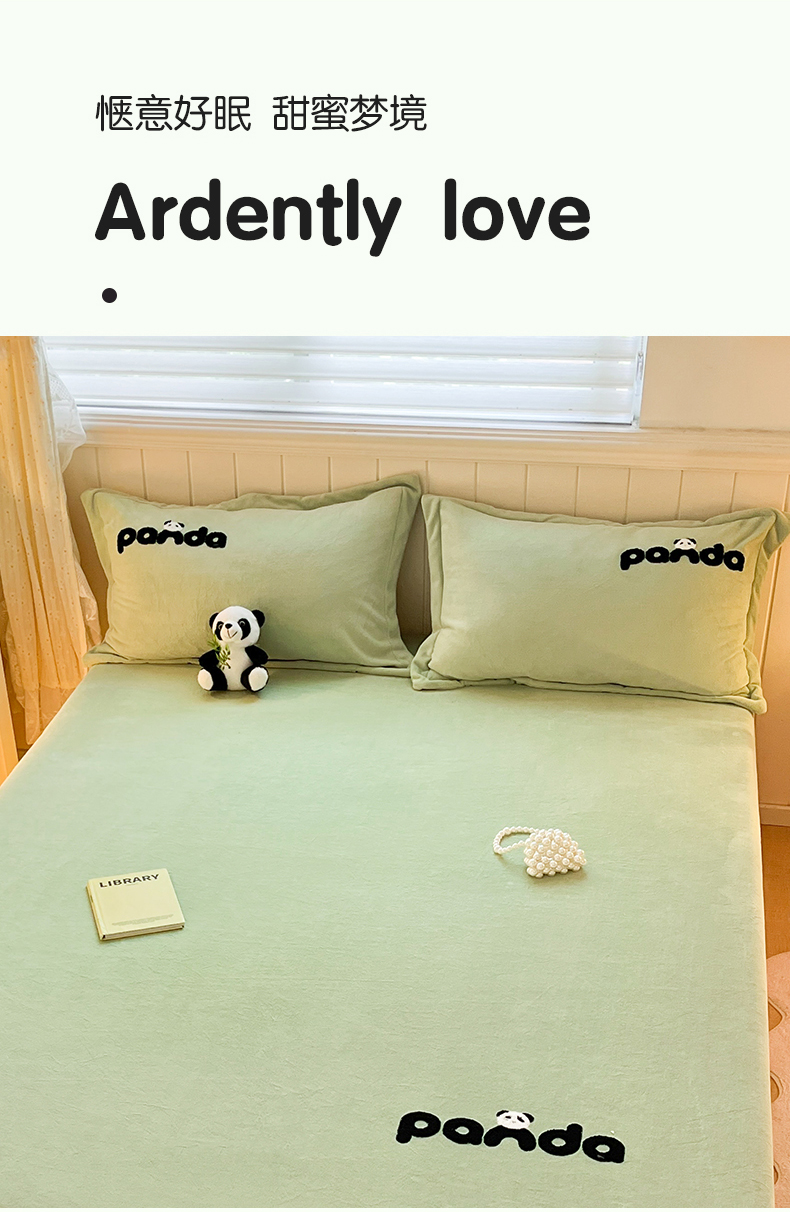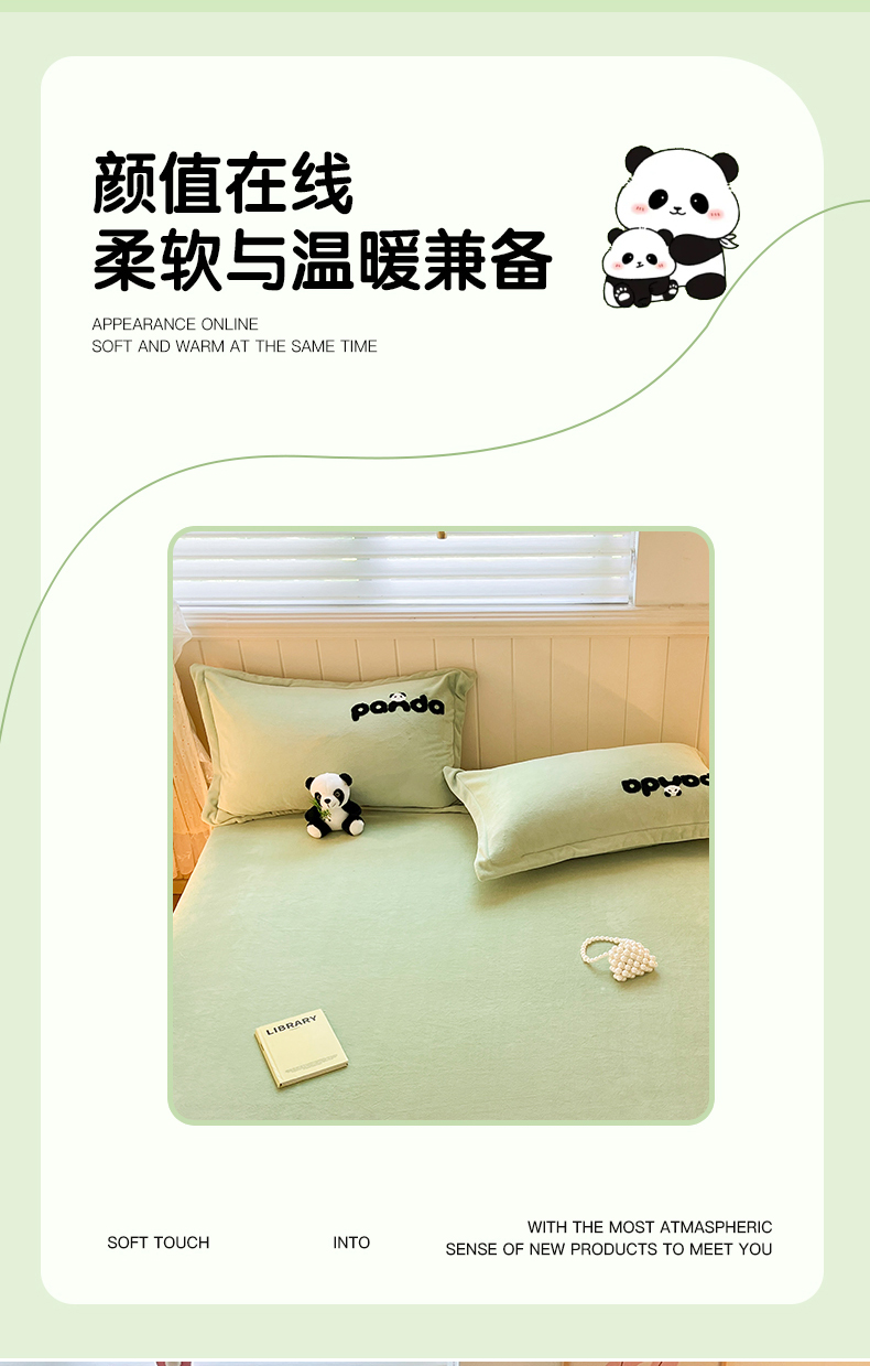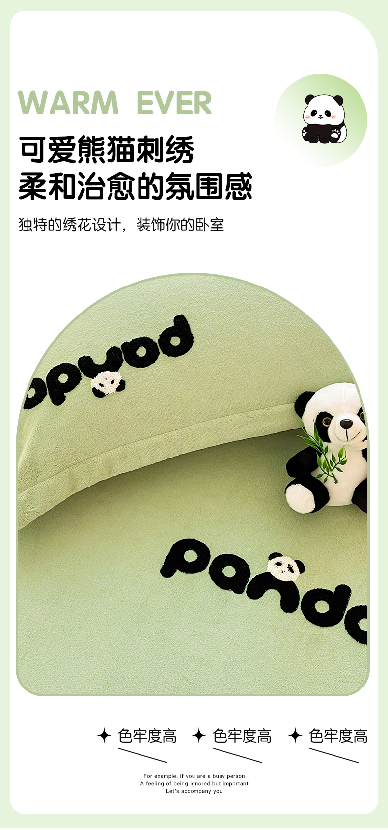 商品名称:丽美人家纺 2023新款熊猫牛奶绒毛巾绣单枕套 熊猫-清新绿
