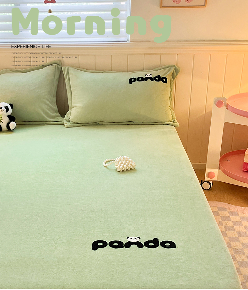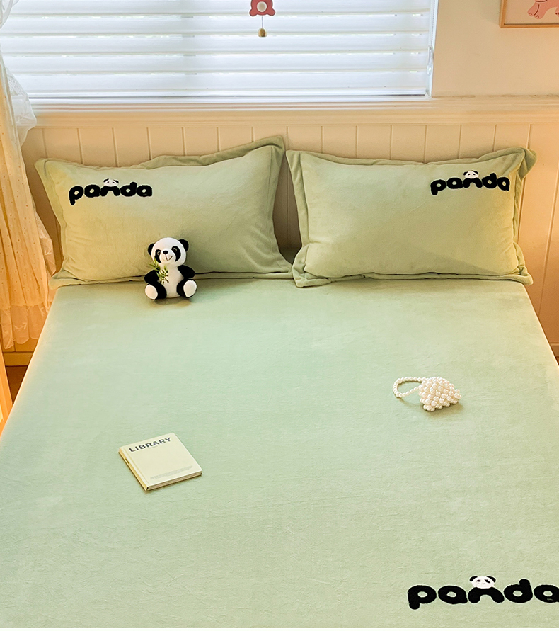 丽美人家纺 2023新款熊猫牛奶绒毛巾绣单枕套 熊猫-清新绿
