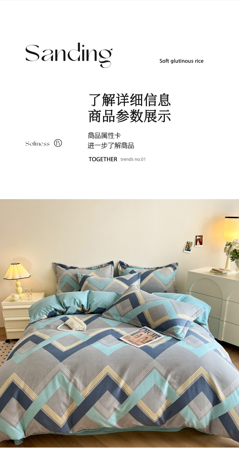 (总)慕尚家纺 2025新款磨毛三角针套件四件套,磨毛三角针-兔妈与兔宝,磨毛三角针-呆萌兔,磨毛三角针-发财树,磨毛三角针-蝴蝶结兔,磨毛三角针-花朵熊,磨毛三角针-英式黑灰格,磨毛三角针-英式咖黄格,磨毛三角针-英式绿棕格