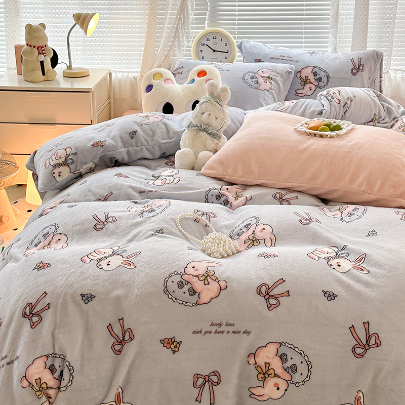 (总)昔可家纺 2024新款印花牛奶绒四件套系列-洛丽塔风,萝莉小兔,小熊烘焙屋,小熊玩偶屋