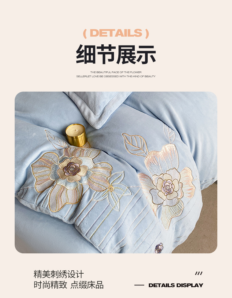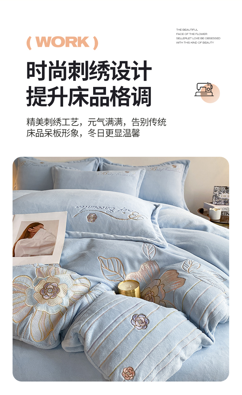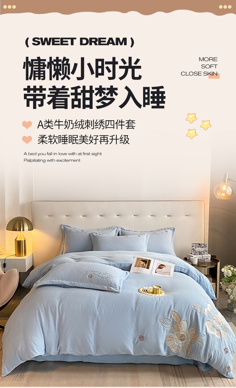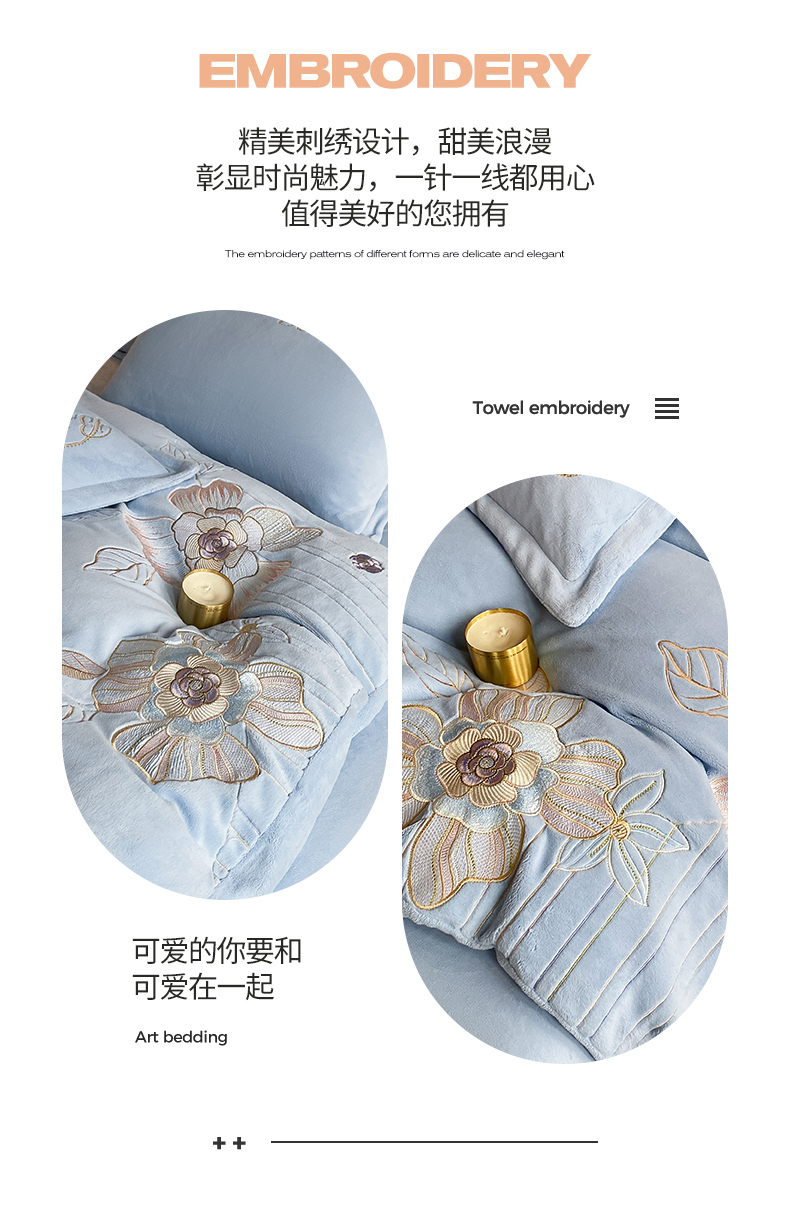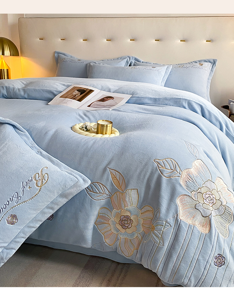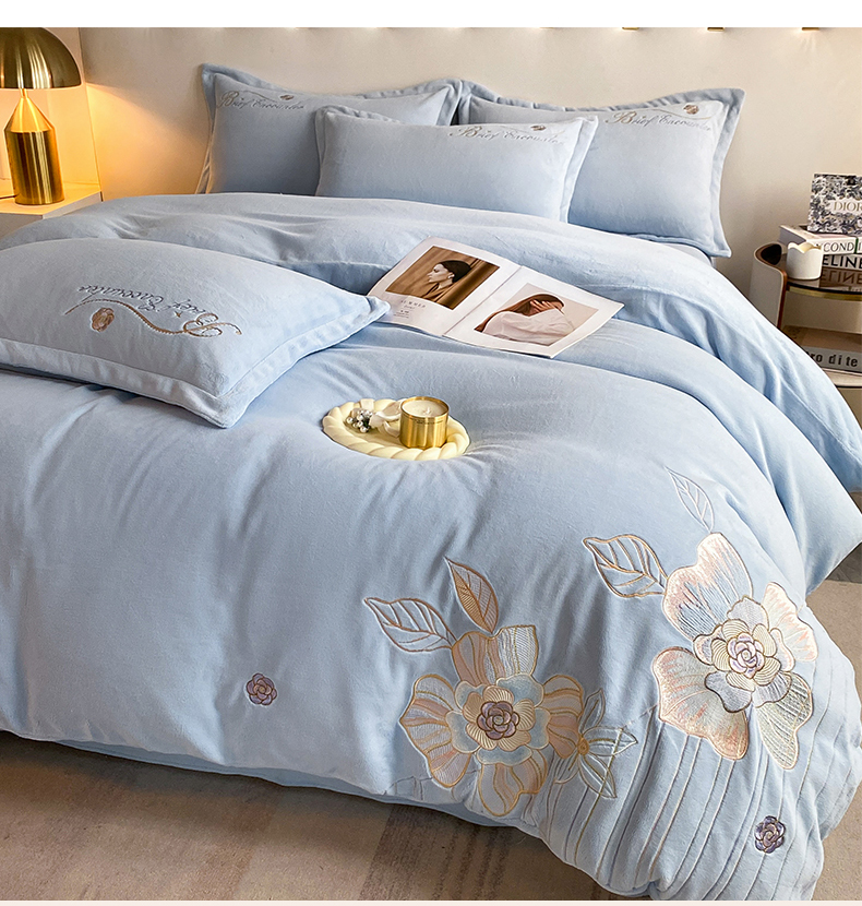 (总)爱家(原缔乐家纺) 2025新款A类高克重牛奶绒立体花刺绣四件套-花蜜,花蜜-公主粉,花蜜-天空兰,花蜜-奶昔白,花蜜-梦幻紫
