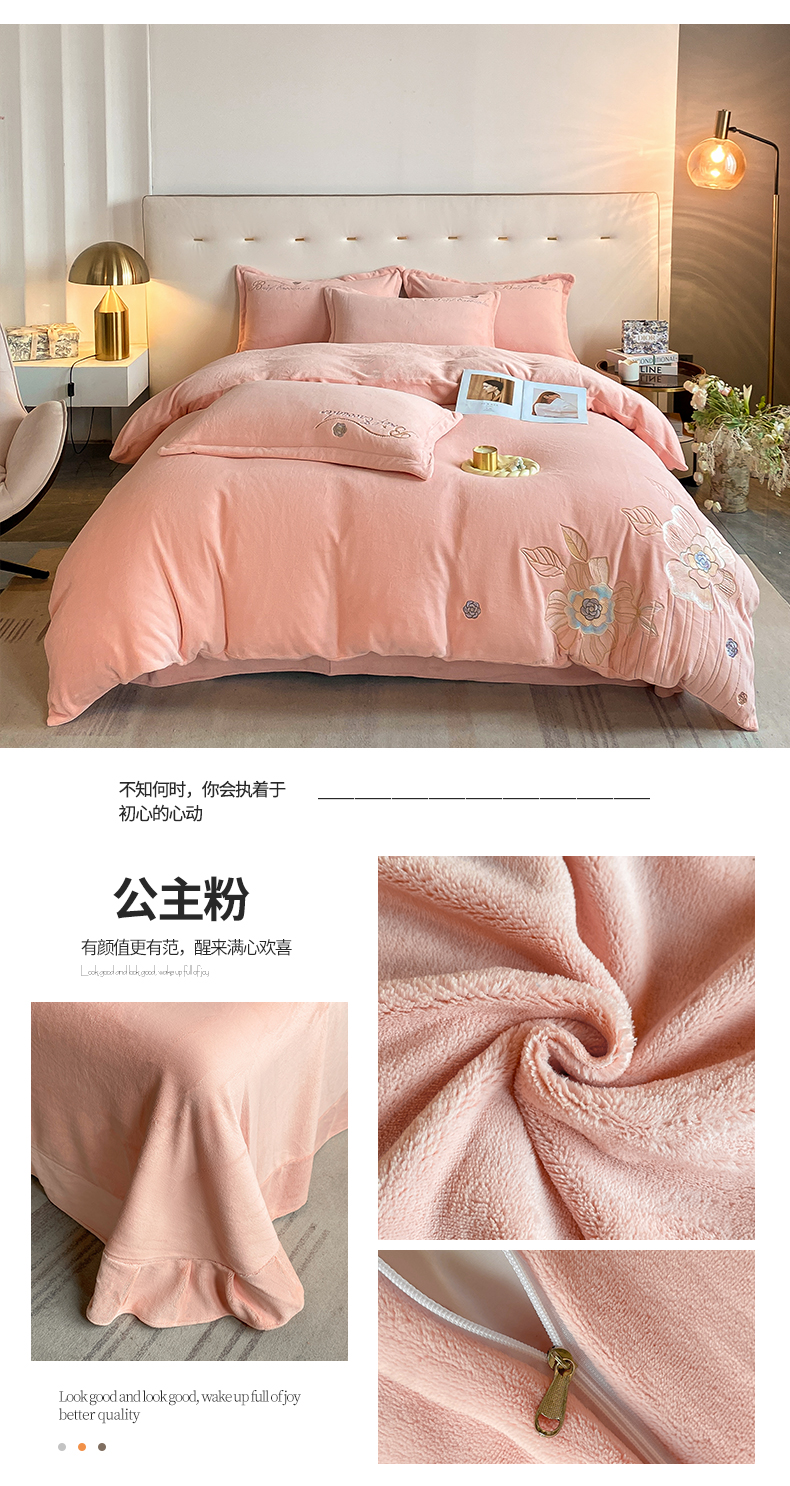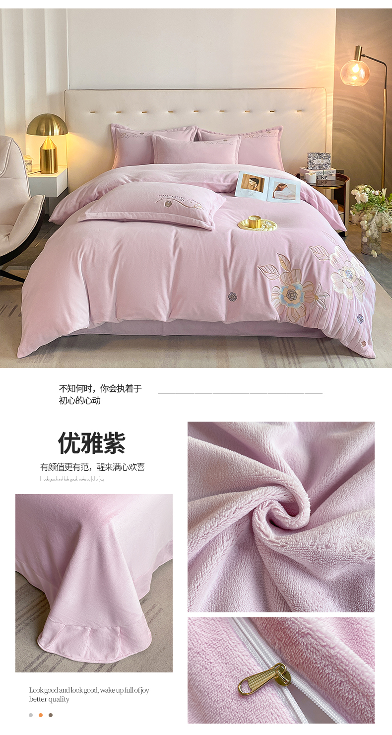 (总)爱家(原缔乐家纺) 2025新款牛奶雕花绒四件套-香香公主,香香公主-公主粉,香香公主-梦幻紫,香香公主-奶油黄